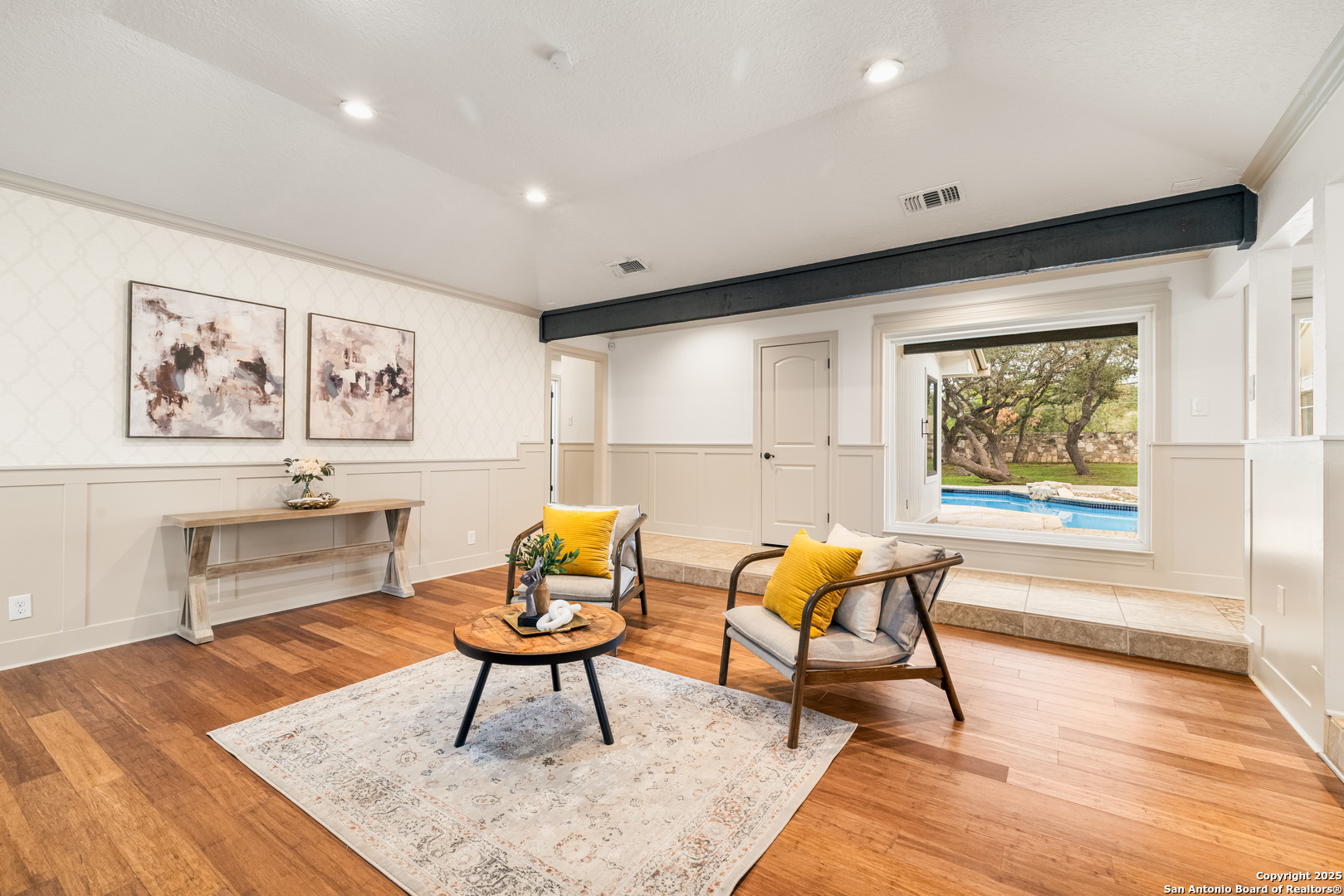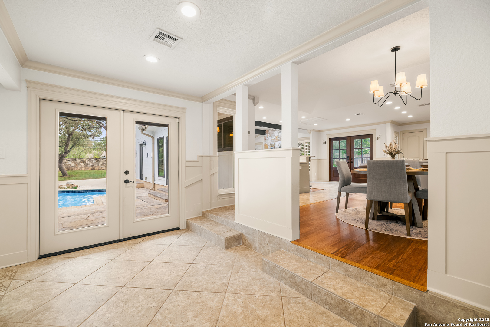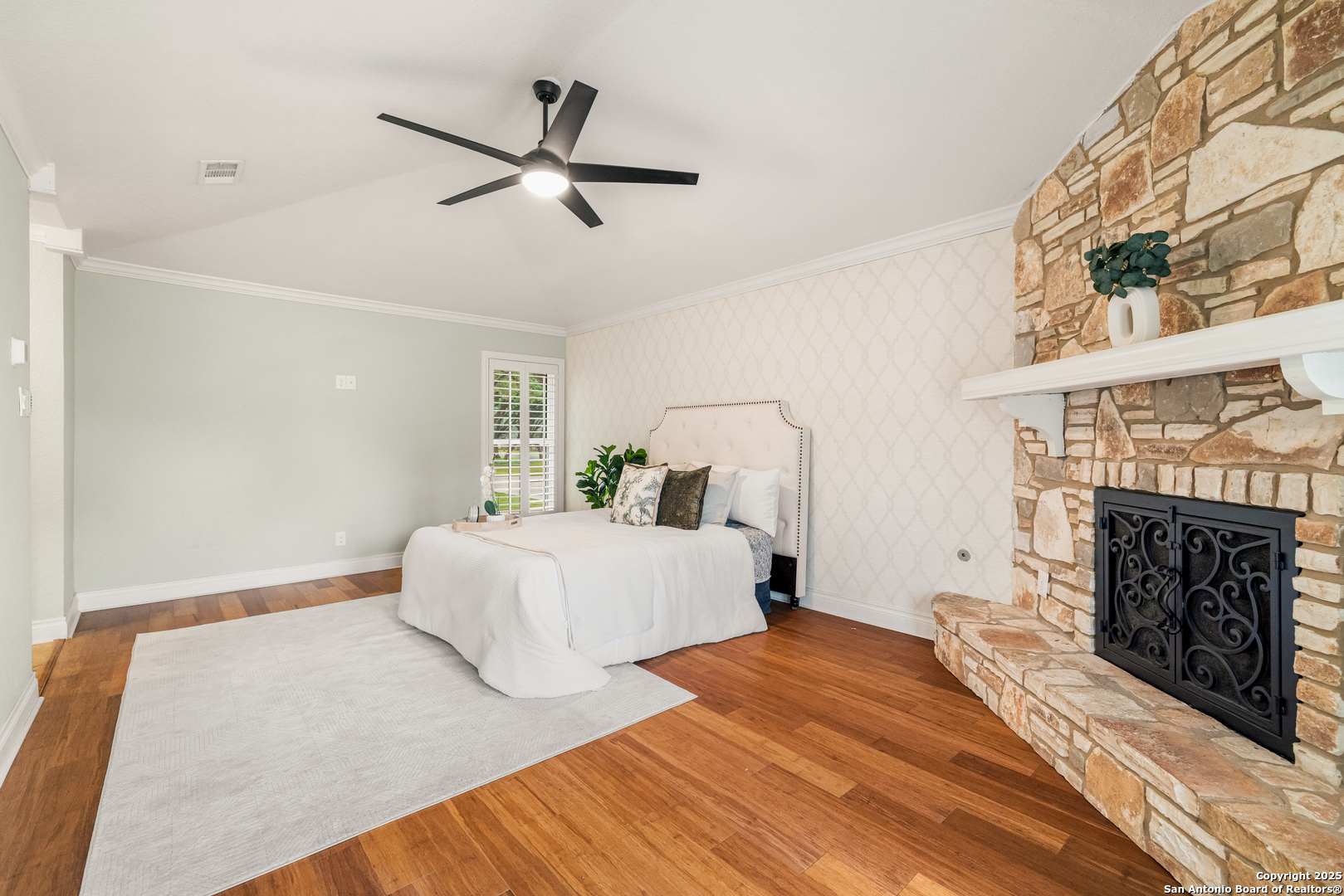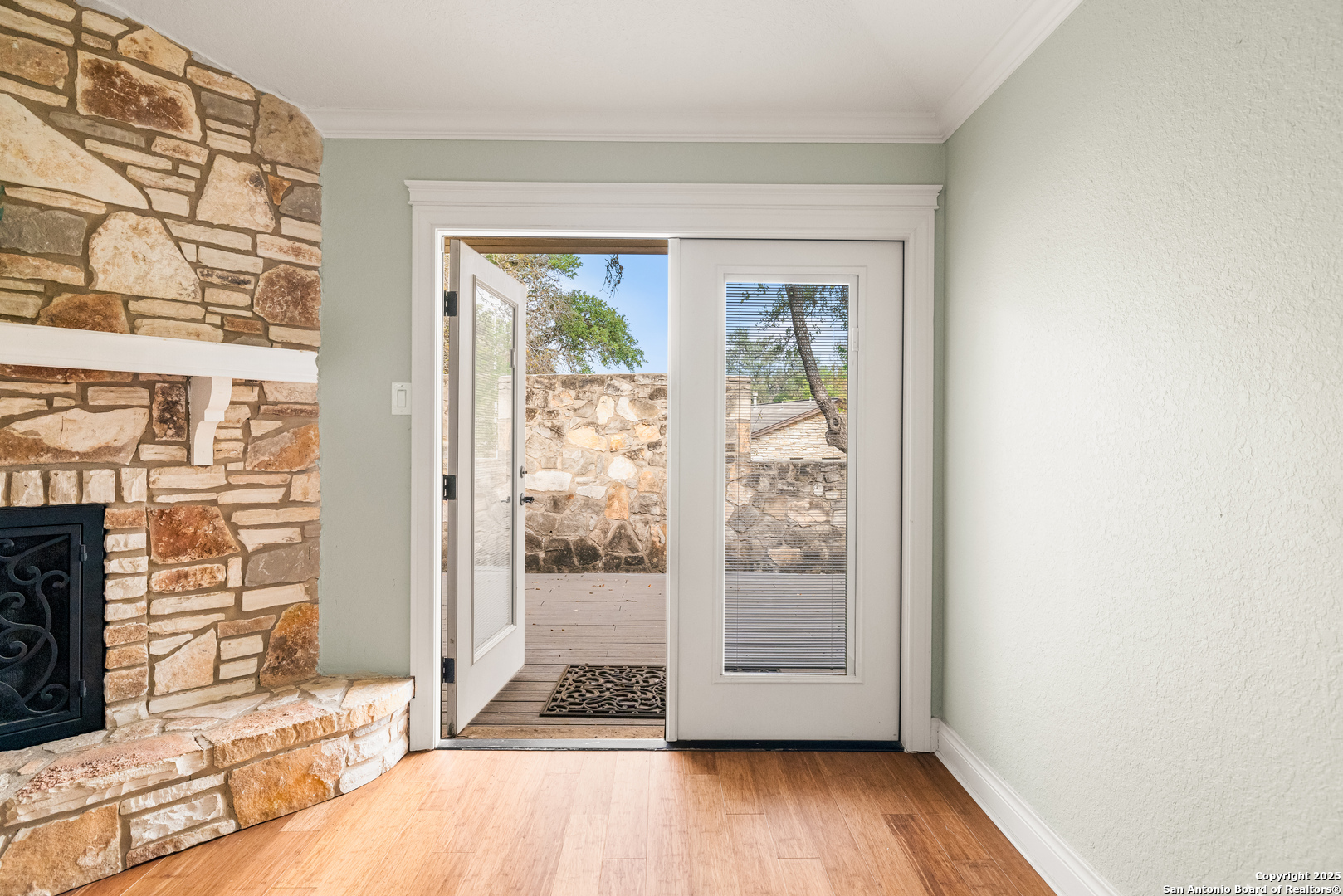 Discover a rare blend of luxury and seclusion in this beautifully appointed 4-bedroom, 3-bath residence offering 3,121 square feet of refined living space. Designed for both comfort and sophistication, the home features two elegant living areas, a dedicated study, and a custom bar that elevates everyday entertaining. The gourmet kitchen is a true showpiece with an oversized designer island, premium cabinetry, and top-tier appliances. The primary suite serves as a private sanctuary with its own fireplace and an intimate patio, perfect for quiet mornings or unwinding in the evening. A second and third fireplace in the main living areas also adds added warmth and architectural charm. Set on 0.75 acres, the property feels secluded while still being conveniently located within the city. The backyard offers a peaceful retreat with a uniquely contoured pool that is subtly reminiscent of the Texas outline, framed by mature trees that enhance privacy and ambiance. Two backyard structures add valuable flexibility, including one fully finished with mini-split HVAC, recessed lighting, and electricity, ideal for a personal studio, office, or high-end hobby space. A graceful U-shaped driveway provides elegant curb presence and easy guest parking, while a separate controlled-access gate allows for additional secure parking. An attached two-car garage and quiet cul-de-sac setting further elevate the sense of exclusivity and comfort this property provides.