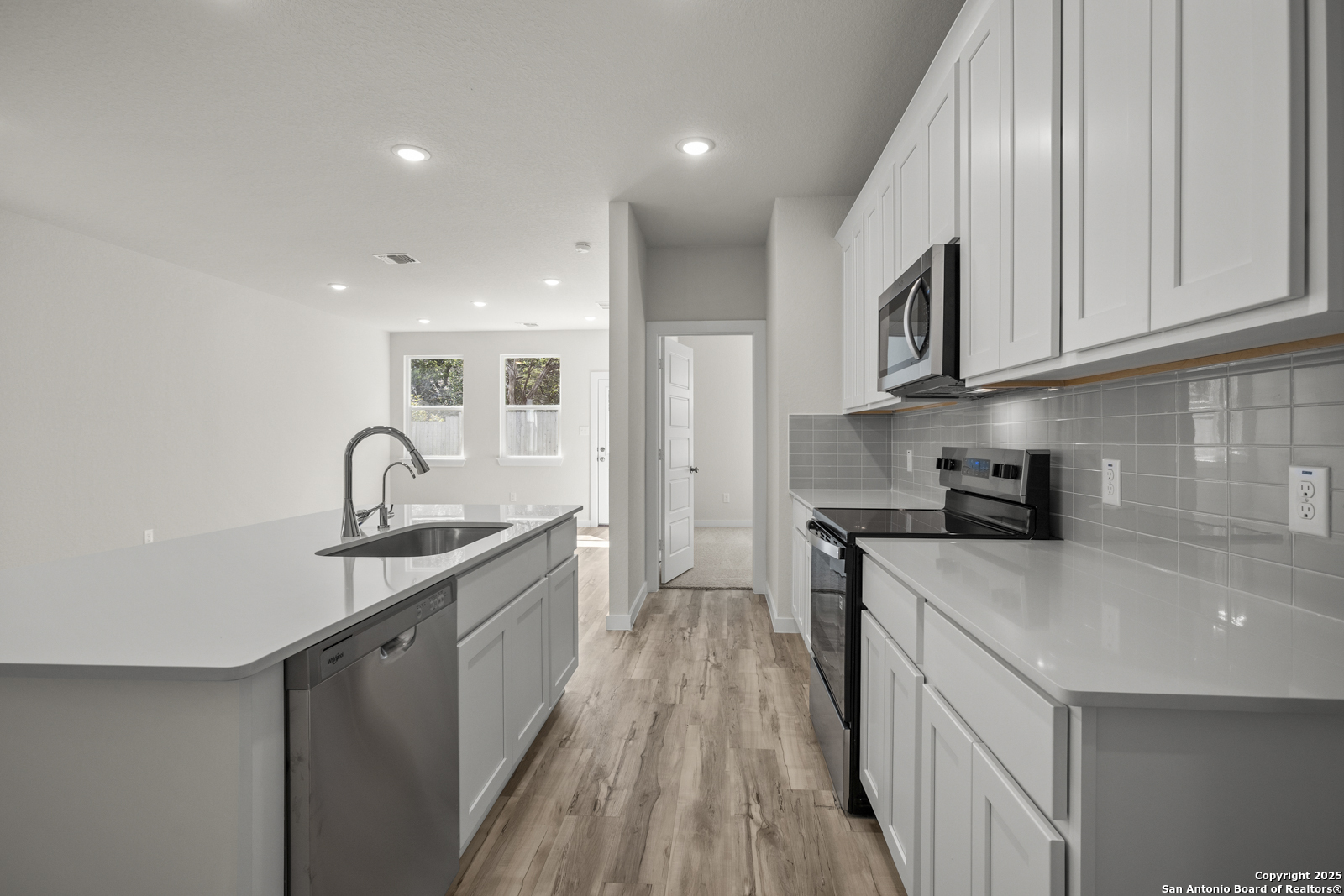 At the heart of the Hawthorne Plan plan, you'll find a welcoming open kitchen with a convenient center island and a built-in pantry. The kitchen oversees a spacious dining area and an airy great room a few steps away. The luxurious owner's suite is adjacent, boasting a walk-in closet and a private bath. You'll also find a powder room on this floor. There are three bedrooms upstairs, one which can be optioned as a versatile loft space. An additional full bath rounds out this level. Additional home highlights and upgrades: 42"" white kitchen cabinets, quartz countertops and backsplash Luxury wood-look vinyl plank flooring in common areas Stainless-steel appliances and gas range oven Additional recessed lighting throughout home Cultured marble countertops and modern rectangular sinks in bathrooms Landscape package with sprinkler system Garage door opener with two remotes Soft water loop Exceptional included features, such as our Century Home Connect smart home package and more!