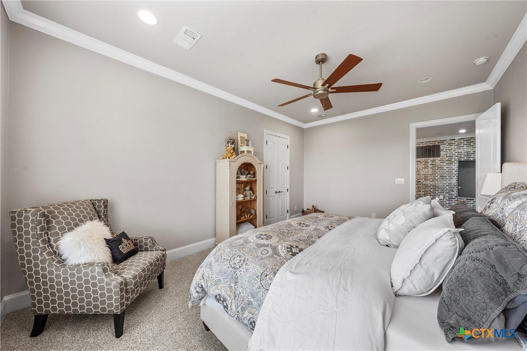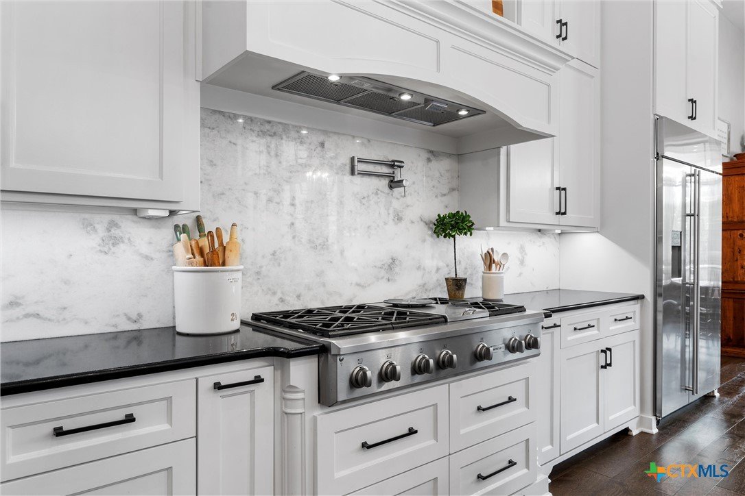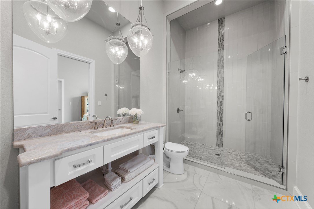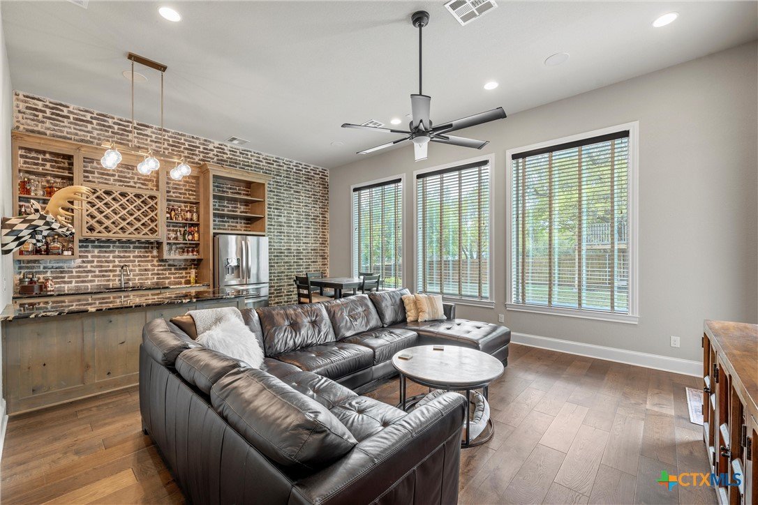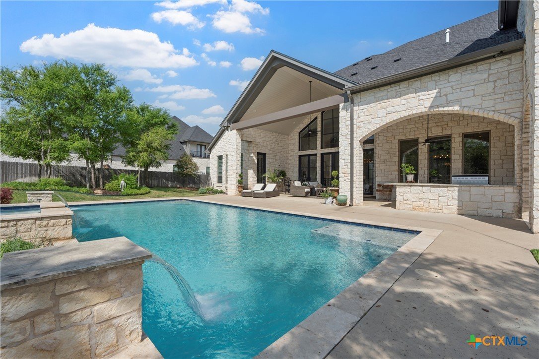 Luxury awaits at 9010 Canyon Trail, McGregor, TX—an extraordinary 7-bed, 5.5-bath, 7,861-sq-ft estate in the exclusive Hidden Valley community. Built in 2018 by Loera Custom Homes, this 0.71-acre cul-de-sac masterpiece blends timeless elegance with modern sophistication. Step inside to soaring ceilings, genuine hardwood floors, and a breathtaking open layout. The chef’s kitchen dazzles with granite counters, two large islands, 48 inch dual-fuel range, Monogram double ovens, built-in fridge, and a walk-in pantry. The living room’s floor-to-ceiling austin stone fireplace and walls of windows open to the resort-style backyard. The main-level primary suite is pure serenity: vaulted ceilings, sitting area, and a spa bath with marble floors, soaking tub, steam shower, and boutique closet spaces. Two private guest suites, Alderwood paneled study, and formal dining complete the first floor. Upstairs, four spacious bedrooms with two bathrooms and an open concept landing space offer endless flexibility for multigenerational living. Outside, escape to your private oasis: heated gunite pool + spa, covered pavilion with full outdoor kitchen and raised garden beds with drip irrigation and custom garden shed—all surrounded by mature trees and total privacy. The oversized 3-car garage includes epoxy and ample cabinet storage. This Hidden Valley oasis delivers peace of mind along with convenience, just minutes from Waco, Baylor, and SpaceX’s booming McGregor corridor. Located in Midway ISD and NO mandatory HOA. This turnkey legacy estate is better than new. Schedule your private tour today!