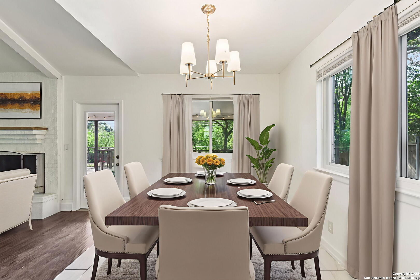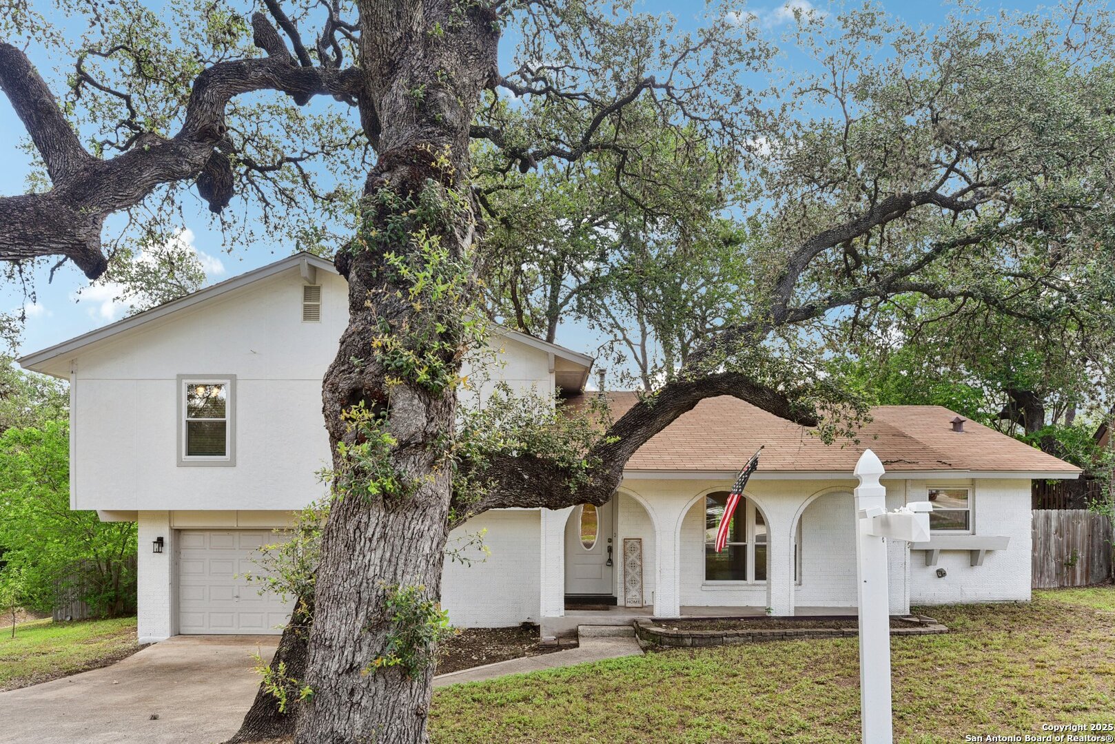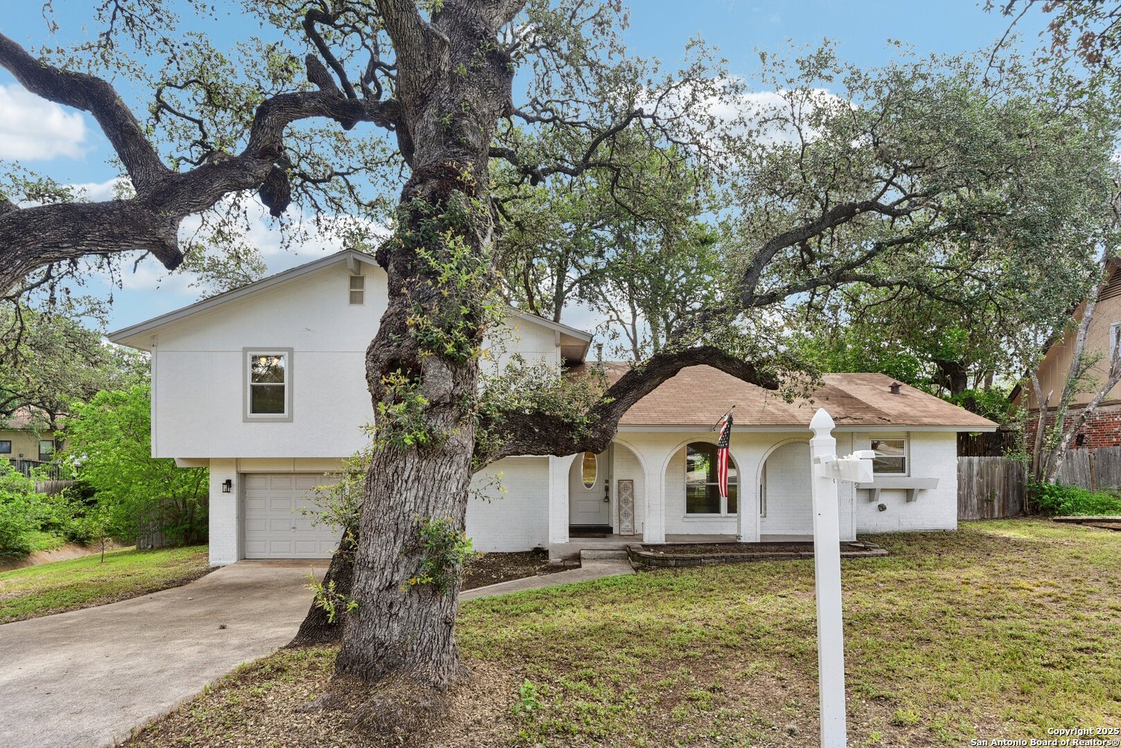 Welcome to 9014 Brigadoon, a beautifully remodeled two-story home nestled in the sought-after Braun Station West community-complete with two pools, a park, playground, BBQ areas, and a basketball court. This home makes a striking first impression with mature oak trees, impressive curb appeal, and a setback from the street that adds privacy and charm. Inside, you'll find glossy dark floors that contrast elegantly with light-toned walls and abundant natural light. The spacious living room features a cozy fireplace and seamlessly flows into the dining area and updated kitchen, creating a warm, open atmosphere. Unique architectural touches and numerous interior upgrades give the home a fresh, modern feel while keeping it's original character. Upstairs, the primary suite offers a private retreat with generous counter and cabinet space, and double vanities. Pretty windows overlook the expansive backyard, which includes an oversized deck, lush landscaping, and several mature oaks-all within a fully fenced space that's perfect for relaxing or entertaining. This one-of-a-kind property blends timeless character with modern updates in a peaceful, amenity-rich neighborhood!