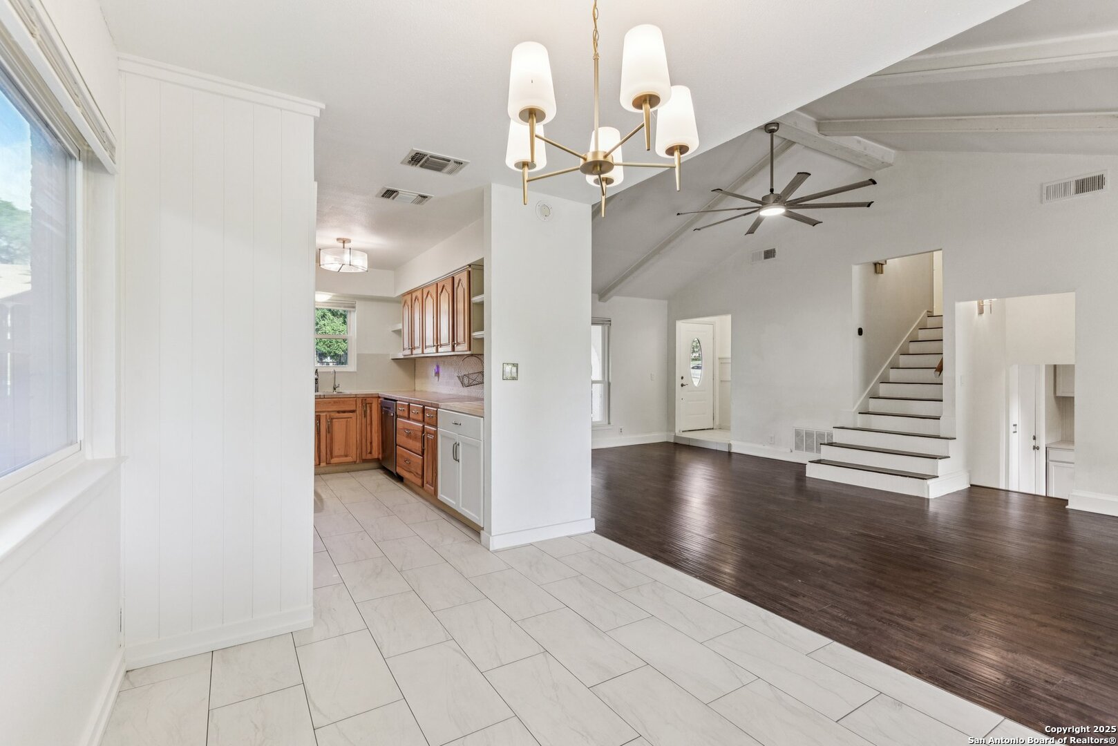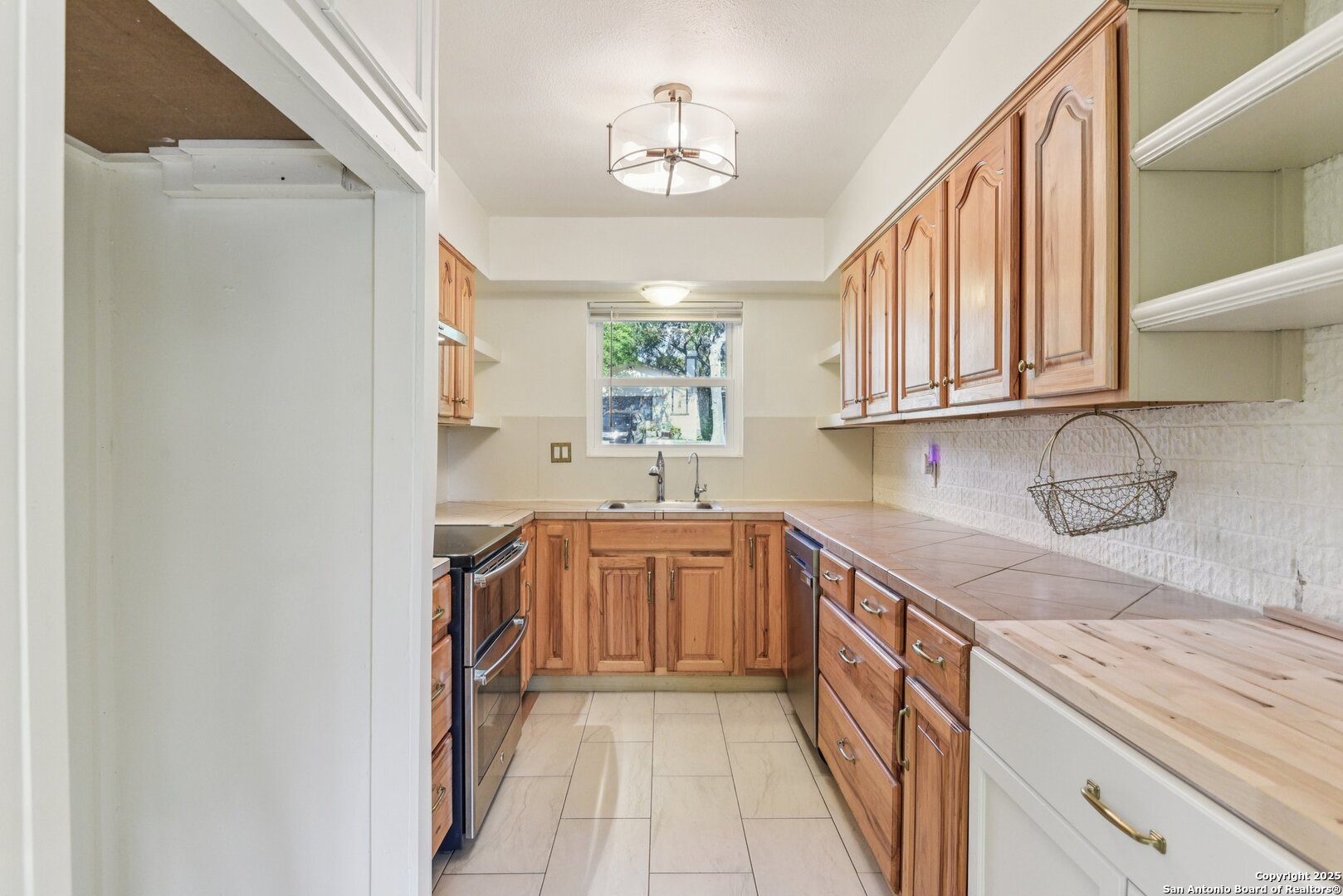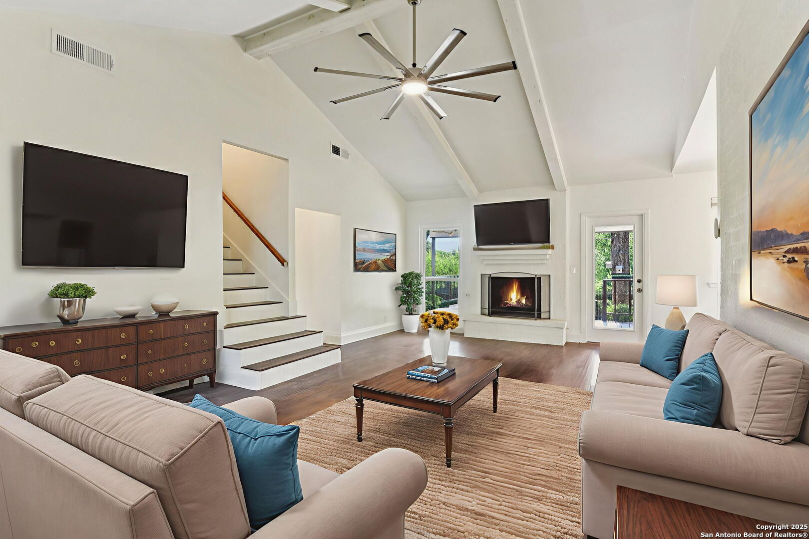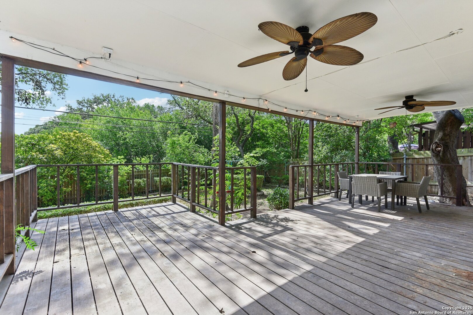 Welcome to 9014 Brigadoon, a beautifully remodeled two-story home nestled in the sought-after Braun Station West community-complete with two pools, a park, playground, BBQ areas, and a basketball court. This home makes a striking first impression with mature oak trees, impressive curb appeal, and a setback from the street that adds privacy and charm. Inside, you'll find glossy dark floors that contrast elegantly with light-toned walls and abundant natural light. The spacious living room features a cozy fireplace and seamlessly flows into the dining area and updated kitchen, creating a warm, open atmosphere. Unique architectural touches and numerous interior upgrades give the home a fresh, modern feel while keeping it's original character. Upstairs, the primary suite offers a private retreat with generous counter and cabinet space, and double vanities. Pretty windows overlook the expansive backyard, which includes an oversized deck, lush landscaping, and several mature oaks-all within a fully fenced space that's perfect for relaxing or entertaining. This one-of-a-kind property blends timeless character with modern updates in a peaceful, amenity-rich neighborhood!