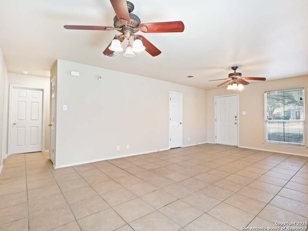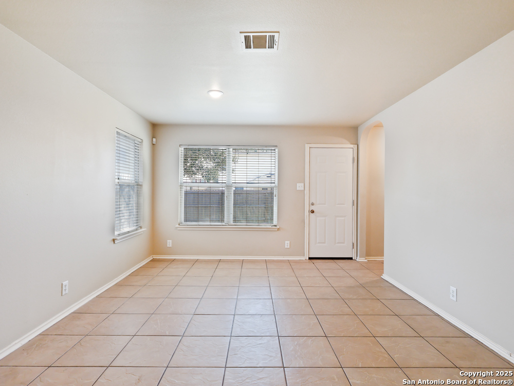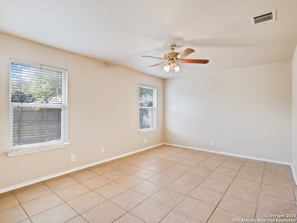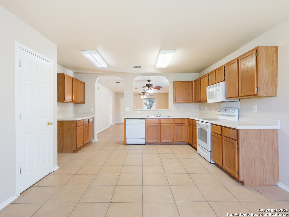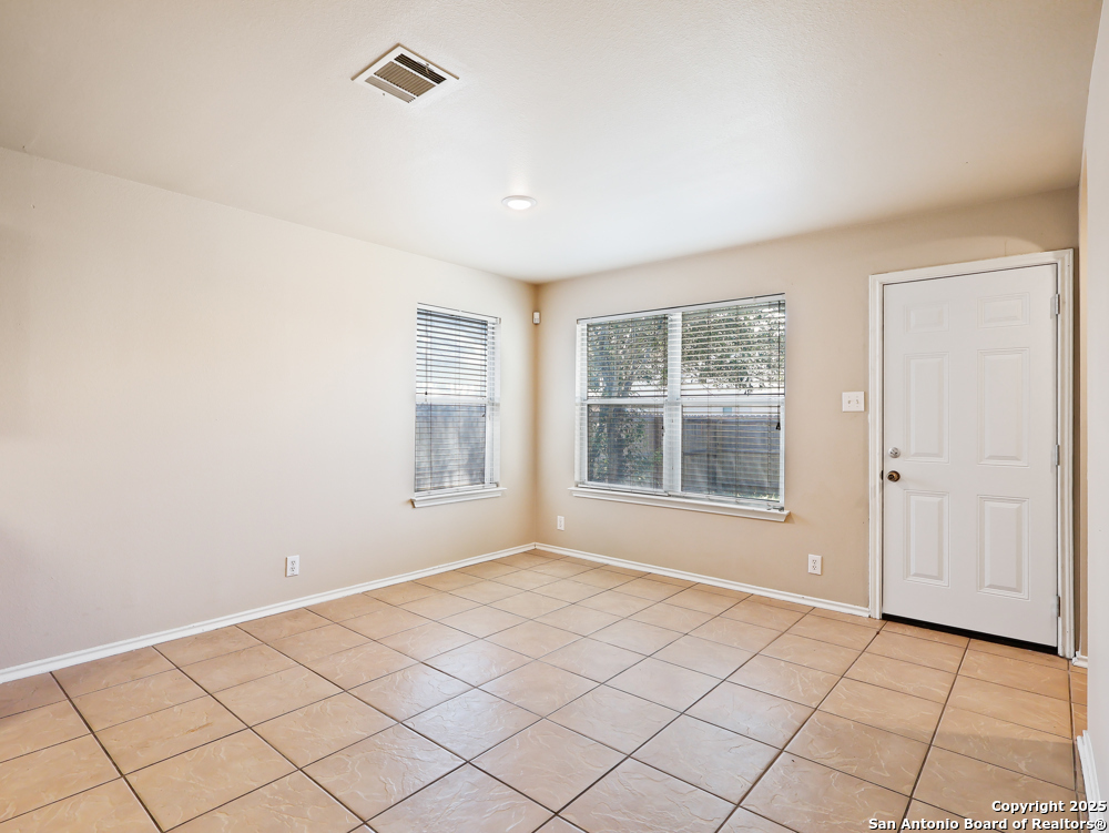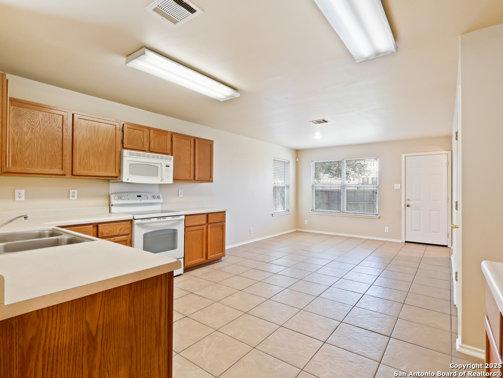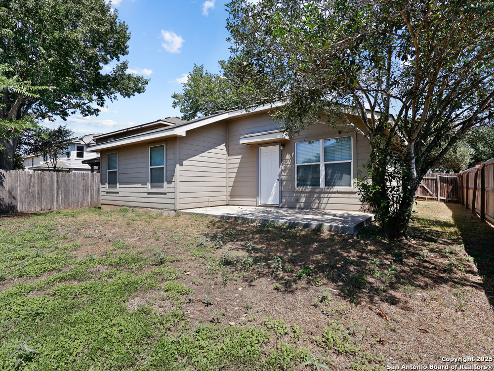 Located at 9014 Spiral Woods in Universal City, this 3-bedroom, 2-bath home offers a balance of comfort and convenience with easy access to shopping, dining, and major highways. A red brick facade with neutral stucco trim and a mature oak tree in the front yard create an inviting first impression. Inside, natural light fills the open-concept living and dining areas, designed for both everyday living and entertaining. The kitchen includes plentiful cabinetry, generous counter space, and a breakfast nook for casual meals. The spacious primary suite features a tray ceiling, an en suite bathroom with dual vanities, a soaking tub, glass shower, and a walk-in closet. Additional bedrooms provide flexibility for guests, hobbies, or a home office. Step outside to a private backyard with a patio and fenced lawn, ideal for gatherings or relaxation. With proximity to New Braunfels, Randolph Air Force Base, The Forum at Olympia Parkway, Hospital, Shopping, Entertainment, Schools, and convenient access to I-35 and Loop 1604, this home offers an excellent location for enjoying all that Universal City and San Antonio have to offer.
