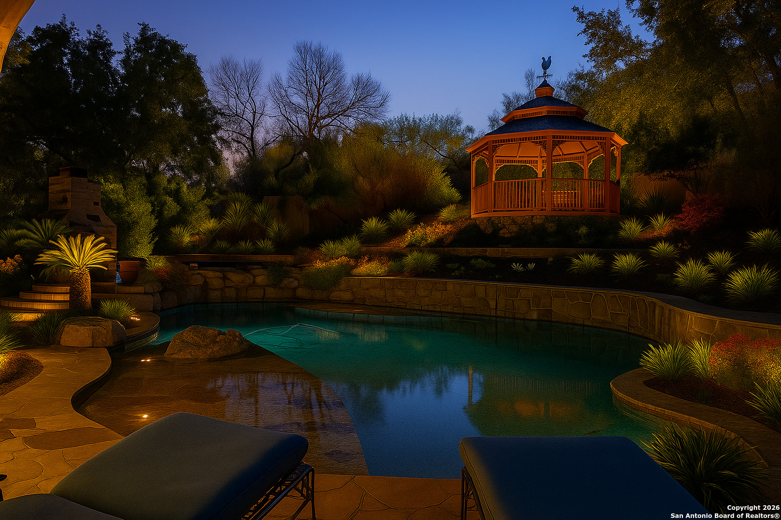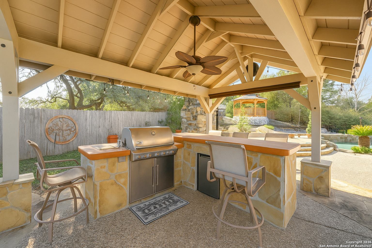 Hill Country Views, Gated Community & Resort-Style Living in Boerne ISD! Welcome to Woodland Pass, a hilltop retreat in the guard-gated Limestone Ranch community. Set on a spacious .57-acre lot, this 4-bedroom home combines luxury upgrades with everyday comfort and entertainment. Inside, you'll find a freshly painted, light-filled interior and a remodeled kitchen featuring gas cooking, double ovens, and generous counter space-perfect for both hosting and daily living. The backyard is designed as your private resort: a sparkling pool with waterfalls and water features, an outdoor kitchen, fire pit, gazebo, and even a basketball court. It's the ideal space for relaxing, entertaining, or staying active. Additional highlights include abundant storage throughout the home, updated finishes, and the peace of living in a secure, gated neighborhood with Boerne ISD schools nearby. This property offers the best of San Antonio living with Hill Country charm-luxury, space, and endless amenities. Schedule your private showing today to experience it for yourself!