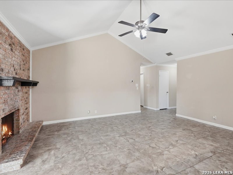 Ideally situated in the middle of a cul de sac in popular Braun Station, this beautiful home offers an inviting space with plenty of privacy. You'll love the wonderful curb appeal and privacy it offers. Step into an inviting open floor plan and a beautiful floor to ceiling fireplace! Wood floors in most rooms. The split bedroom floor plan offers privacy and flexibility with comfort. Separate Dining room can be converted into office space. The large 25 ft. x 13 ft. COVERED patio is perfect for enjoying the outdoors year round and entertaining family and friends. A generous sized 1/4 acre back yard allows for a wide open space to enjoy! This home is in a prime location with close proximity to Loop 1604, shopping, UTSA, entertainment and dining options. Don't miss out on this opportunity to make this home yours now!