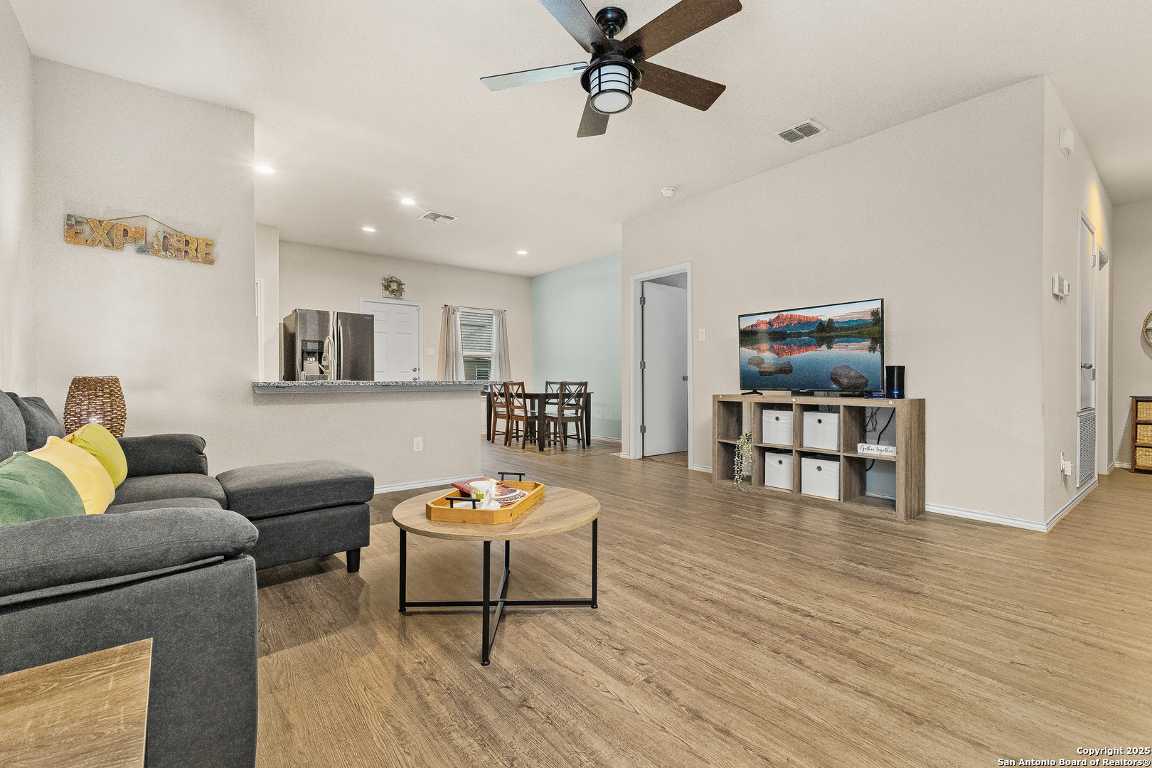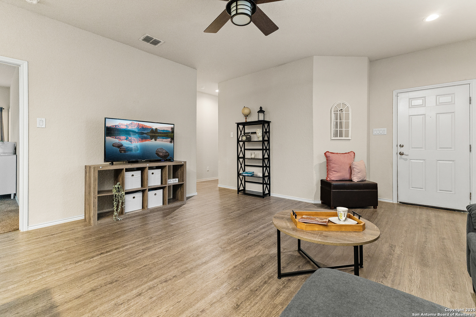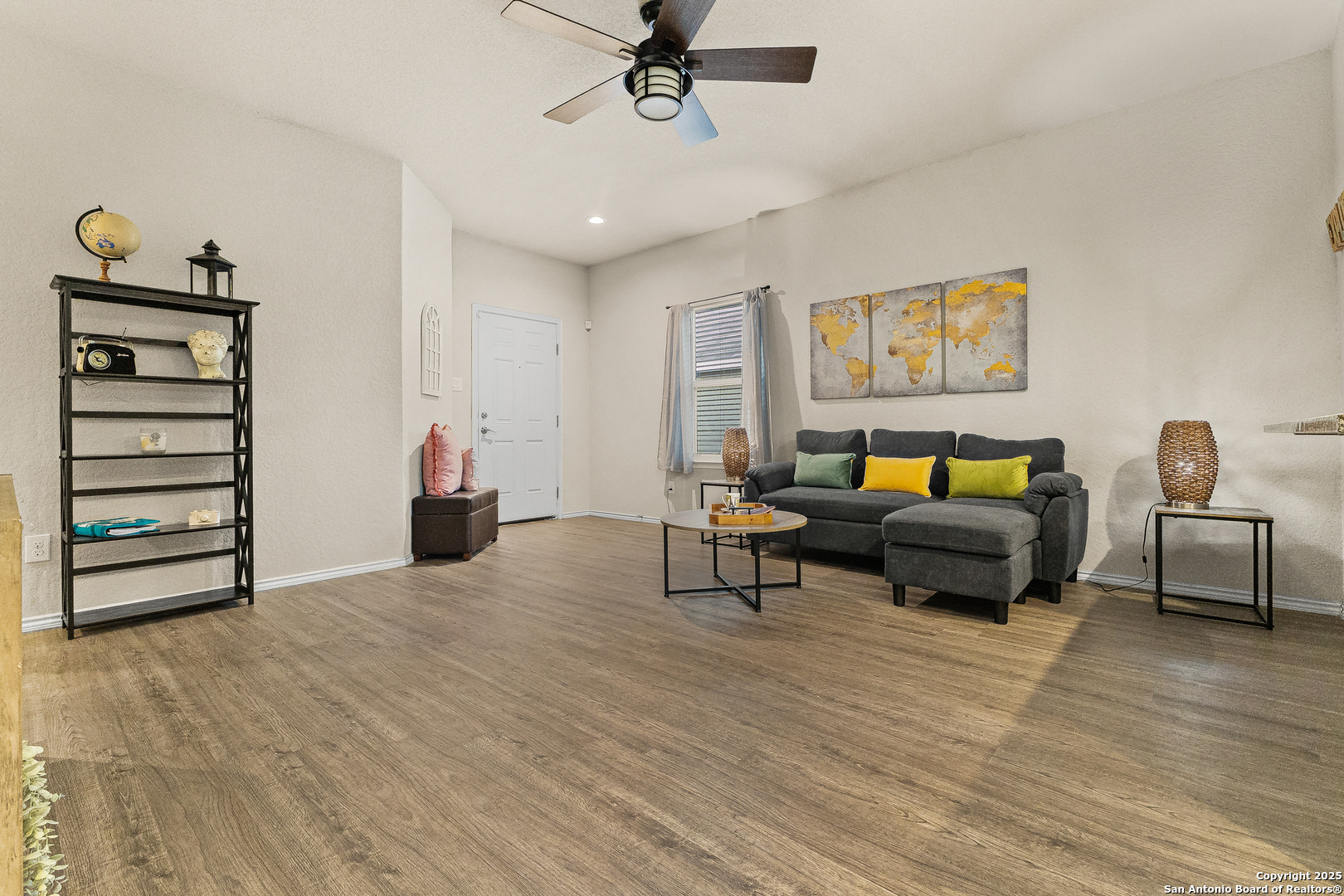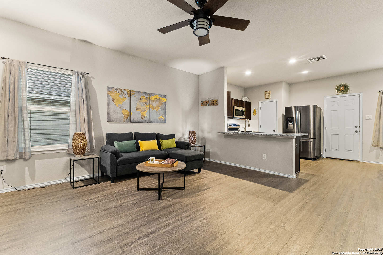 ** All appliances included and closing cost assistance available!!** This beautifully maintained 3-bedroom, 2-bath Rausch-Coleman Armstrong Plan in the desirable Crossing at Westlakes is the perfect move-in ready opportunity. Built in 2019 and offering 1,233 sq ft of smart living space, the home features high ceilings, and plank flooring throughout all common areas and hallways. The kitchen boasts granite countertops, dark cabinets and stainless steel appliances, and the refrigerator, washer, dryer, and water softener all convey. Enjoy a spacious backyard with a large concrete slab-ideal for creating your own outdoor oasis. Additional features include a security system, window blinds throughout, and an open-concept layout that's perfect for entertaining. Located in sought-after Northside ISD with quick access to 410, 151, 1604, and Hwy 90, just minutes from SeaWorld, Lackland AFB, shopping, dining, and more.