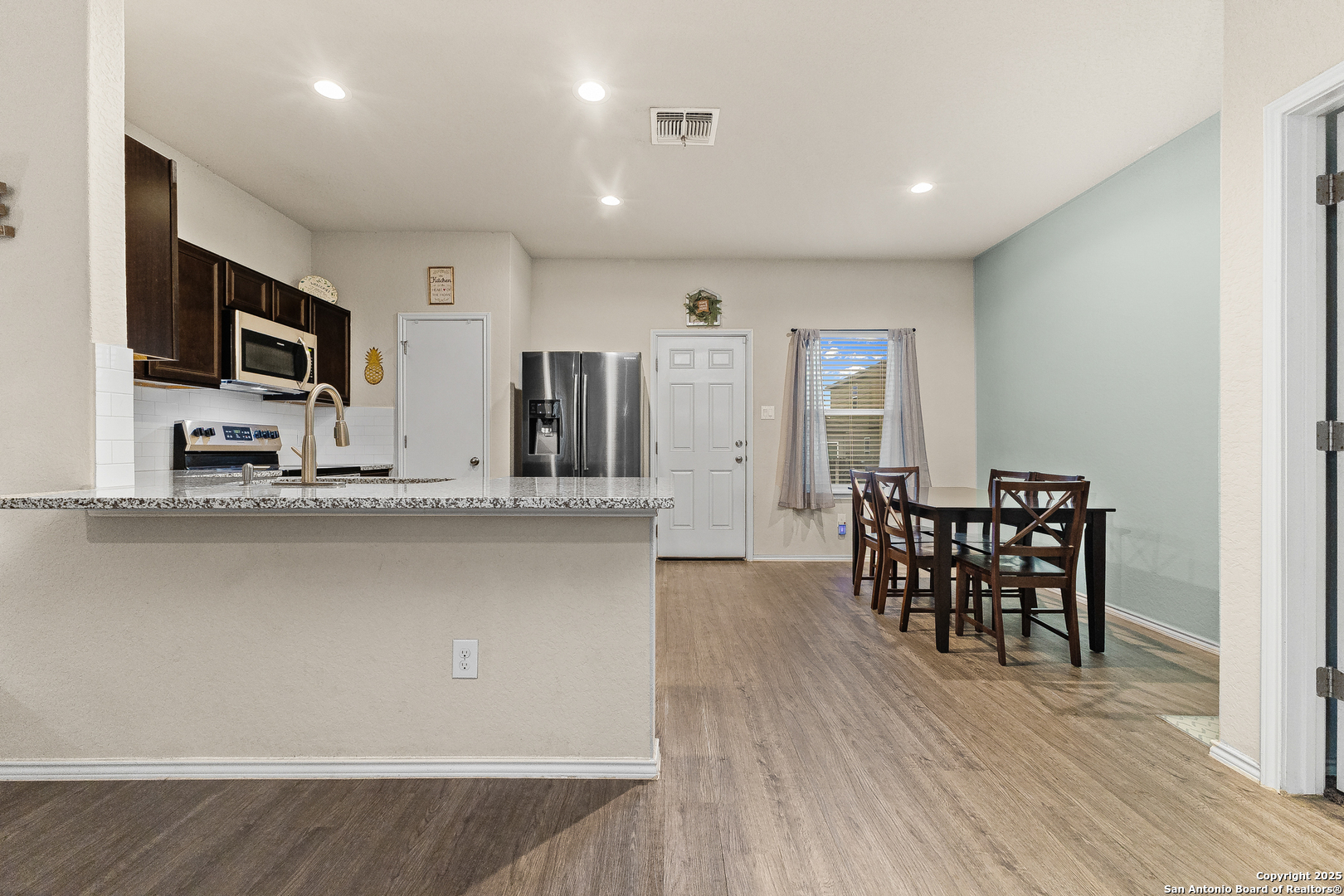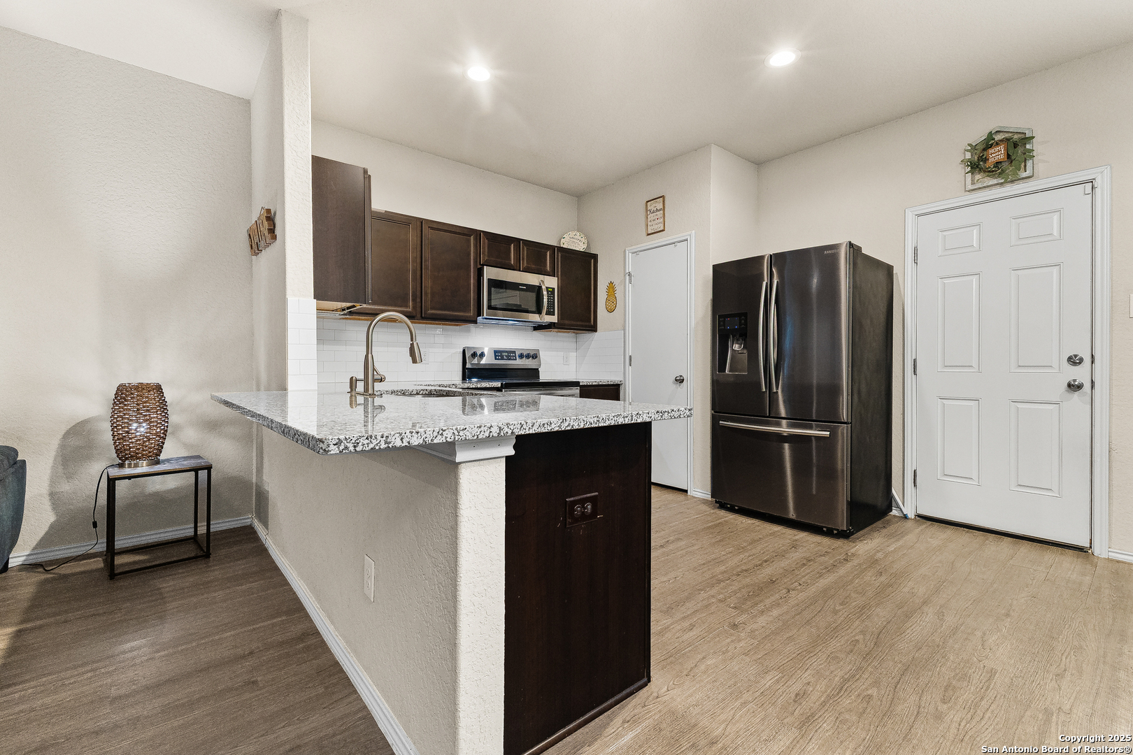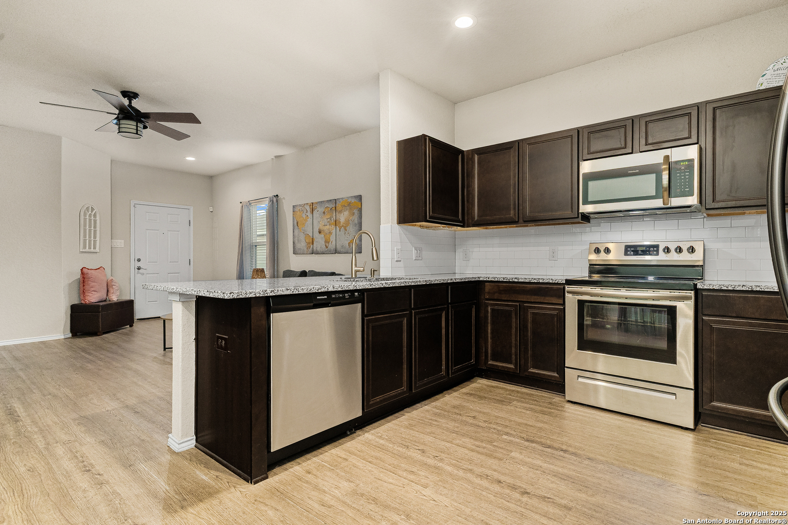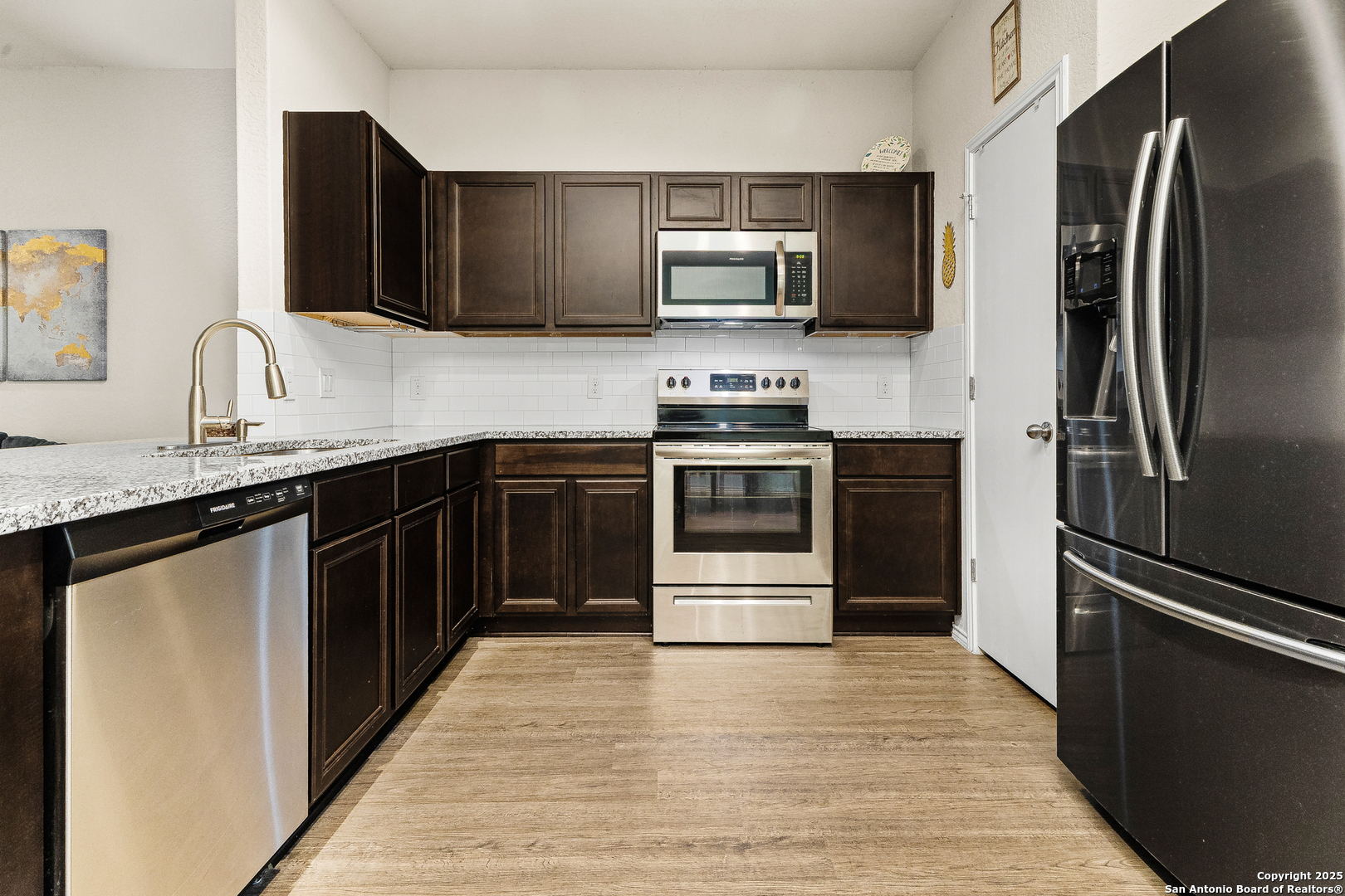 ** All appliances included and closing cost assistance available!!** This beautifully maintained 3-bedroom, 2-bath Rausch-Coleman Armstrong Plan in the desirable Crossing at Westlakes is the perfect move-in ready opportunity. Built in 2019 and offering 1,233 sq ft of smart living space, the home features high ceilings, and plank flooring throughout all common areas and hallways. The kitchen boasts granite countertops, dark cabinets and stainless steel appliances, and the refrigerator, washer, dryer, and water softener all convey. Enjoy a spacious backyard with a large concrete slab-ideal for creating your own outdoor oasis. Additional features include a security system, window blinds throughout, and an open-concept layout that's perfect for entertaining. Located in sought-after Northside ISD with quick access to 410, 151, 1604, and Hwy 90, just minutes from SeaWorld, Lackland AFB, shopping, dining, and more.