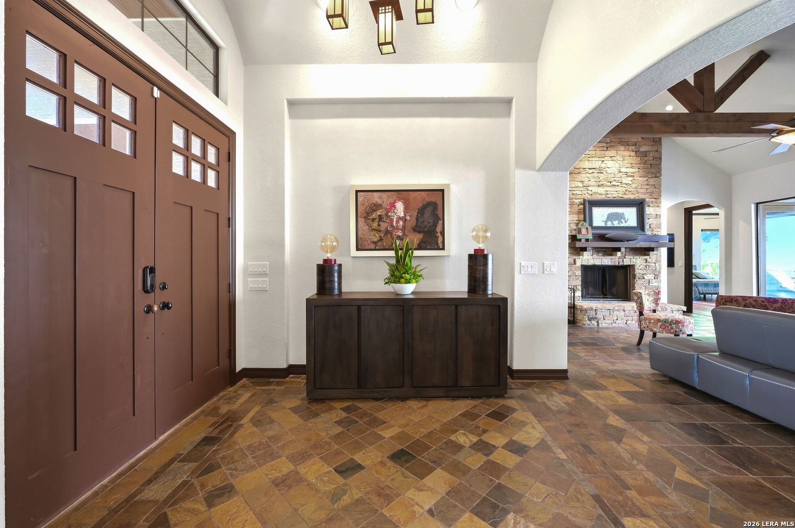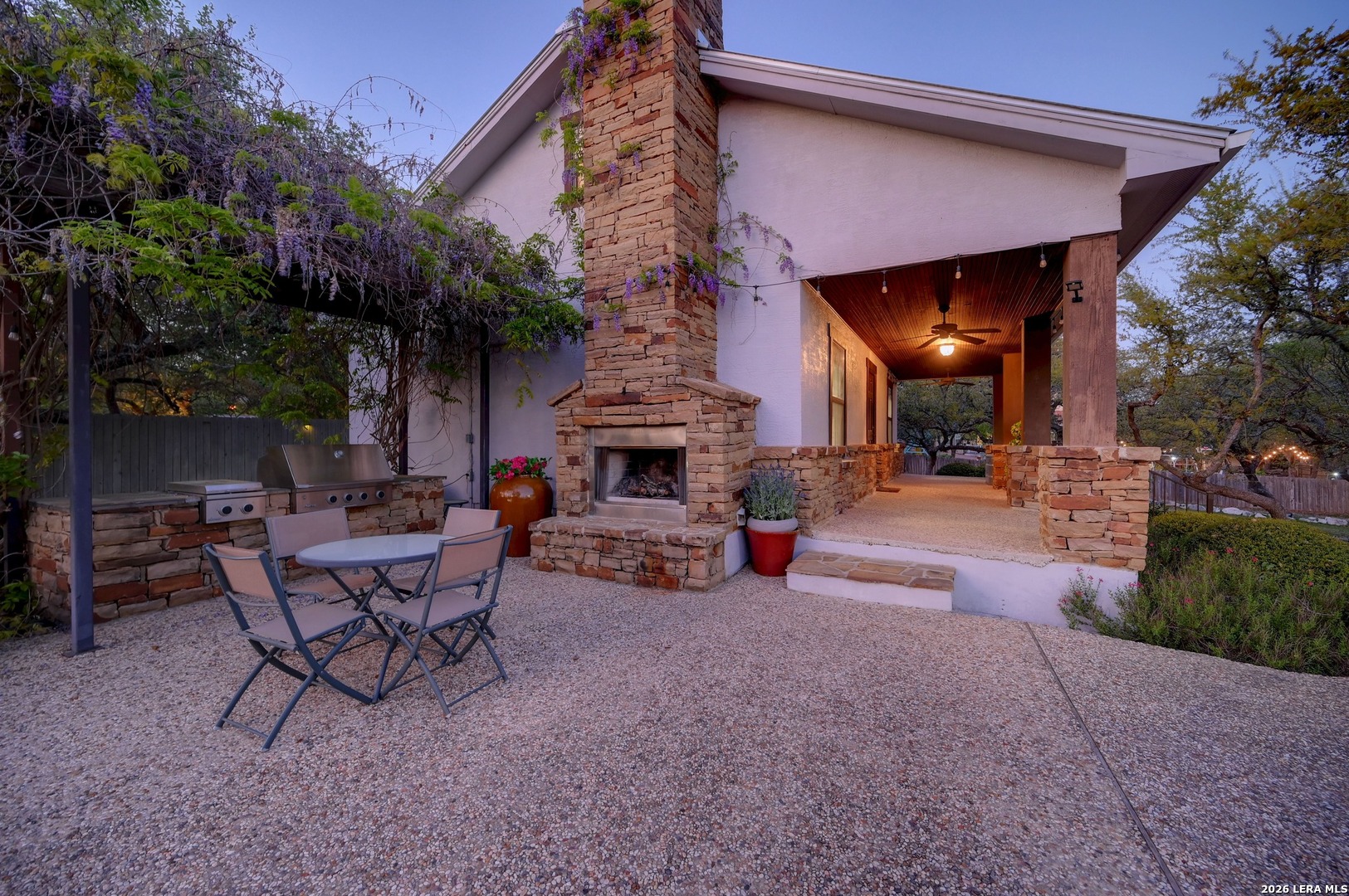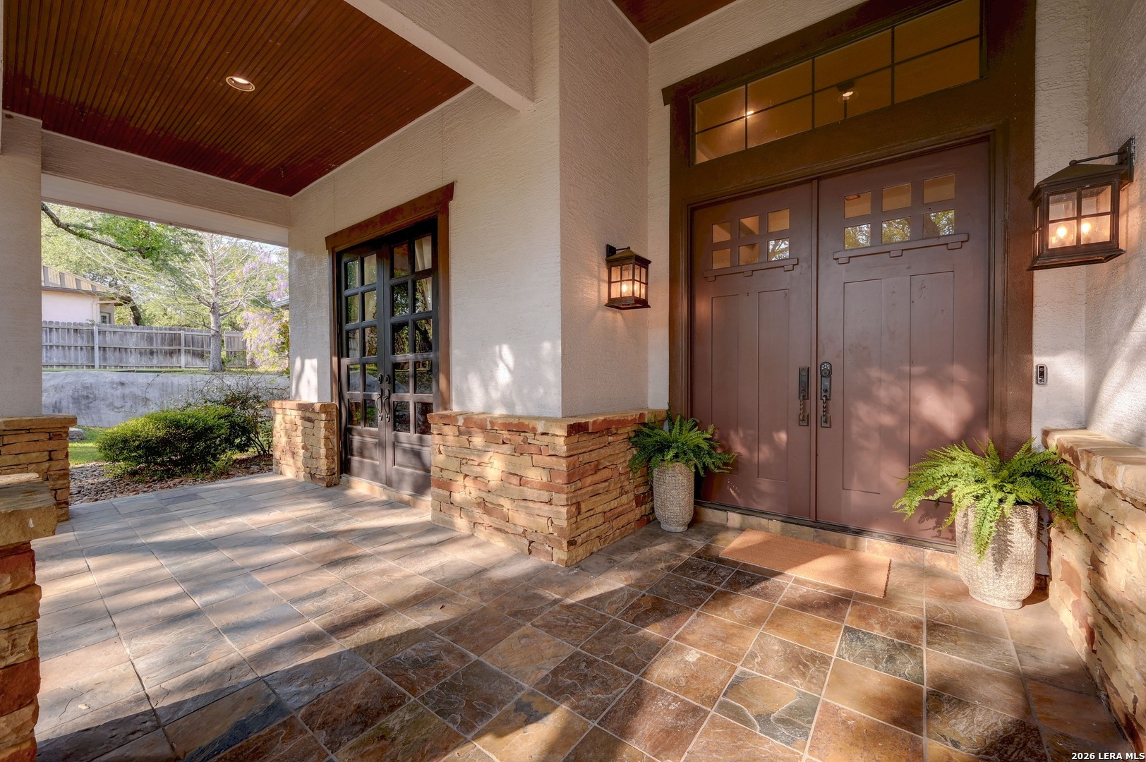 Tucked within the sought-after enclave of The Forest at Stone Oak, 903 Foxton Drive presents a rare opportunity to experience true estate-style living in the heart of San Antonio. Set behind a quiet, manicured streetscape, this custom residence by David Mann rests gracefully on a premium corner lot, surrounded by mature oaks and a natural sense of privacy that immediately sets it apart. Arrival feels intentional. A semicircular drive leads to the formal entry, while a gated secondary entrance offers private access and additional parking-blending convenience with discretion. As the home comes into view, it reveals a presence that is both refined and welcoming. Inside, soaring ceilings and expansive windows fill the interiors with natural light, creating a space that feels open, elevated, and effortlessly livable. Designed as a one-and-a-half-story layout, the home balances grand entertaining with everyday comfort. The living areas flow seamlessly, offering a backdrop for both intimate evenings and larger gatherings, all framed by serene views of the surrounding landscape. The primary suite serves as a true retreat, with direct access to the backyard and a sense of calm that carries throughout the home. A dedicated executive office near the entry provides privacy and convenience, while the chef's kitchen anchors the main living spaces with multiple dining areas designed for both casual and formal moments. A private theater room adds to the home's versatility, while each secondary bedroom features its own en-suite bath with thoughtfully updated finishes. Upstairs, an expansive flex space offers endless possibilities-from a game room to a fitness studio-adapting effortlessly to your lifestyle. Outdoors, the property transforms into a secluded sanctuary. A resort-style pool and spa are surrounded by mature trees, creating complete privacy rarely found in this area. The covered patio and outdoor kitchen, complete with fireplace, extend the living experience year-round, while a separate workshop and secondary garage provide additional functionality. A finished 389 SQFT bonus space with AC, wood flooring, and connectivity offers flexibility for a studio, office, or private retreat.Recent improvements include a metal roof, updated secondary bathrooms, removal of all carpet, and a pre-listing inspection with completed repairs-providing peace of mind and true move-in readiness. Blending scale, privacy, and timeless design, this exceptional residence offers a lifestyle that is both elevated and effortless-just minutes from top-rated schools, premier shopping, dining, and all that Stone Oak has to offer. A rare offering where setting, design, and location come together seamlessly. Schedule your private showing today.