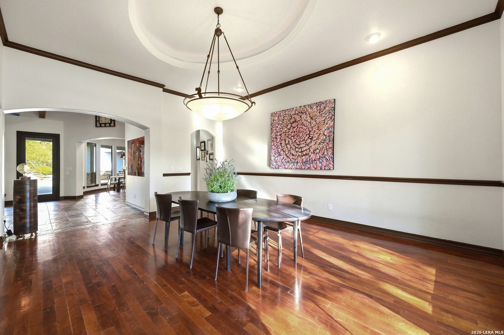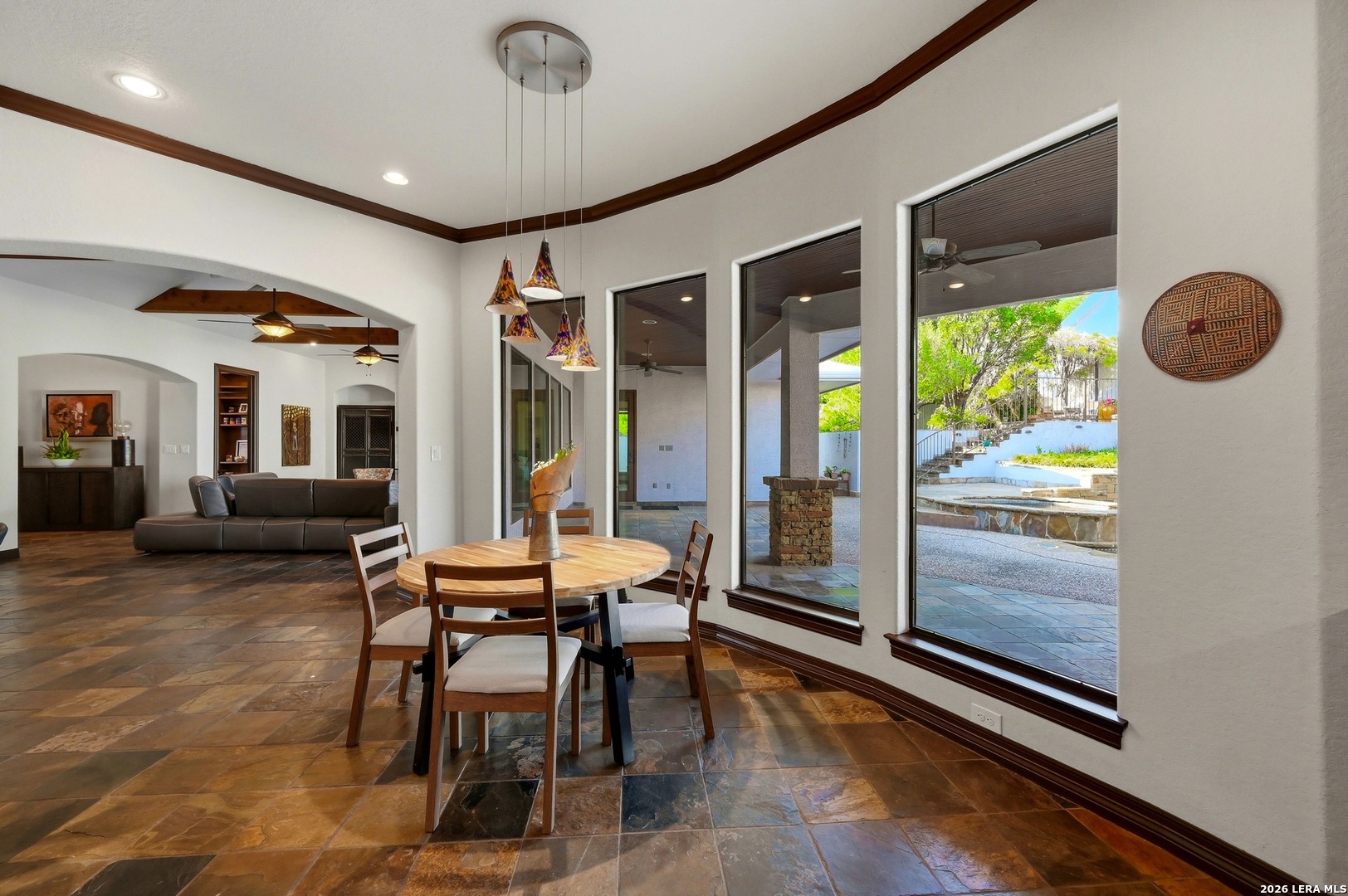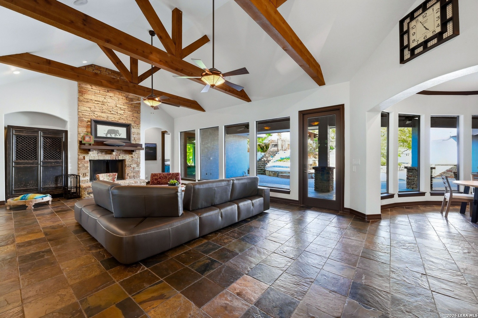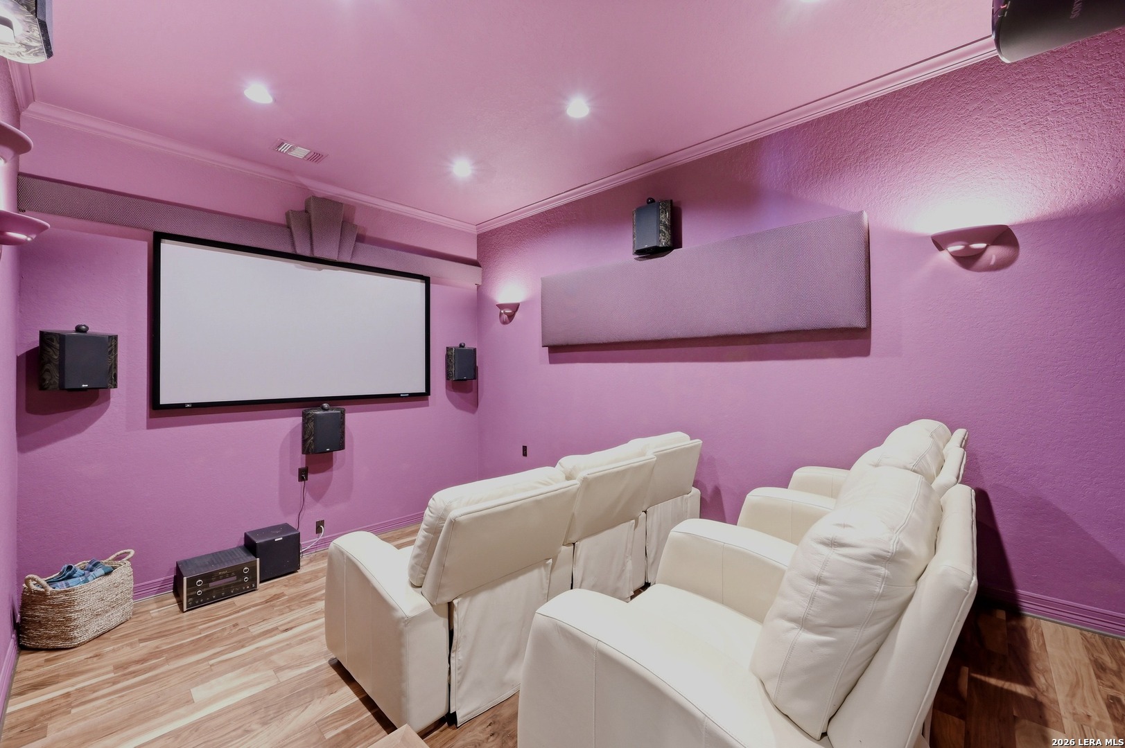 Tucked within the sought-after enclave of The Forest at Stone Oak, 903 Foxton Drive presents a rare opportunity to experience true estate-style living in the heart of San Antonio. Set behind a quiet, manicured streetscape, this custom residence by David Mann rests gracefully on a premium corner lot, surrounded by mature oaks and a natural sense of privacy that immediately sets it apart. Arrival feels intentional. A semicircular drive leads to the formal entry, while a gated secondary entrance offers private access and additional parking-blending convenience with discretion. As the home comes into view, it reveals a presence that is both refined and welcoming. Inside, soaring ceilings and expansive windows fill the interiors with natural light, creating a space that feels open, elevated, and effortlessly livable. Designed as a one-and-a-half-story layout, the home balances grand entertaining with everyday comfort. The living areas flow seamlessly, offering a backdrop for both intimate evenings and larger gatherings, all framed by serene views of the surrounding landscape. The primary suite serves as a true retreat, with direct access to the backyard and a sense of calm that carries throughout the home. A dedicated executive office near the entry provides privacy and convenience, while the chef's kitchen anchors the main living spaces with multiple dining areas designed for both casual and formal moments. A private theater room adds to the home's versatility, while each secondary bedroom features its own en-suite bath with thoughtfully updated finishes. Upstairs, an expansive flex space offers endless possibilities-from a game room to a fitness studio-adapting effortlessly to your lifestyle. Outdoors, the property transforms into a secluded sanctuary. A resort-style pool and spa are surrounded by mature trees, creating complete privacy rarely found in this area. The covered patio and outdoor kitchen, complete with fireplace, extend the living experience year-round, while a separate workshop and secondary garage provide additional functionality. A finished 389 SQFT bonus space with AC, wood flooring, and connectivity offers flexibility for a studio, office, or private retreat.Recent improvements include a metal roof, updated secondary bathrooms, removal of all carpet, and a pre-listing inspection with completed repairs-providing peace of mind and true move-in readiness. Blending scale, privacy, and timeless design, this exceptional residence offers a lifestyle that is both elevated and effortless-just minutes from top-rated schools, premier shopping, dining, and all that Stone Oak has to offer. A rare offering where setting, design, and location come together seamlessly. Schedule your private showing today.