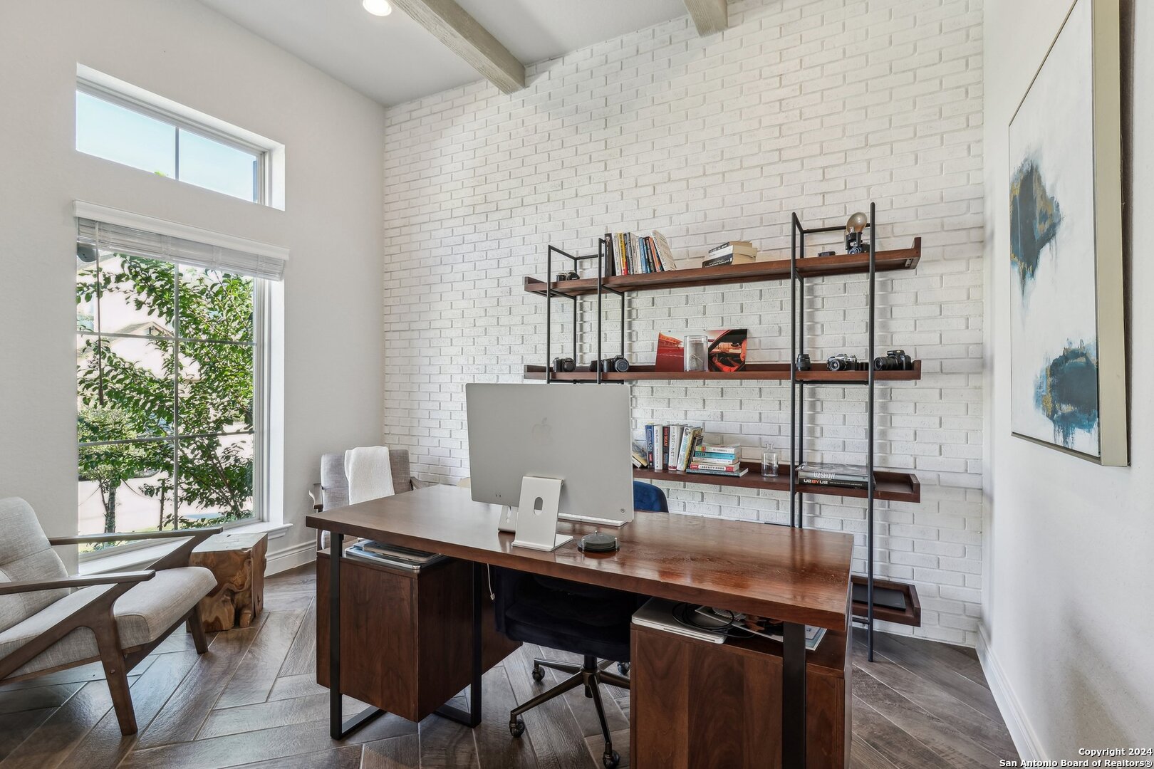 Backs to green space * 3-car tandem garage * Soaring 13-ft ceilings * Game/media room & office * Northside ISD This elegant Perry Home offers luxury, flexibility, and a peaceful backdrop of green space in one of San Antonio's most desirable areas. Step inside to find soaring 13-foot ceilings, abundant natural light, and ceramic tile flooring that enhances the home's modern flow. The open family room with fireplace connects to a gourmet kitchen featuring a granite island, gas cooktop, double ovens, stainless steel appliances, and a butler's pantry leading to the formal dining room-ideal for entertaining. Versatile spaces include a dedicated home office for remote work and a first-floor game or media room for relaxation or gatherings. The spacious primary suite showcases a spa-style bath with soaking tub, glass-enclosed shower, dual vanities, and an oversized walk-in closet. Guests will enjoy a private secondary suite plus two additional bedrooms and a full bath. Outdoor living shines with an extended covered patio overlooking the serene greenbelt-perfect for evening dining or weekend enjoyment. A 3-car tandem garage, tankless water heater, and Northside ISD schools add convenience and value. Ideally located near Loop 1604, I-10, La Cantera, The Rim, UTSA, and San Antonio's top shopping, dining, and entertainment. A move-in-ready home that balances modern design, comfort, and Hill Country charm.
