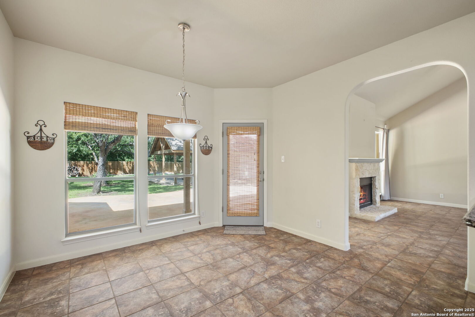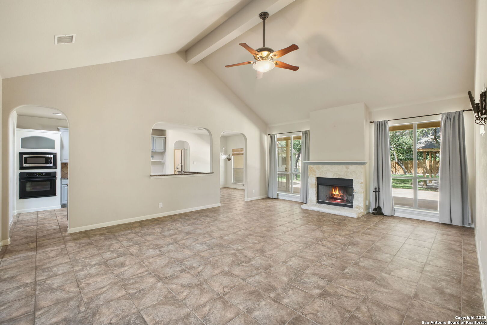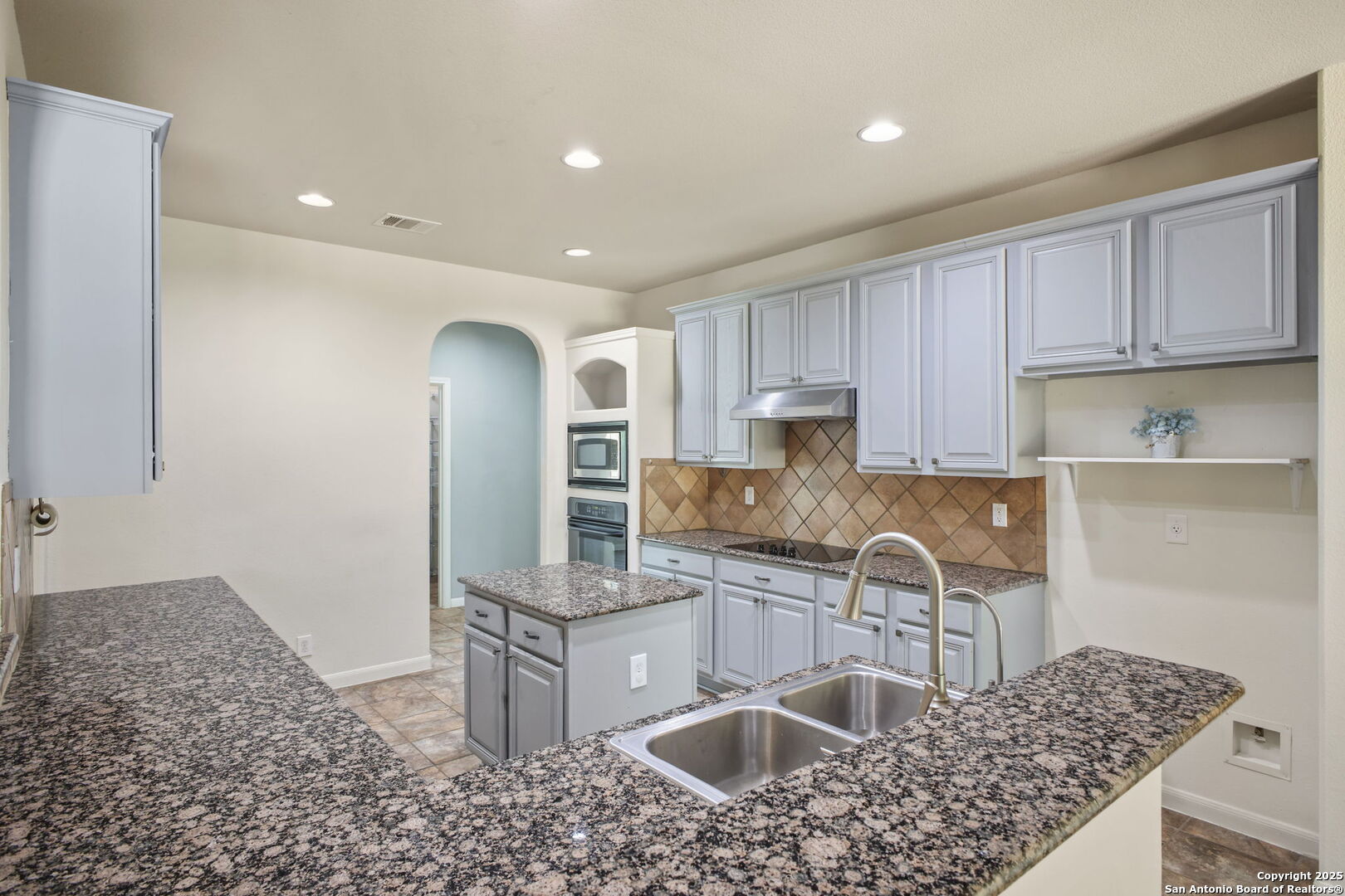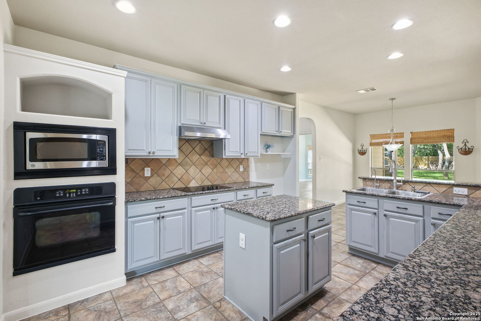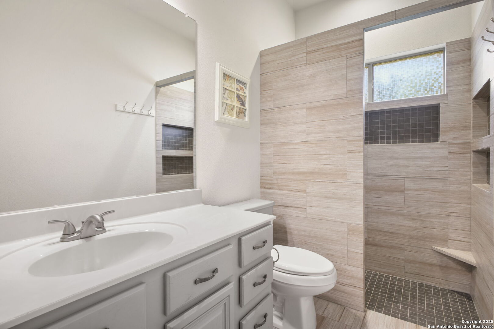 Welcome to your private oasis! Situated on a spacious 0.60-acre corner lot in a gated community, this beautifully upgraded home offers a serene lifestyle surrounded by lush greenery and mature plants including a peach and pomegranate trees. The extended long driveway provides up to 6 parking spots, while inside, the open floor plan shines with natural light, soaring high ceilings, vaulted touches in the main living and master suite, updated laminate flooring, tile, fireplace, soft-close kitchen cabinetry, a new flat stovetop that can be switched to gas and remodeled bathrooms featuring walk-in showers. The fourth bedroom with closet can be used as flex room/office! Comfort is enhanced with two smart thermostats-one controlling half of the home and the other managing the opposite side-along with a new HVAC system (2024), new water heater (2025), and recent roof updates (2020 main home, 2025 garage). Outdoors, you'll enjoy a custom-built pool, a newly added half bath dedicated to poolside use, a newly constructed air-conditioned studio perfect for work or fitness, and a detached back garage with water access that could easily be converted into a pool house. With Medina Lake just minutes away and schools nearby, this home blends modern upgrades with resort-style living-perfect for both relaxation and entertaining.