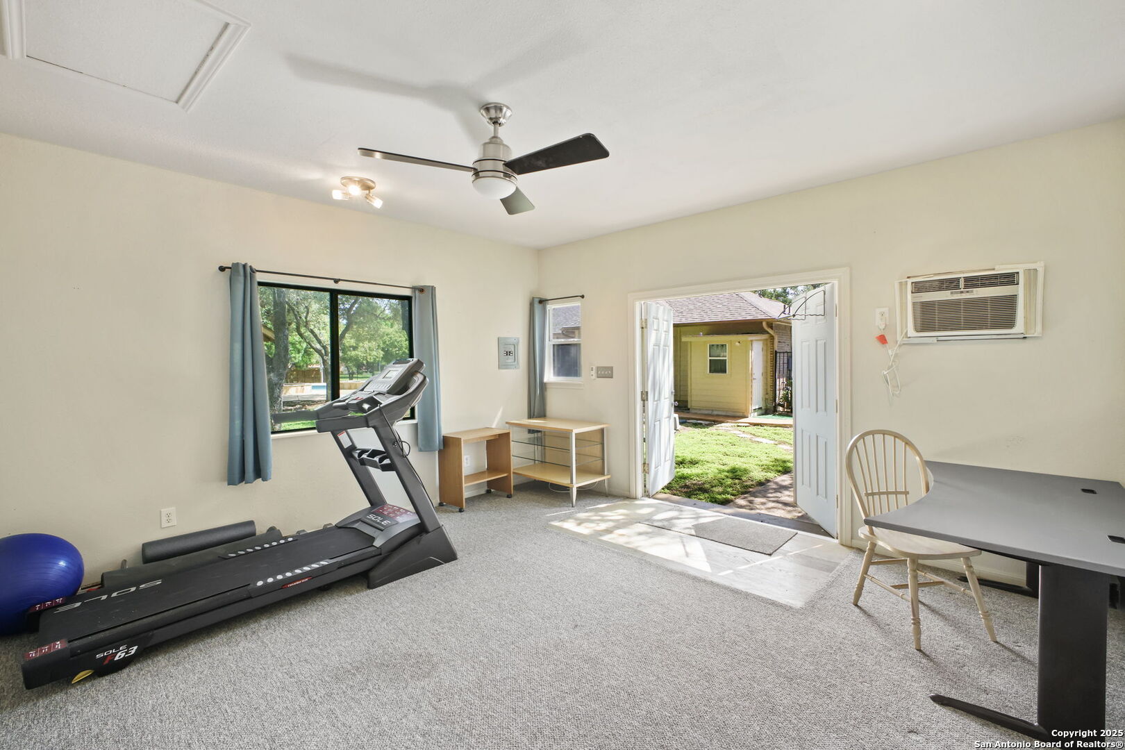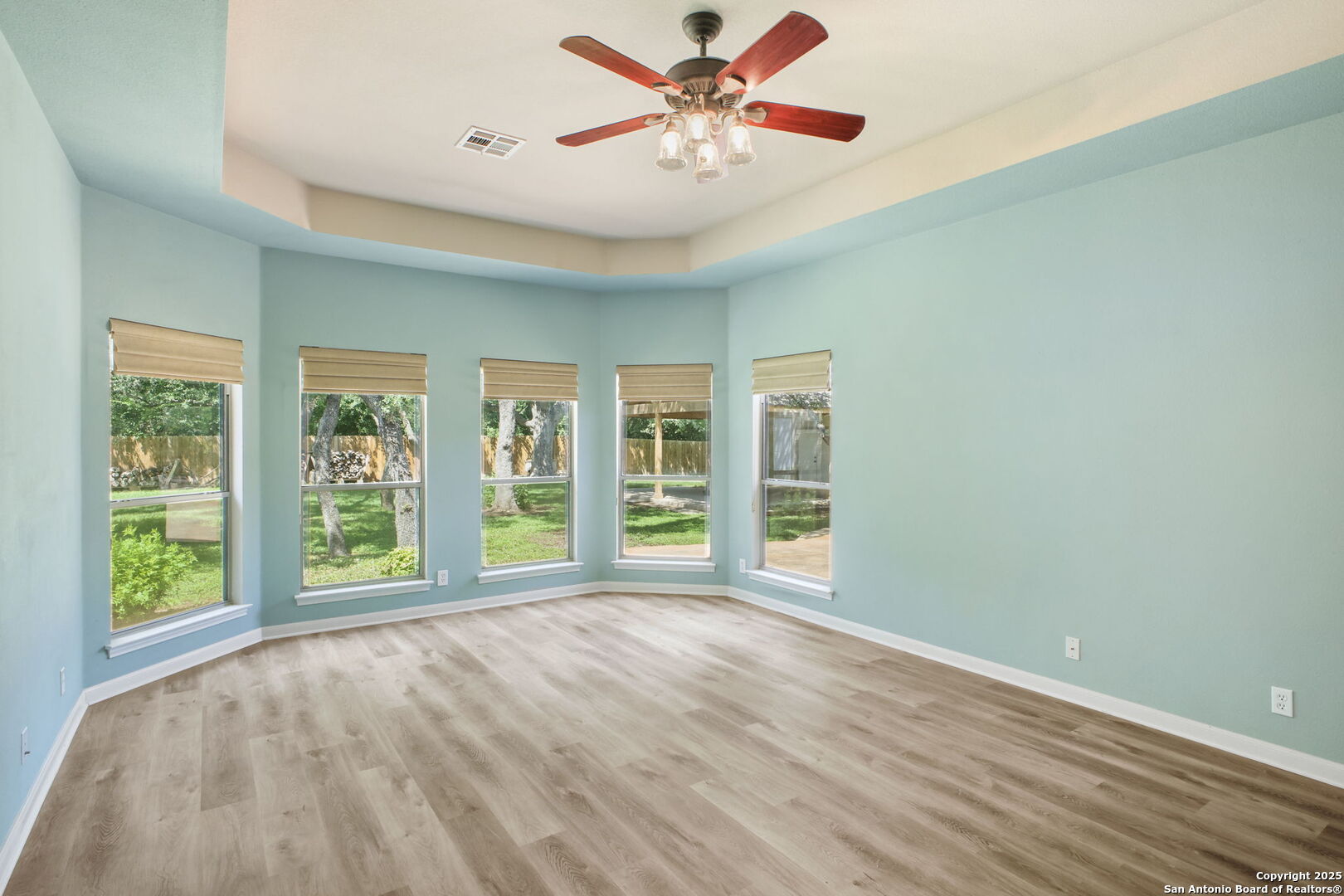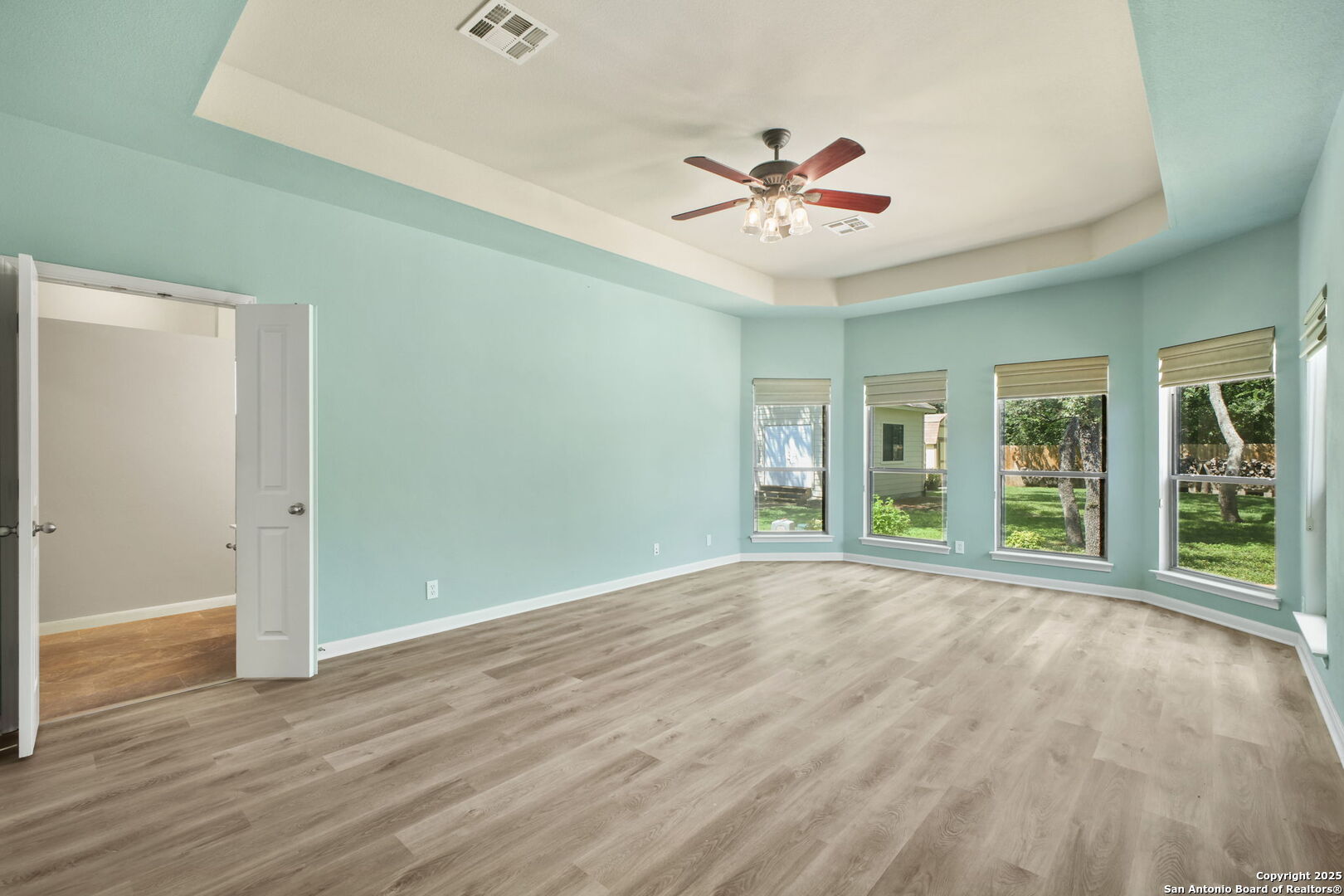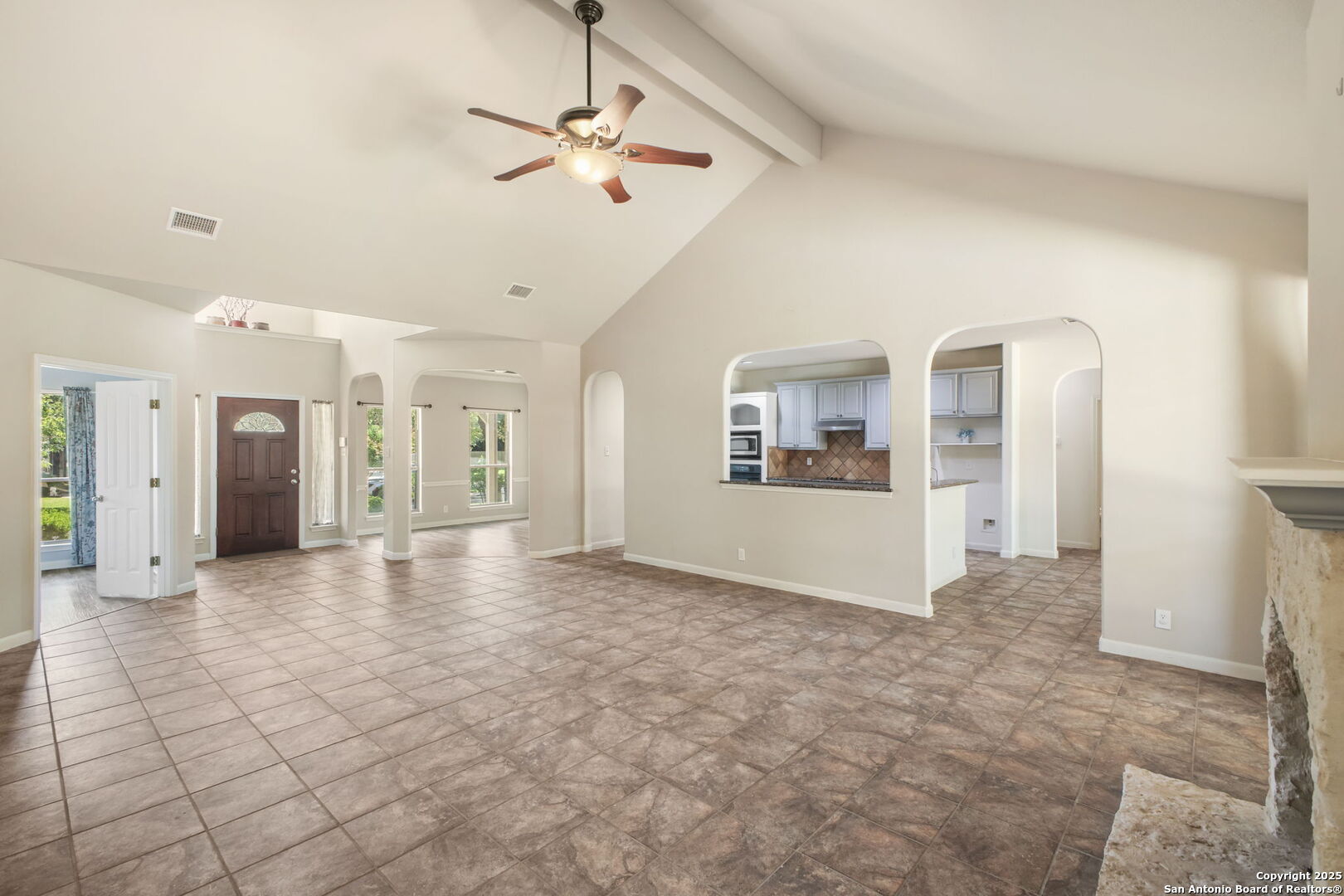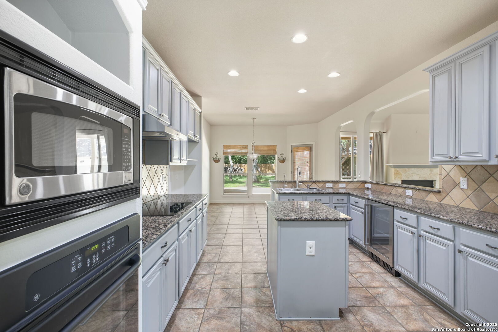 Welcome to your private oasis! Situated on a spacious 0.60-acre corner lot in a gated community, this beautifully upgraded home offers a serene lifestyle surrounded by lush greenery and mature plants including a peach and pomegranate trees. The extended long driveway provides up to 6 parking spots, while inside, the open floor plan shines with natural light, soaring high ceilings, vaulted touches in the main living and master suite, updated laminate flooring, tile, fireplace, soft-close kitchen cabinetry, a new flat stovetop that can be switched to gas and remodeled bathrooms featuring walk-in showers. The fourth bedroom with closet can be used as flex room/office! Comfort is enhanced with two smart thermostats-one controlling half of the home and the other managing the opposite side-along with a new HVAC system (2024), new water heater (2025), and recent roof updates (2020 main home, 2025 garage). Outdoors, you'll enjoy a custom-built pool, a newly added half bath dedicated to poolside use, a newly constructed air-conditioned studio perfect for work or fitness, and a detached back garage with water access that could easily be converted into a pool house. With Medina Lake just minutes away and schools nearby, this home blends modern upgrades with resort-style living-perfect for both relaxation and entertaining.