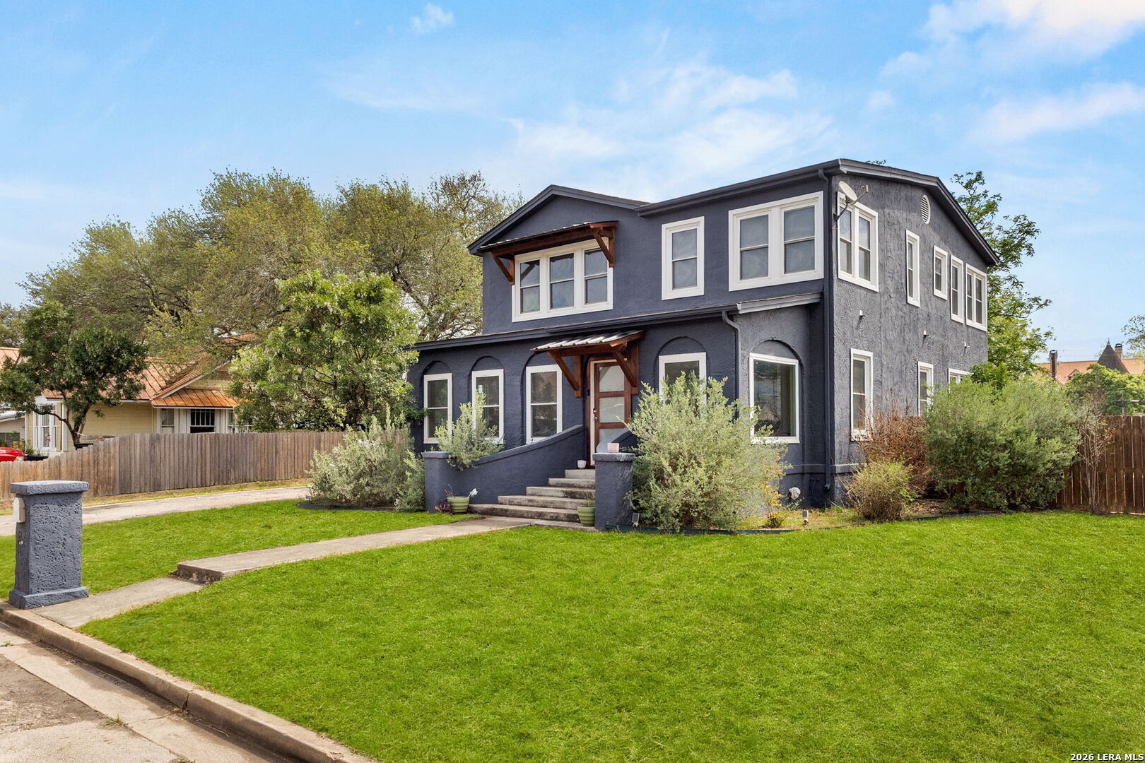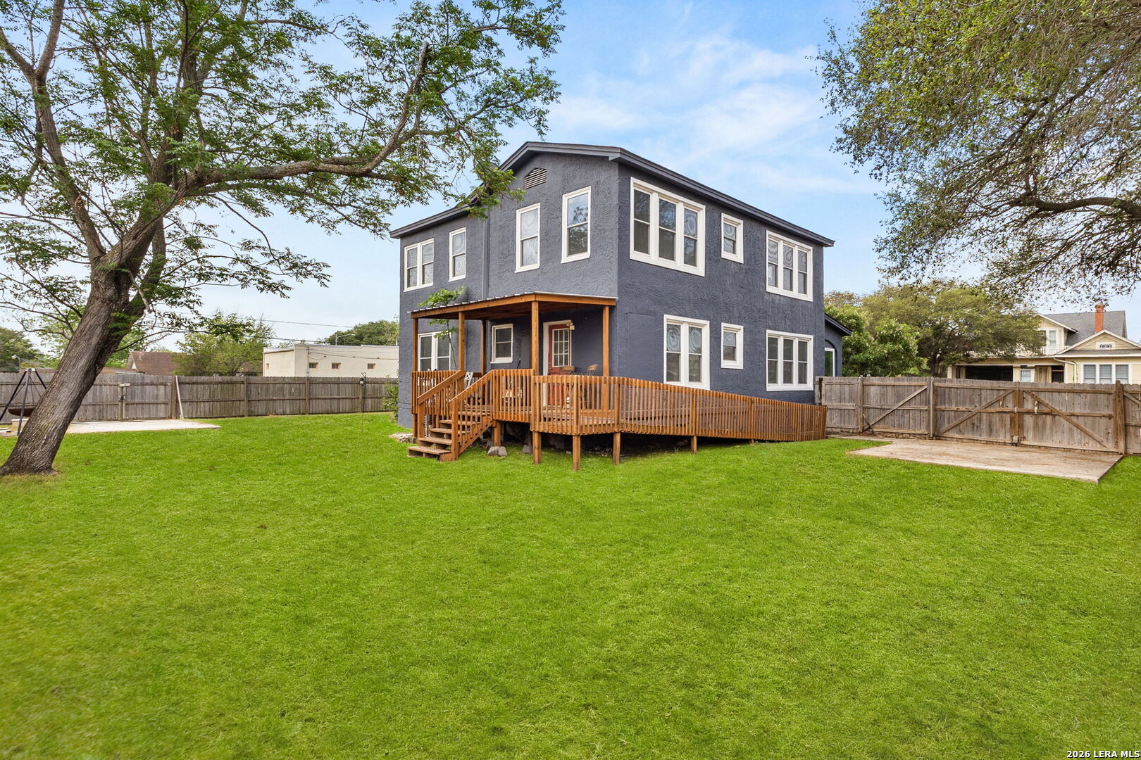 Discover a truly versatile and character-filled home just minutes from downtown Seguin! Situated on a spacious corner lot, this unique property offers 5 bedrooms-or the flexibility to use the downstairs bedroom as a home office, second living area, or guest space to fit your needs. A standout feature is the large enclosed front porch, providing the perfect space for relaxing, entertaining, or creating a bright sunroom-style retreat. The home boasts high ceilings and vibrant, festive paint colors that bring personality to each bedroom, along with charming penny round tile in the bathrooms. The kitchen includes a gas range and in-kitchen laundry for added convenience. Step outside to enjoy the newly built deck and accessibility ramp at the back of the home, perfect for easy entry. The fully fenced backyard offers privacy, while the property's standout feature is its exceptional parking flexibility-complete with a drive-through gate at the main driveway and an additional side street gate, making it easy to store a boat, trailer, or multiple vehicles. If you're looking for a home that offers space, flexibility, and unique charm in a convenient location, this one is a must-see!
