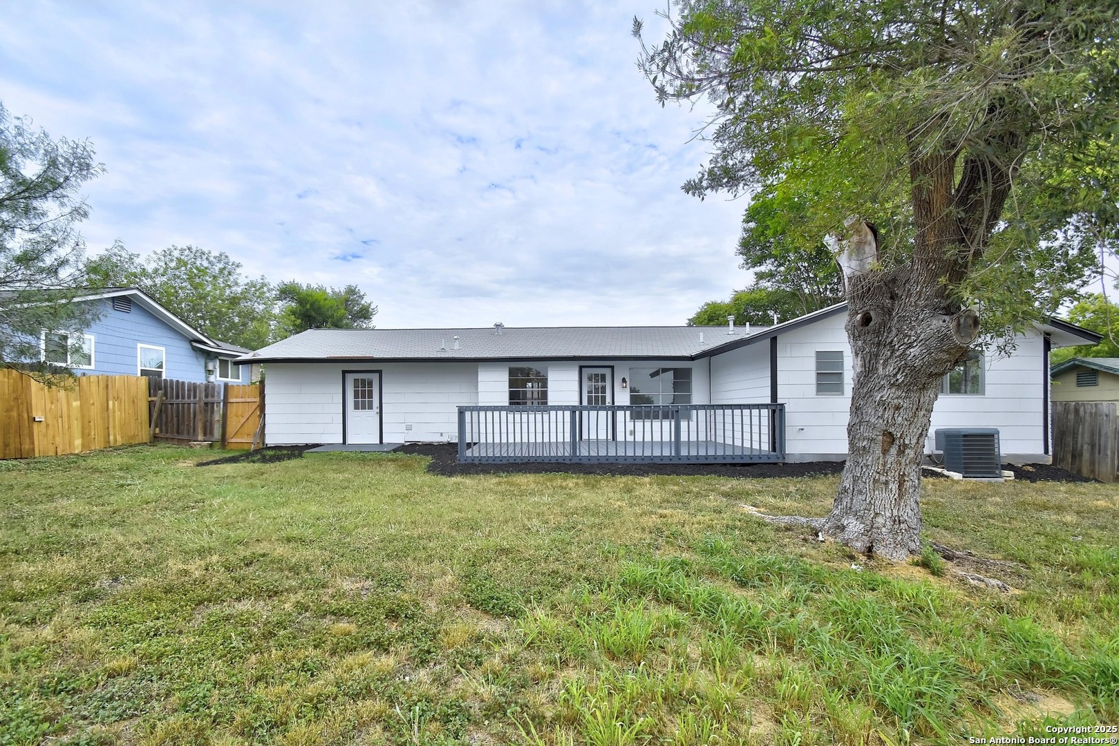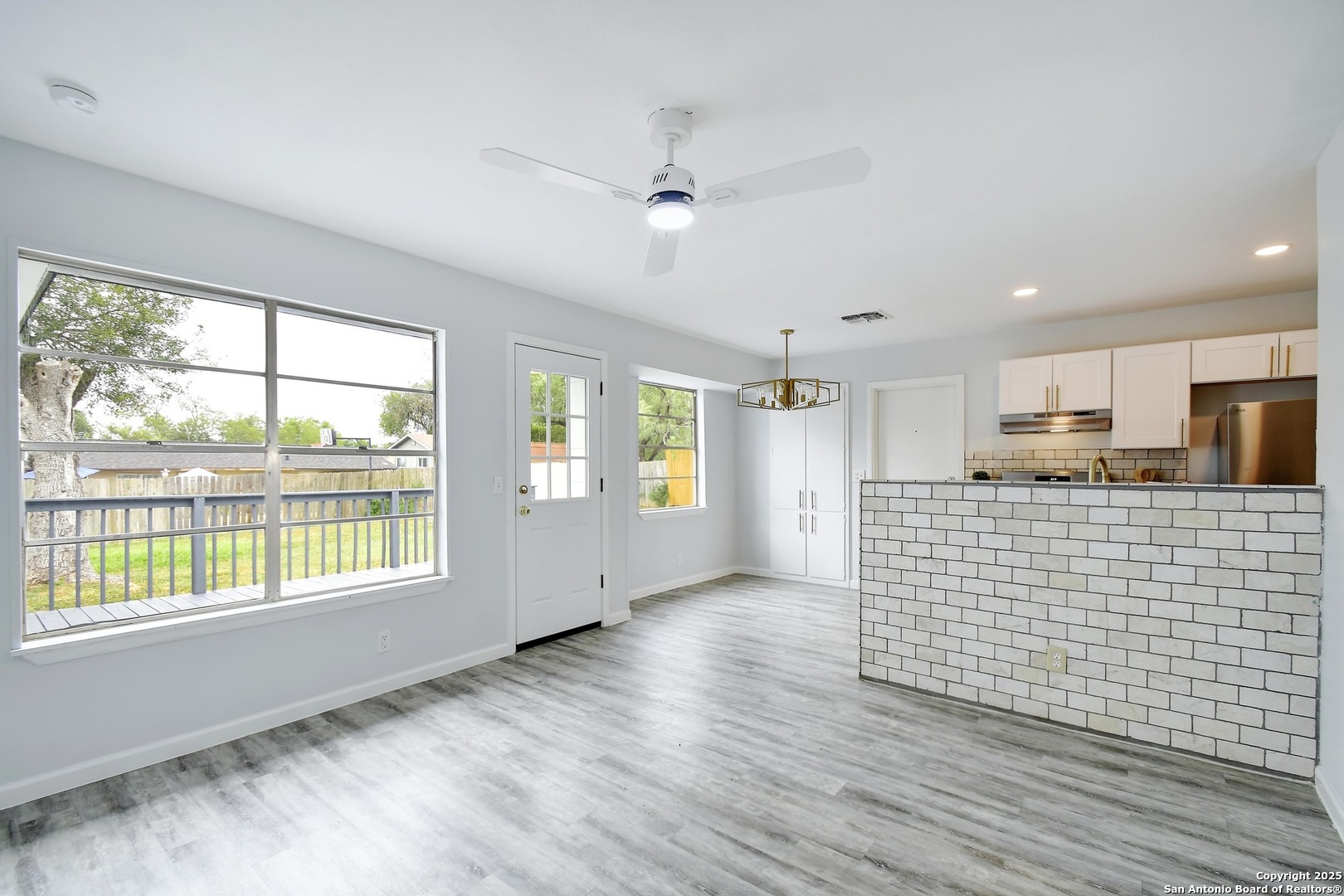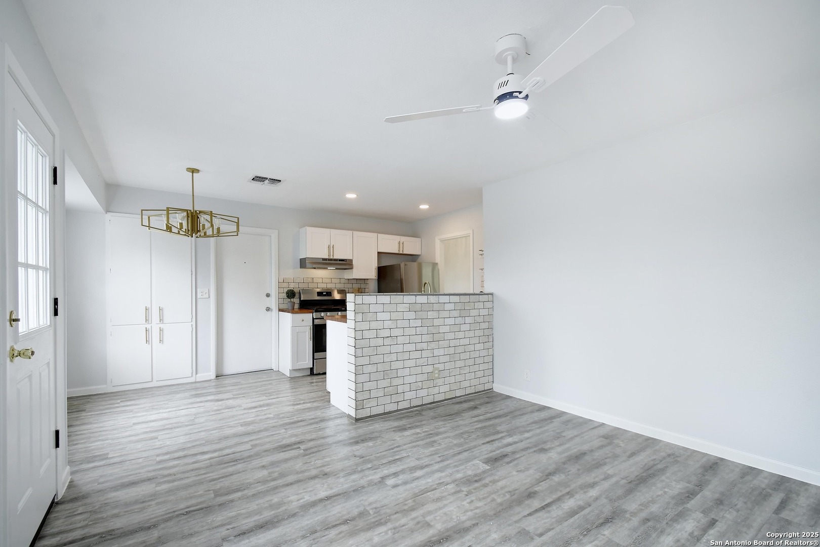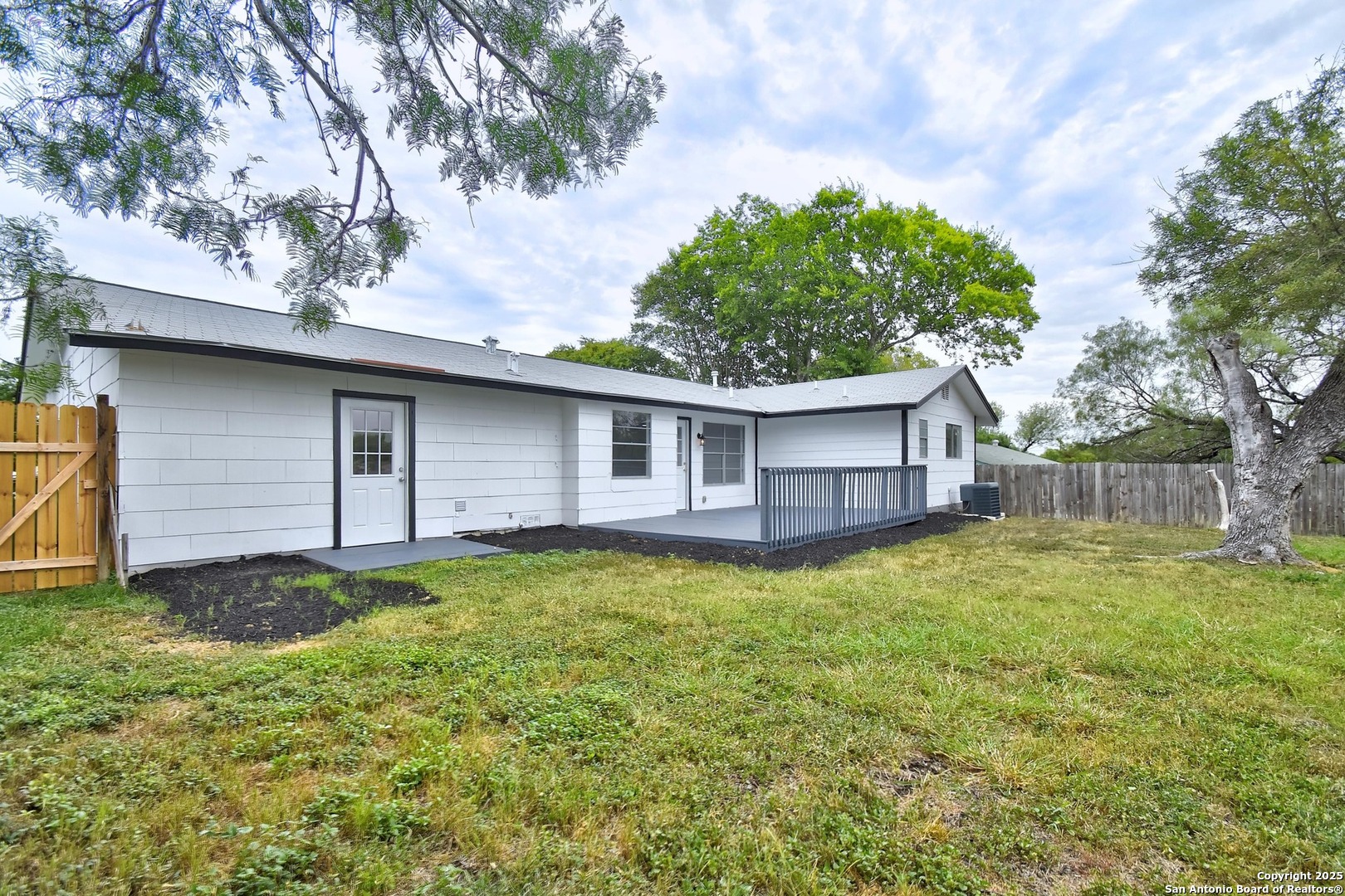 This beautifully designed one-story home offers the perfect blend of modern comfort and timeless charm. With 3 bedrooms, 2 bathrooms, and thoughtful upgrades to include new interior/exterior paint, new ceiling fans, new light fixtures throughout, this home is move-in ready and made for everyday living and entertaining. From the moment you arrive, the crisp white brick exterior and inviting front porch sets the tone for what's inside. Step through the front door to discover a spacious flex room that's ready to adapt to your needs-whether it's a formal living space, a home office, or a quiet reading area. The open-concept layout flows effortlessly from the Family room to the kitchen and dining area; all bathed in natural light. The living space features large windows that bring the outdoors in. The kitchen is a standout with butcher block countertops, a gas stove, refrigerator, stainless steel appliances, and a beautiful backsplash for the Chef of the home. Plenty of space for hosting, cooking, or simply enjoying your morning coffee. Tucked off the kitchen is a smartly placed laundry room and utility room. The primary suite is a true retreat with an en-suite bathroom. Enjoy sunny afternoons on the oversized patio deck complete with a privacy fence, ideal for BBQs, pets, and playtime. If you're looking for comfort, flexibility, and classic charm with a modern touch, - 9106 Port Hudson is waiting for you. Easy access to major highways, Hwy 90/Loop 410/ Hwy 151 and nearby Lackland AFB, makes this home a must see!
