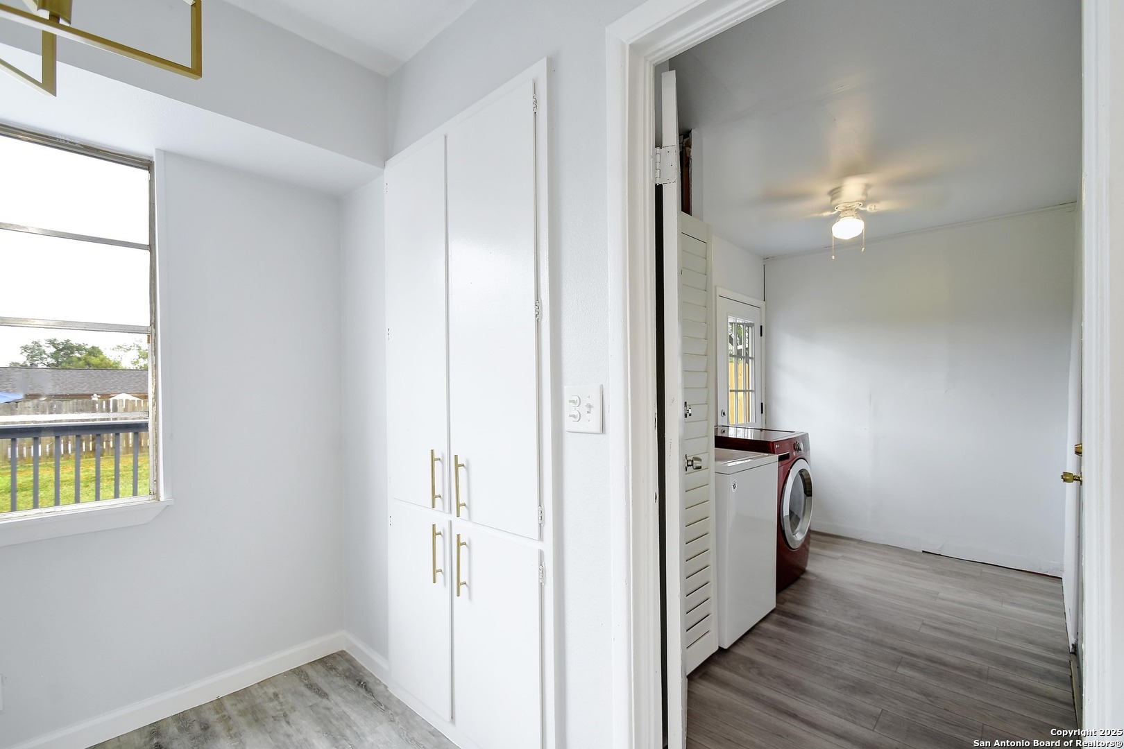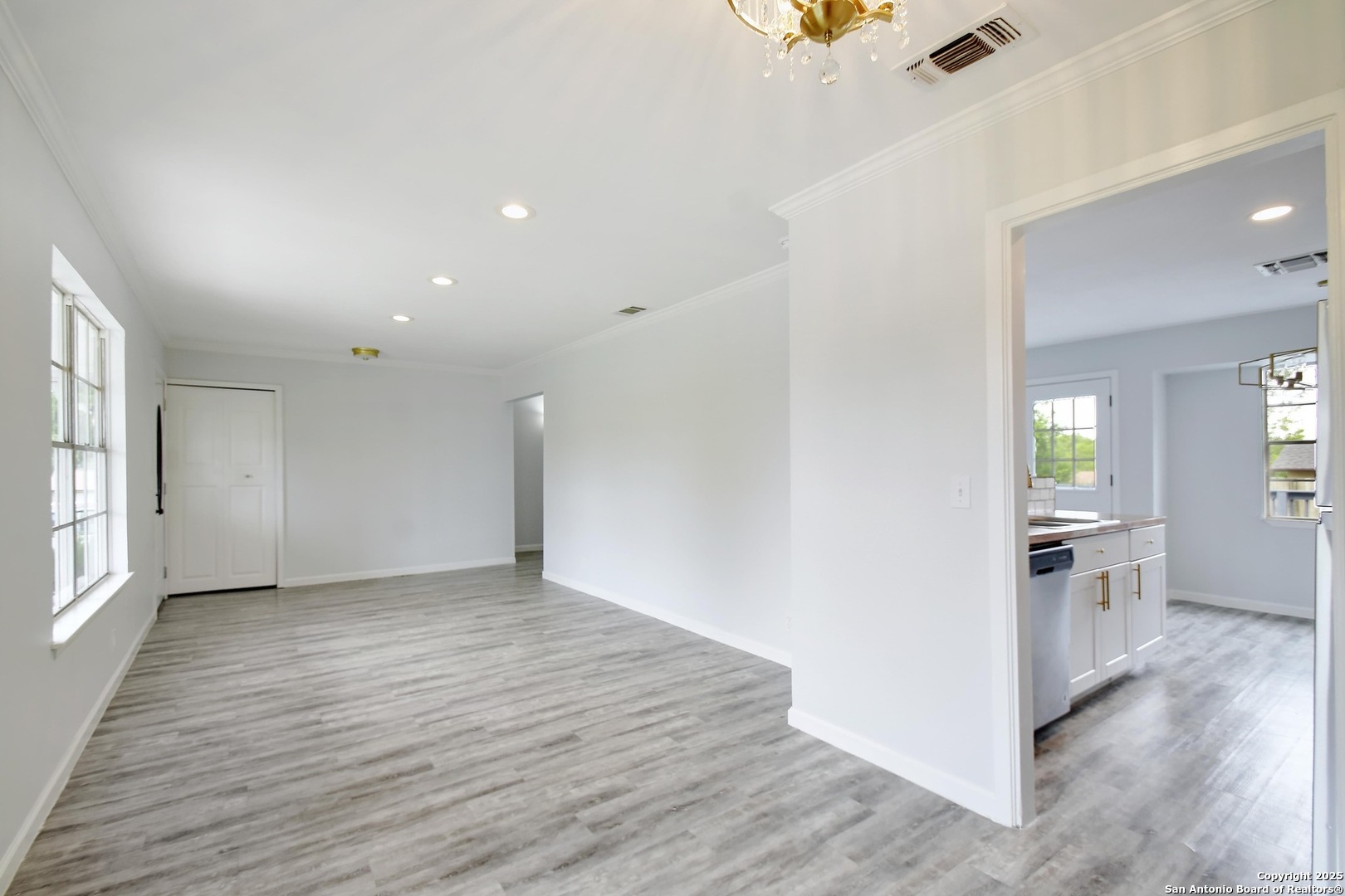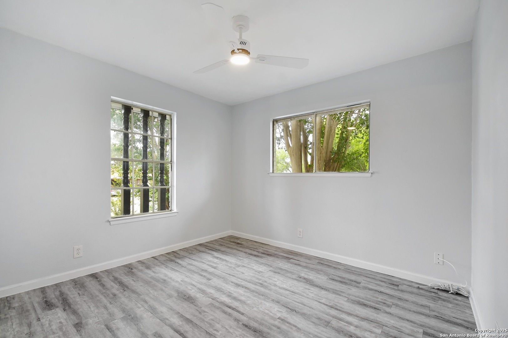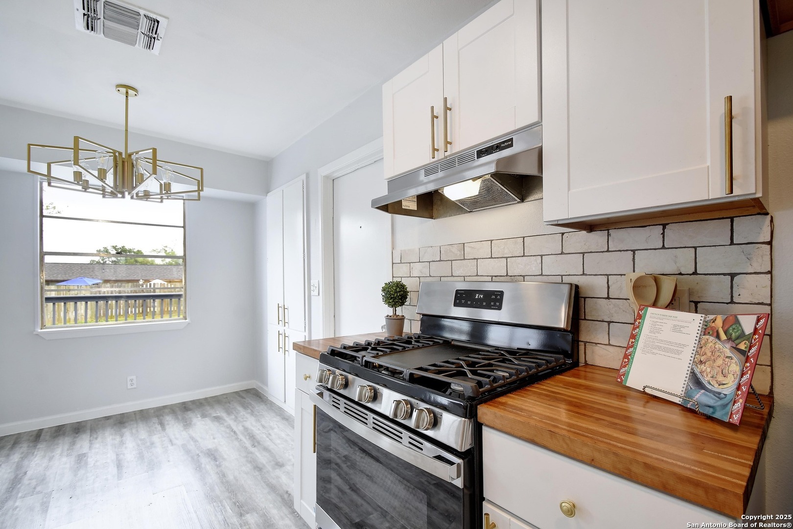 This beautifully designed one-story home offers the perfect blend of modern comfort and timeless charm. With 3 bedrooms, 2 bathrooms, and thoughtful upgrades to include new interior/exterior paint, new ceiling fans, new light fixtures throughout, this home is move-in ready and made for everyday living and entertaining. From the moment you arrive, the crisp white brick exterior and inviting front porch sets the tone for what's inside. Step through the front door to discover a spacious flex room that's ready to adapt to your needs-whether it's a formal living space, a home office, or a quiet reading area. The open-concept layout flows effortlessly from the Family room to the kitchen and dining area; all bathed in natural light. The living space features large windows that bring the outdoors in. The kitchen is a standout with butcher block countertops, a gas stove, refrigerator, stainless steel appliances, and a beautiful backsplash for the Chef of the home. Plenty of space for hosting, cooking, or simply enjoying your morning coffee. Tucked off the kitchen is a smartly placed laundry room and utility room. The primary suite is a true retreat with an en-suite bathroom. Enjoy sunny afternoons on the oversized patio deck complete with a privacy fence, ideal for BBQs, pets, and playtime. If you're looking for comfort, flexibility, and classic charm with a modern touch, - 9106 Port Hudson is waiting for you. Easy access to major highways, Hwy 90/Loop 410/ Hwy 151 and nearby Lackland AFB, makes this home a must see!
