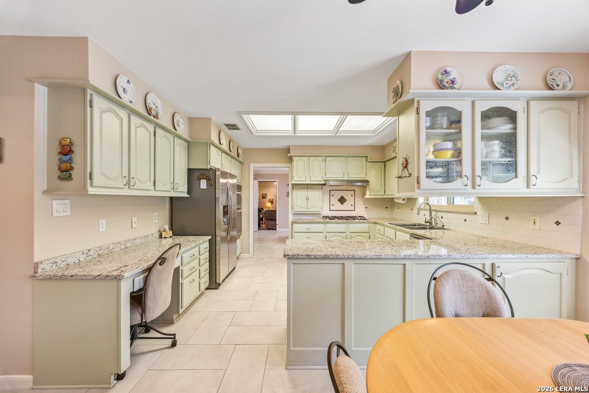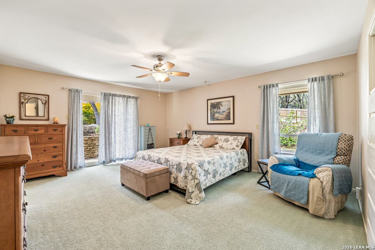 Welcome to Life Beneath the Oaks 9106 Sundew Circle | At the end of a peaceful cul-de-sac, tucked beneath mature oak trees, sits a home where life slows down in all the right ways. A curved private drive leads you through a canopy of trees to a timeless residence with a welcoming porch-an arrival that instantly feels like home. Step inside this 3,076 sqft home and sunlight filters through skylights overhead, wood beams, crown molding, brick fireplace that invites gathering and conversation. Three large bedrooms and two and a half baths. Beautifully updated kitchen features granite countertops, newer stainless appliances, designed for effortless entertaining. Primary suite offers a spa-like retreat with a remodeled bath. Additional baths have been tastefully updated. Step outside and the lifestyle truly unfolds. The backyard becomes your private escape with a sparkling pool surrounded by towering oak trees, peaceful patios, and established garden beds. A charming pool storage shed adds both function and inspiration, currently serving as a creative art studio and offering endless possibilities as a hobby space, office, or quiet retreat. With both an attached two-car garage and a separate two-car garage with workshop space, there is room for hobbies, storage, and creative pursuits on a 48,412 sqft lot. Here in Garden Ridge, luxury means space, privacy, and living among nature while remaining minutes from the conveniences of San Antonio. This is more than a home. It's a lifestyle beneath the oaks.