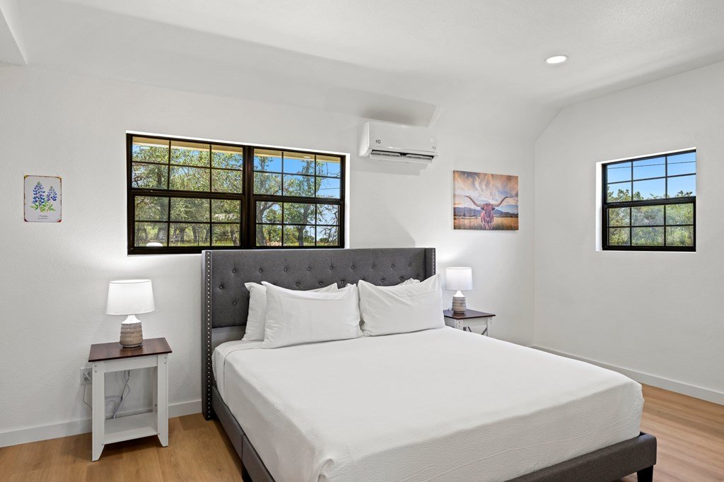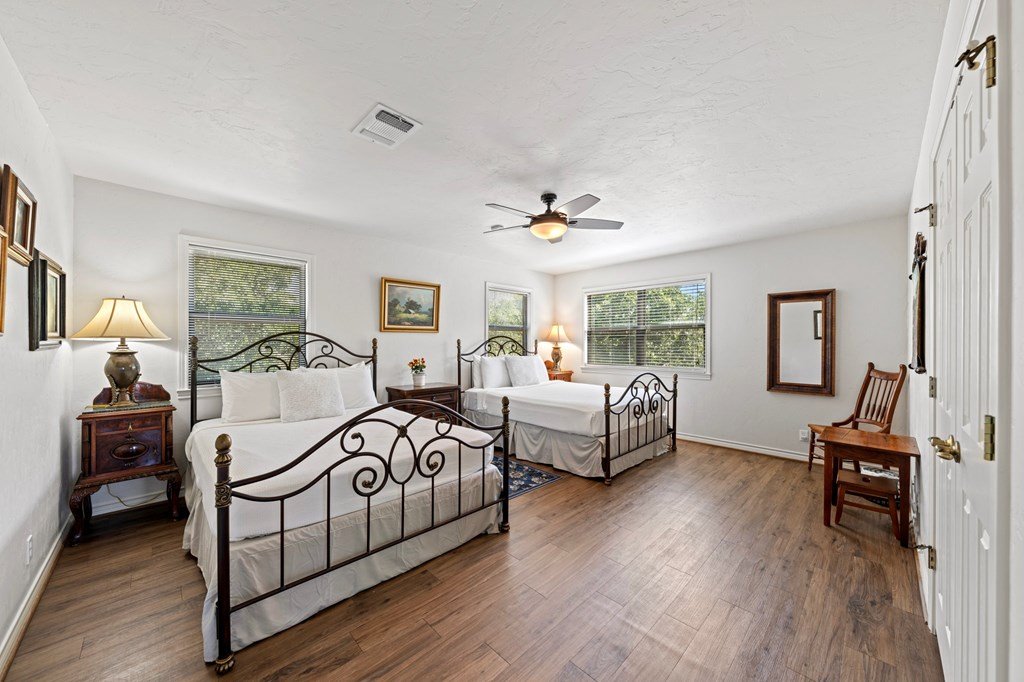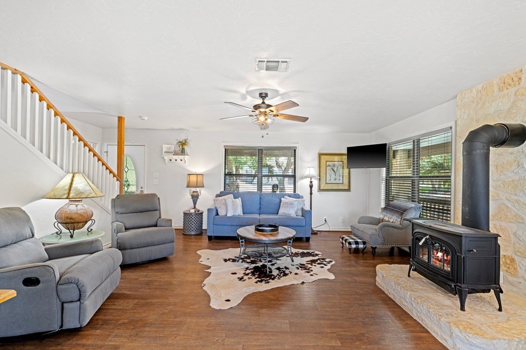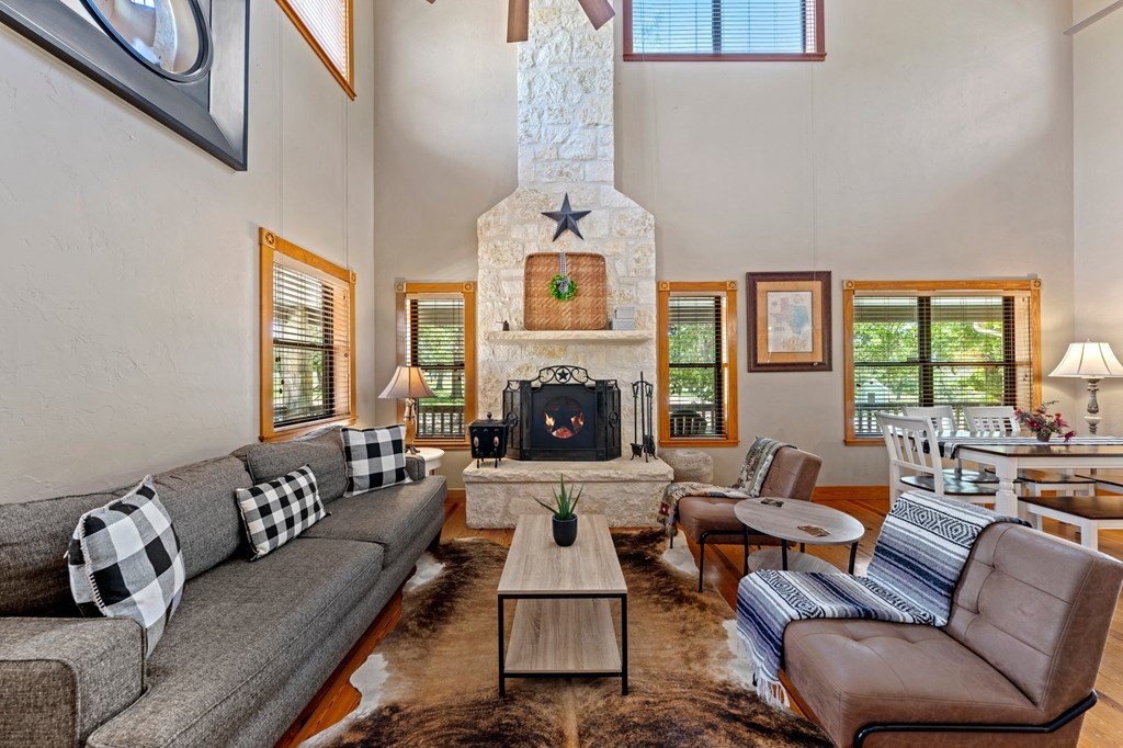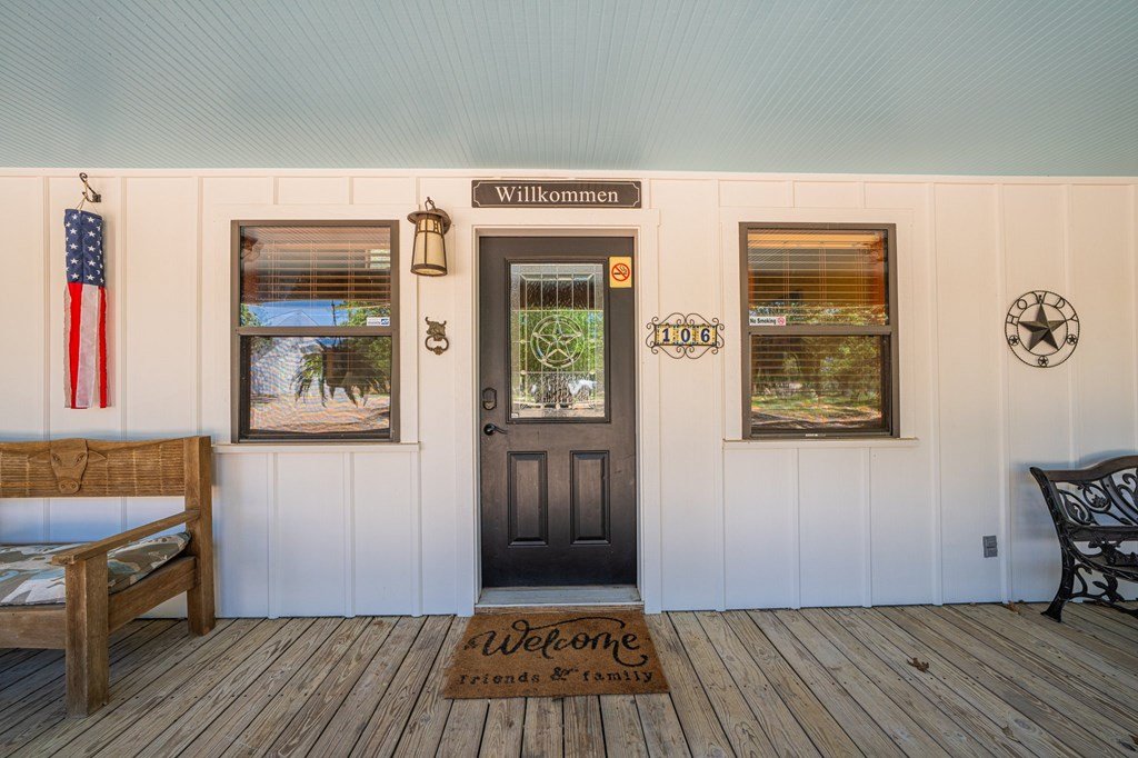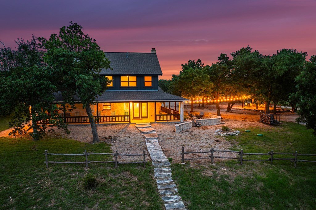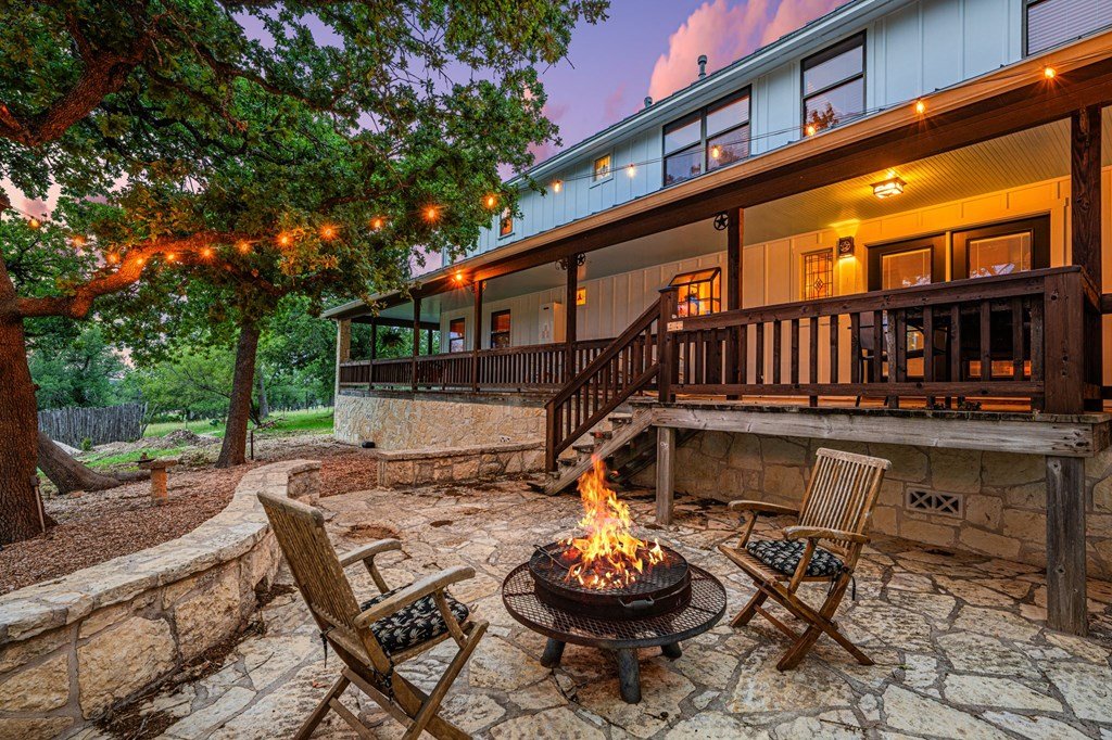 TEXAS RANCH RETREAT: TWO HOMES, TWO SUITES ON 10-ACRES, CREATING ENDLESS POSSIBILITIES! Just 9 miles North of Fredericksburg's Main Street and near Enchanted Rock, this versatile property is perfect for short-term rentals, events, a private retreat or transforming into a private family compound or recreational ranch. The 10-acre setting includes two spacious homes, each with open-concept living, high ceilings, and sleeping for 14 guests. House #1 is a 3BD/3.5BA with a standing seam metal roof on 1 acre. House #2 is a 3BD/2BA with a 2022 composition roof on 0.5 acre. Plus two newly built 1/1 625sf cottages w/separate septic for additional guests or income producing opportunities. Outdoor amenities include wrap-around porches to enjoy the beautiful sunsets & alfresco dining, a gazebo with electricity & lights, stone patio, a large fire pit, fenced dog run, and detached garage with plenty of storage. A 185-ft well produces 15 GPM and includes a water softener. Guest bookings convey, offering immediate income potential. This is a rare opportunity in a prime Hill Country location to own a versatile and income-generating property in one of Texas's most desirable locations! Come build your TX dream!!!