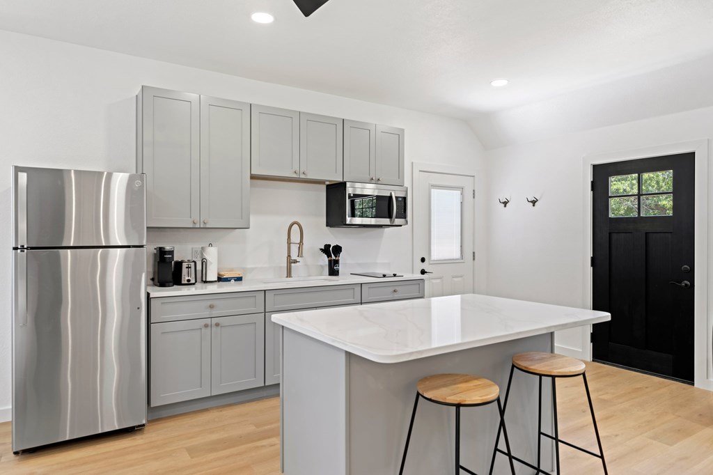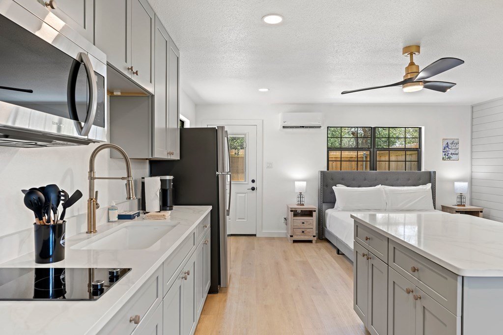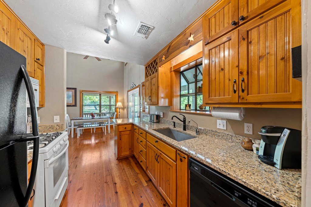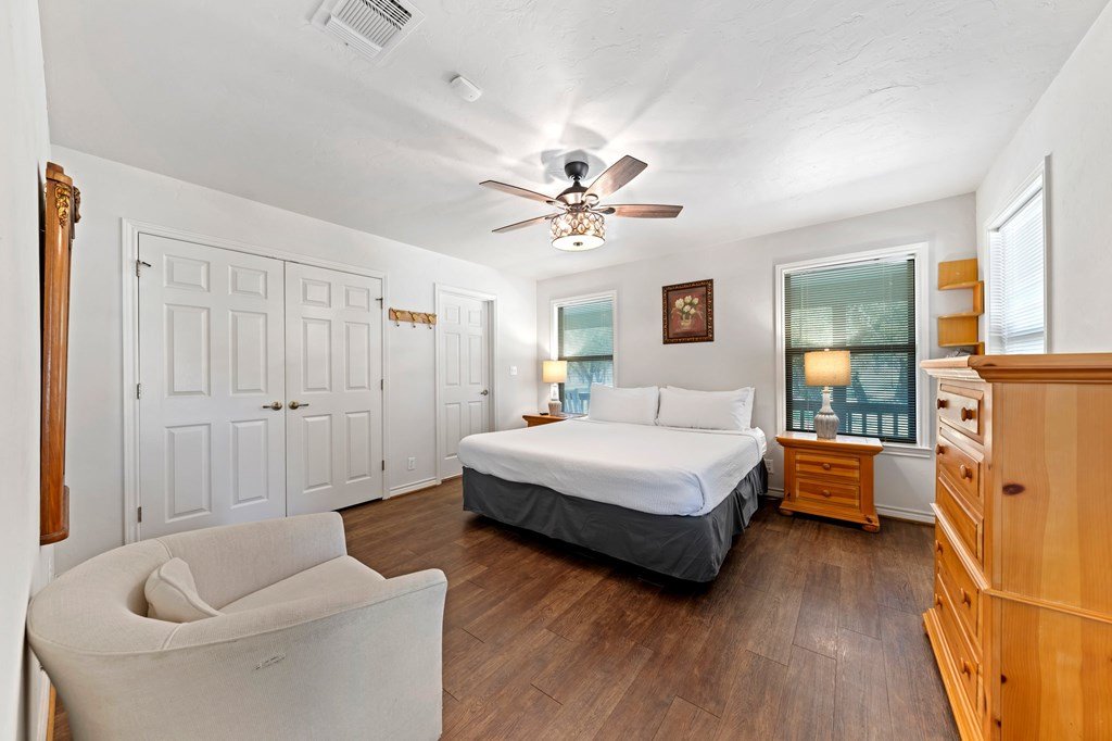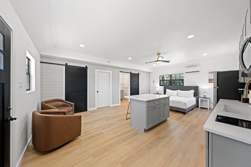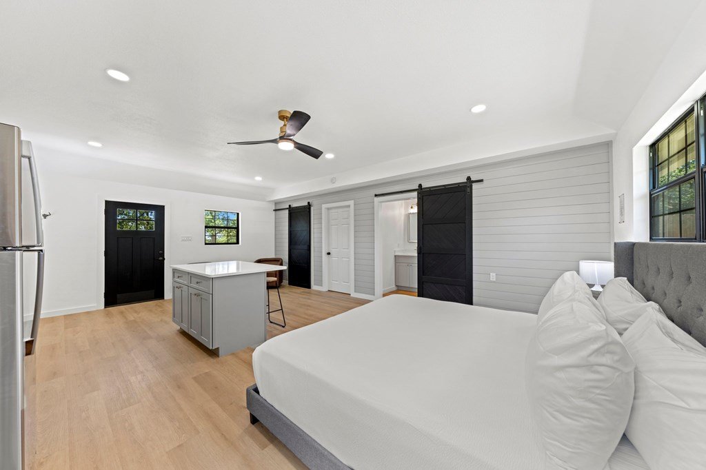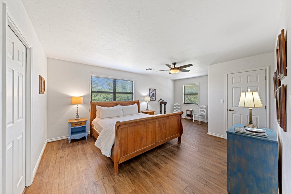 TEXAS RANCH RETREAT: TWO HOMES, TWO SUITES ON 10-ACRES, CREATING ENDLESS POSSIBILITIES! Just 9 miles North of Fredericksburg's Main Street and near Enchanted Rock, this versatile property is perfect for short-term rentals, events, a private retreat or transforming into a private family compound or recreational ranch. The 10-acre setting includes two spacious homes, each with open-concept living, high ceilings, and sleeping for 14 guests. House #1 is a 3BD/3.5BA with a standing seam metal roof on 1 acre. House #2 is a 3BD/2BA with a 2022 composition roof on 0.5 acre. Plus two newly built 1/1 625sf cottages w/separate septic for additional guests or income producing opportunities. Outdoor amenities include wrap-around porches to enjoy the beautiful sunsets & alfresco dining, a gazebo with electricity & lights, stone patio, a large fire pit, fenced dog run, and detached garage with plenty of storage. A 185-ft well produces 15 GPM and includes a water softener. Guest bookings convey, offering immediate income potential. This is a rare opportunity in a prime Hill Country location to own a versatile and income-generating property in one of Texas's most desirable locations! Come build your TX dream!!!