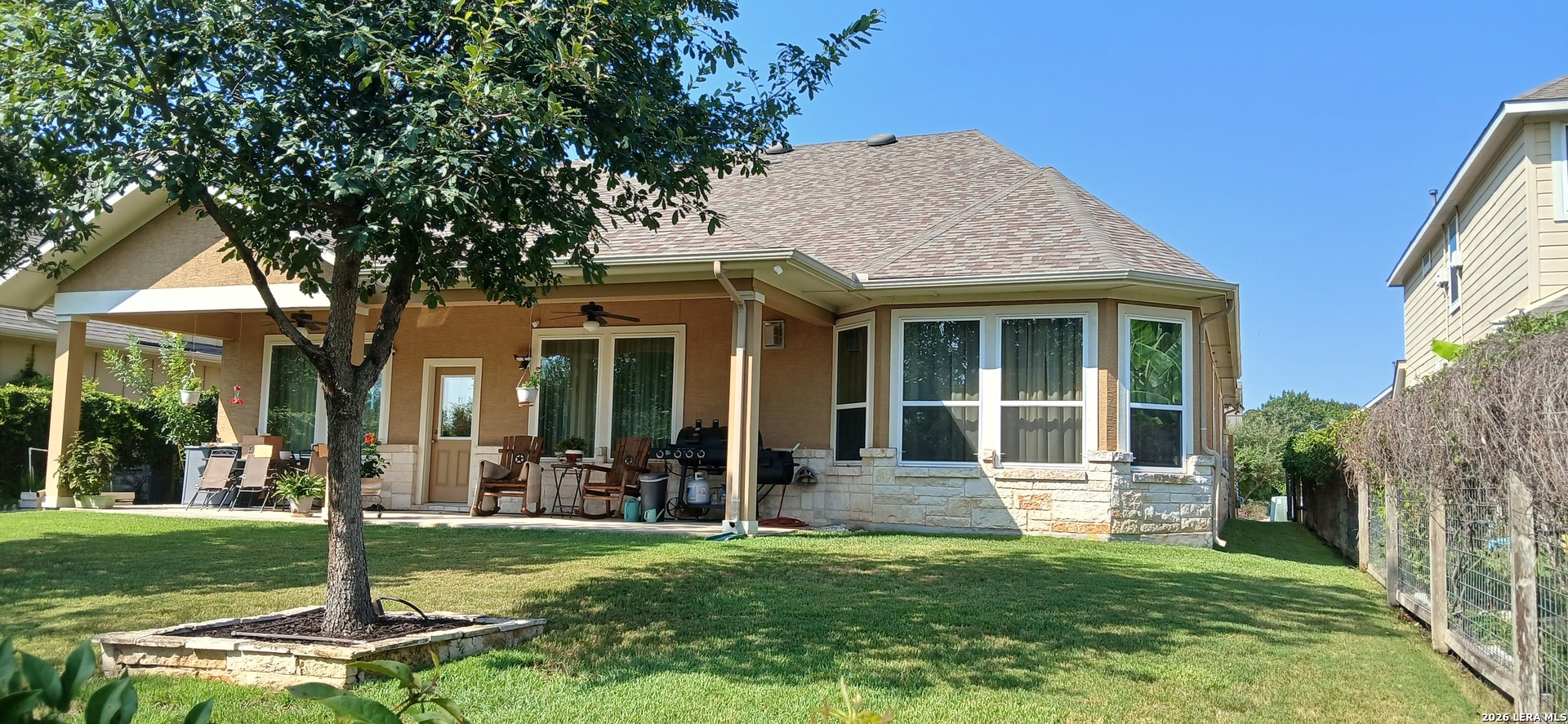 "Escape to your own private oasis! This stunning home backs directly onto a protected, lush greenbelt, offering tranquil, uninterrupted views of nature's beauty. This beautifully maintained single story home offers an open floor plan with three bedrooms, two bathrooms, and a dedicated office. Designed for comfort and function, upon entering the foyer, the office is positioned at the front of the home and features a wall of windows that fill the space with natural light. The living room showcases a cozy fireplace and flows seamlessly into the informal dining area and kitchen, which features an eat in island, generous counter space, and ample cabinetry for everyday living and entertaining. A formal dining room adds elegance with a timeless chandelier and large windows. The spacious primary bedroom includes four large windows for abundant natural light, while the primary bathroom offers dual vanities, a soaking tub, and a standing shower. Large and cozy secondary bedrooms provide comfort and flexibility, and a moderately sized covered patio with a light fixture and fan creates a pleasant outdoor retreat. This a must see.