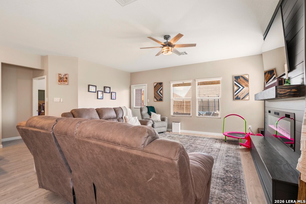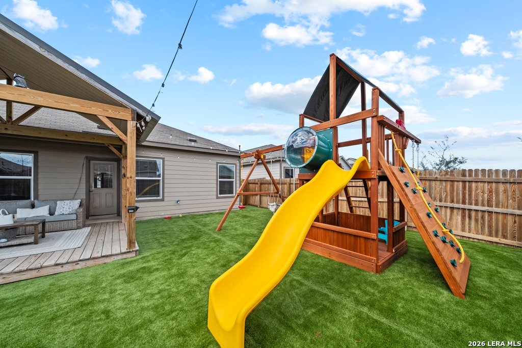 This beautiful home is nestled in the desirable community of Navarro Ranch just outside the city limits and offers access to a fantastic amenity center with something for everyone. With numerous recent improvements, this move-in-ready 3 bedroom, 2 bathroom home with an office combines comfort, style, and functionality. Step inside to discover a bright, open floor plan with fresh finishes and thoughtful upgrades throughout. The spacious kitchen features stainless steel appliances, ample storage, and a new LG island range with built-in air fryer, flowing seamlessly into the dining and living areas-perfect for entertaining or everyday living. Each bedroom offers generous space and comfort, while the primary suite provides a peaceful retreat with a well-appointed en-suite bath. The climate-controlled garage adds additional versatility, ideal for a home gym, workshop, or extra comfort year-round. One of the standout features of this home is the backyard oasis. Enjoy the custom decking and pergola along with low-maintenance, pet-friendly turf, creating the perfect setting for relaxing evenings, weekend barbecues, or entertaining guests. Residents enjoy access to the community's amenity center, complete with resort-style pools, playground, fitness center, outdoor amphitheater, and gathering spaces for year-round fun and relaxation. Whether you're looking for your first home or your forever home, 9109 Honey Mesquite is a must-see. Conveniently located between San Marcos and Seguin and close to local schools, shopping, and dining, this move-in-ready gem won't last long. Schedule your showing today!
