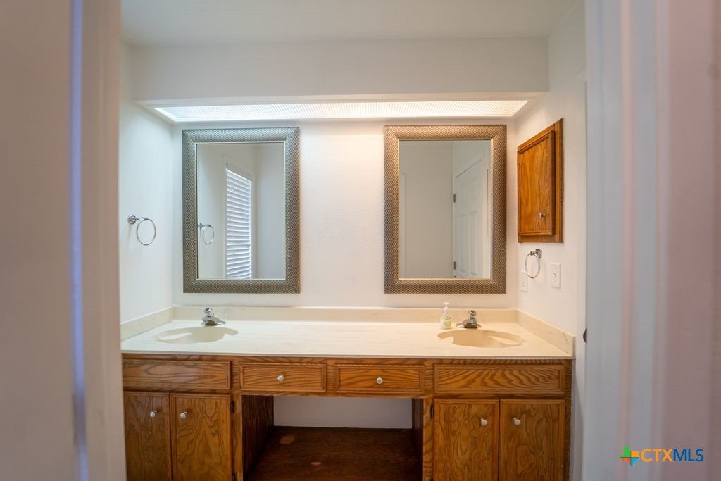 Just in time for Valentine's Day! Take a look and fall in love with the spacious primary suite and its luxurious ensuite bath and massive closet. The beautifully updated bathroom features a double vanity, separate shower, and garden tub. There's much more to love about this 3/2/2 conveniently located in Cimarron. For example, the spacious family room/dining room combo has ceramic tile flooring and a beautiful brick wood-burning fireplace, as well as a small exterior patio. The kitchen has exceptional storage space and includes a lovely coffee/wet bar. The newer Samsung side-by-side stainless refrigerator stays with the house. The downstairs bedrooms offer lots of space for family members or guests, along with a double vanity and tub/shower combo in the guest bathroom. The roof is less than two years old, and a/c is newer as well. And the newer full lawn sprinkler system makes it easy to keep the yard looking great. What's not to love about this gem! Call your Realtor now to see it.