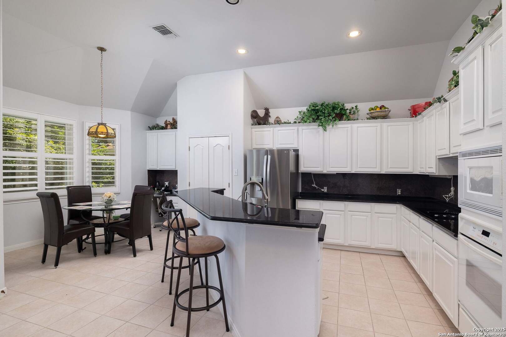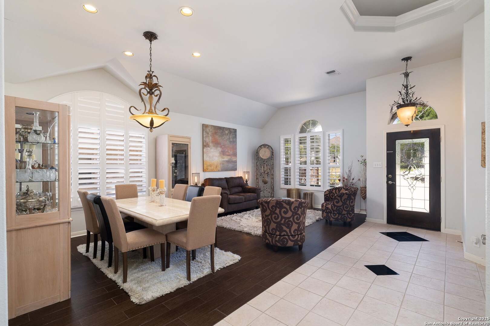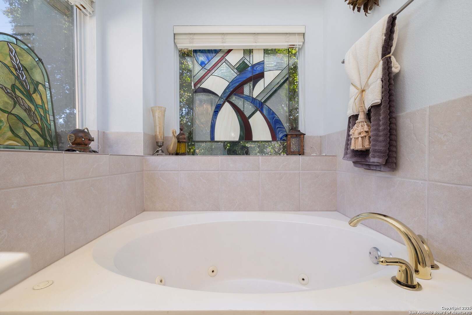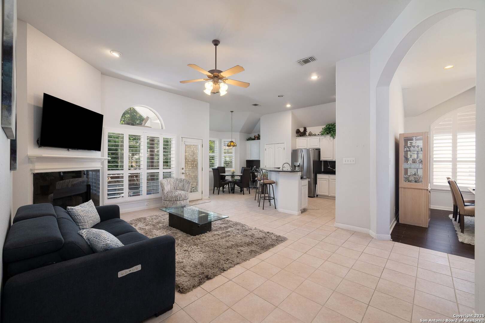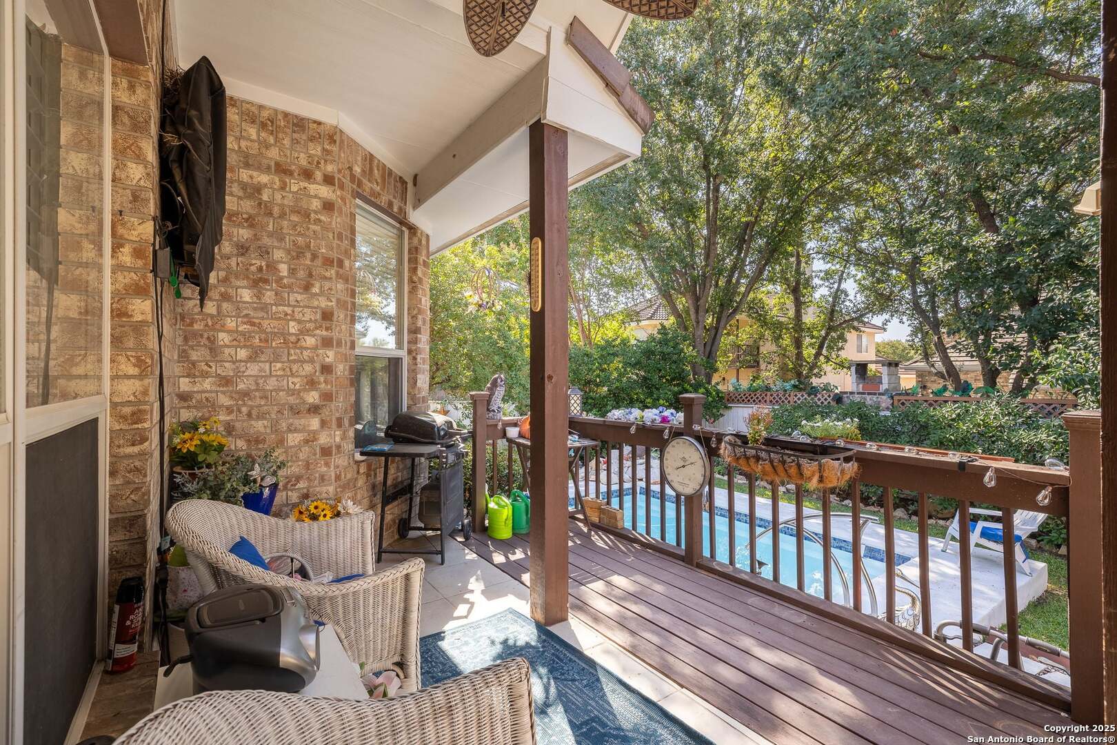 Beautifully maintained one-story home in the gated Meadows at Sonterra offering a flexible floor plan, high ceilings, and abundant natural light. Features include a granite kitchen, granite-accented fireplace, and a private owner's suite with a garden tub, separate shower, double vanity, and walk-in closet. Enjoy a serene and private backyard with an infinity-style, spa-inspired pool, covered patio, mature trees, and low-maintenance landscaping. Zoned to top-rated NEISD schools and minutes from shopping, dining, medical centers, Loop 1604, and Hwy 281. A rare Stone Oak opportunity, priced to attract serious buyers.
