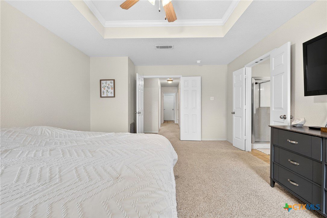 This lovely home is located in a peaceful neighborhood that offers privacy and tranquility, with no HOA and no neighbors directly behind, and plenty of space for a growing family or those who love to entertain. As you step inside, you are greeted with a nice, formal living room, or office, and dining room, creating an elegant and inviting ambiance that works for you. The family room boasts a cozy corner fireplace, providing a warm and comfortable space to gather with family and friends. The eat-in kitchen features plenty of cabinets for storage and counter space for meal preparation. The breakfast area is flooded with natural light, making it a perfect spot for enjoying your morning coffee or casual meals. The master suite is a private retreat with a tray ceiling and crown accent, adding a touch of sophistication. The en-suite bathroom features a soaking tub, separate shower, dual sinks, and a walk-in closet. Relaxing on the large patio, perfect for outdoor entertaining or simply lounging. Just a short distance away from schools, parks, shopping centers, Starbucks, and the lake.