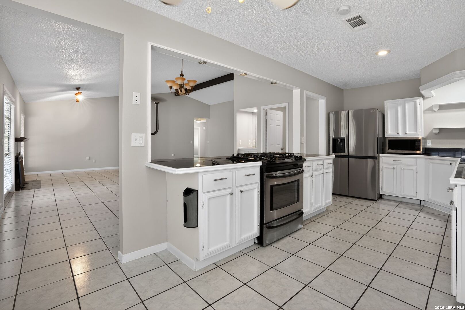 Welcome to this beautifully maintained single-story gem in the heart of the established New Territories community. Offering 3 spacious bedrooms and 2 full bathrooms, this 1,692 sq. ft. home features a bright, open-concept floor plan perfect for modern living. The inviting living room boasts soaring vaulted ceilings and a cozy brick fireplace, flowing seamlessly into a large island kitchen equipped with stainless steel appliances and a sunny breakfast nook. Retreat to the private primary suite featuring twin walk-in closets and a full ensuite bath. A standout feature is the unique full sunroom, providing the perfect space for year-round entertaining or a peaceful home office. Enjoy a low-maintenance lifestyle with a secure fenced backyard and an attached 2-car garage. Residents enjoy fantastic amenities including a neighborhood pool, tennis courts, and walking trails. Located in the highly-rated Northside ISD with easy access to Loop 1604 and Culebra Road shopping. This pristine home is ready for you!