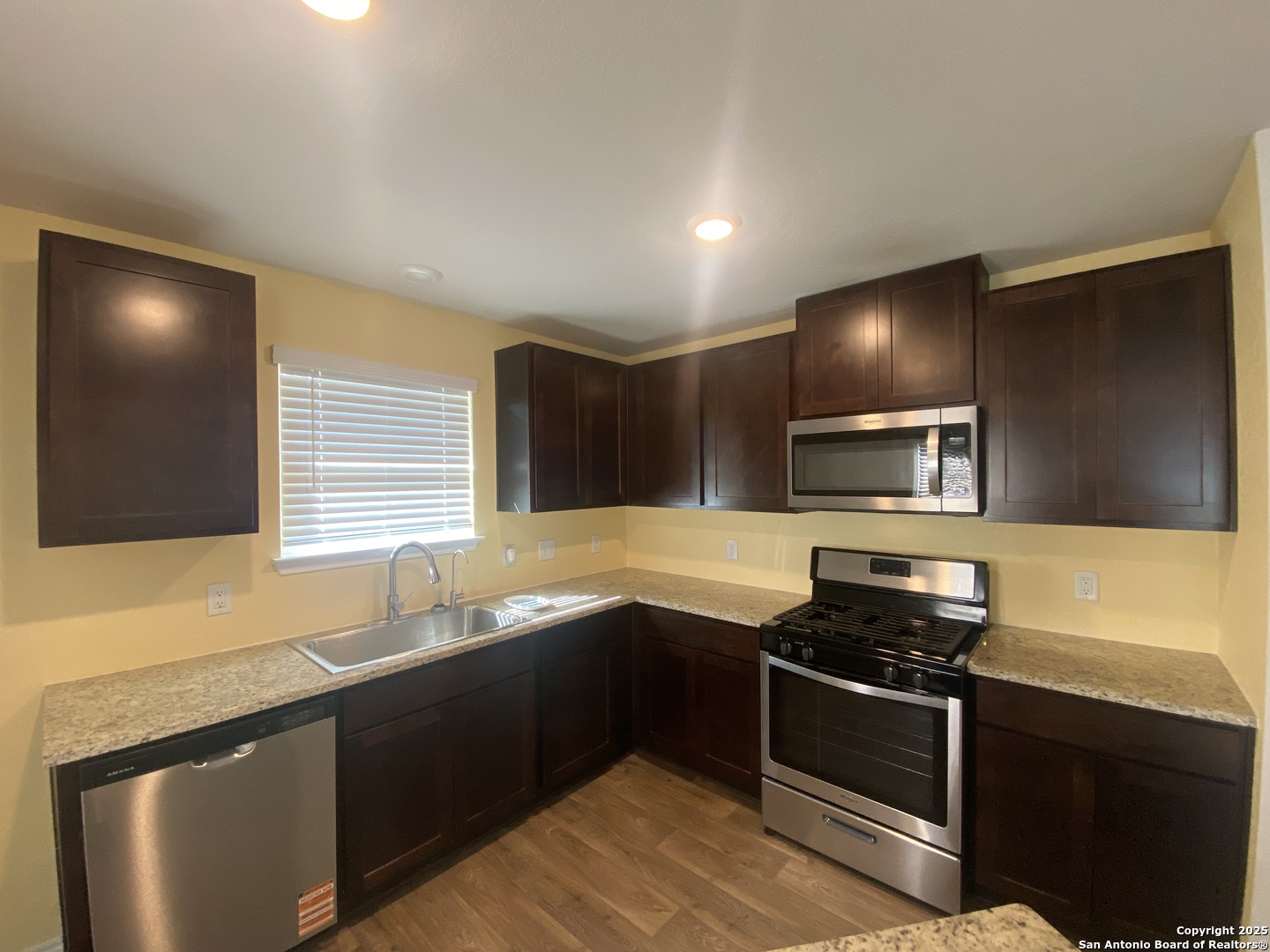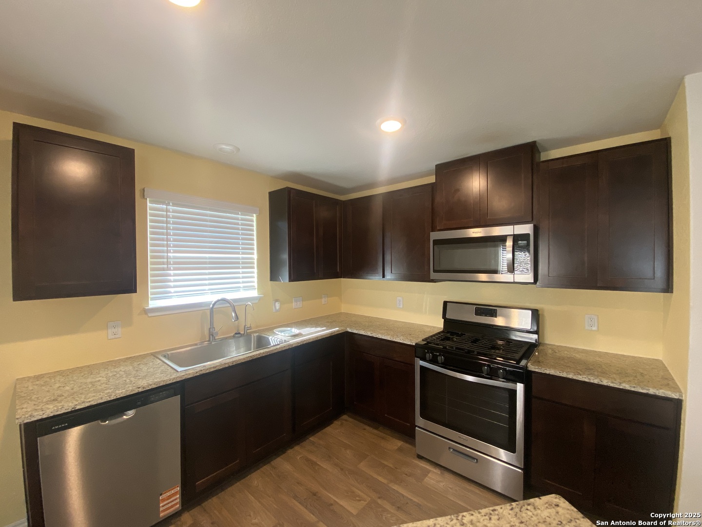 Beautifully maintained home in Redbird Ranch! Conveniently located near Highway 211, this cozy single-story features granite countertops, stainless steel appliances, and a spacious island kitchen with gas cooking. The open living area offers recessed lighting and luxury vinyl flooring, with comfortable carpet in the bedrooms. The primary suite includes a walk-in closet and a granite vanity bath. Enjoy a large fenced yard with fruit trees, a storage shed, and a sprinkler system. Access to community pools, parks, and recreation areas. Priced to rent quickly this one won't last! Community Amenities: - Two standard swimming pools - One children's pool and one lap pool - Tennis and basketball courts - Two parks with modern jungle gyms and slides - Walking and biking trails throughout the neighborhood