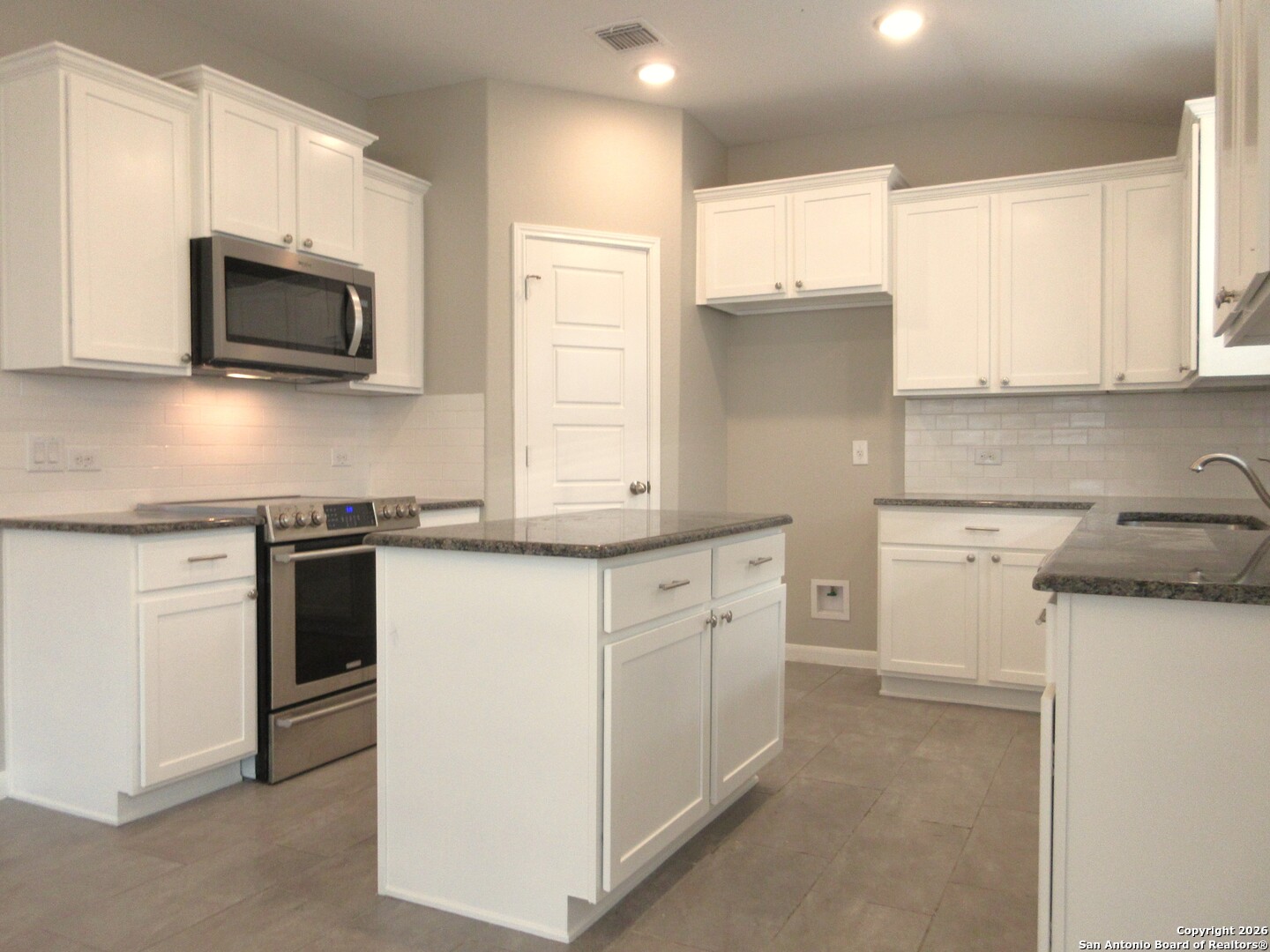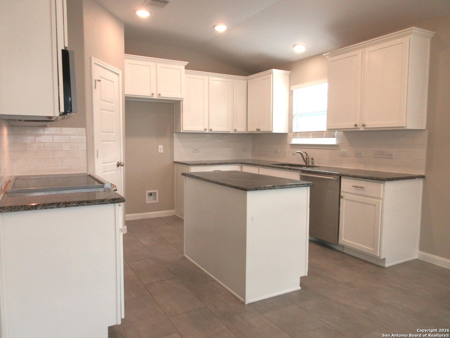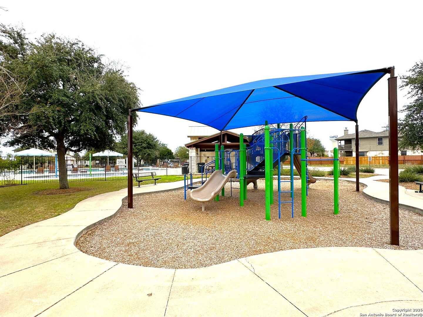 Spacious 4 bedrooms plus an office. Island kitchen offering stainless appliances, granite counters, and tile backsplash. High ceilings. Open floor plan. Fresh paint inside and out. New carpet in the bedrooms. 2 inch blinds are included. Covered patio. Walk to the community pool and park.