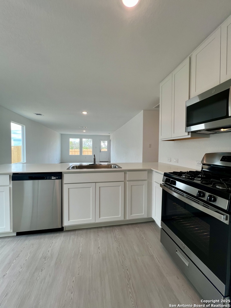 Discover effortless single-story living - an open-concept modern new home spanning 1,575 sqft with 4 bedrooms, 2 bathrooms, and a 2-car garage. Step inside to find a seamless flow between the kitchen, living, and dining areas-perfect for gatherings or multitasking. Three secondary bedrooms are thoughtfully tucked to the side, while the owner's suite enjoys a private rear-corner location complete with a spa-inspired bathroom and walk-in closet. Nestled within Navarro Ranch, this home benefits from the charm of a master-planned community in Seguin, TX. You'll enjoy access to serene walking trails, parks, a clubhouse, fitness center, and playground. Located just a short drive from New Braunfels and the historic Gruene District, the neighborhood blends peaceful living with easy access to shopping, dining, and Navarro ISD's well-regarded schools. * Home will come with blinds, fridge, and grass *