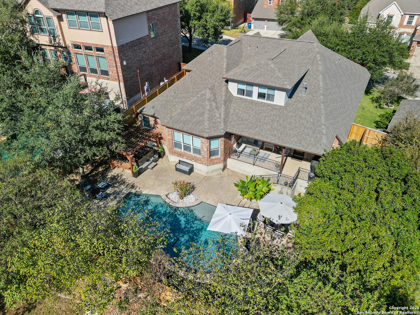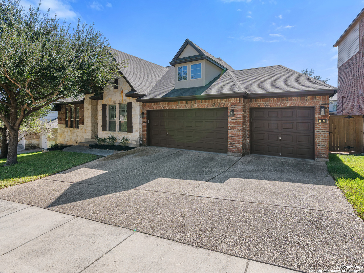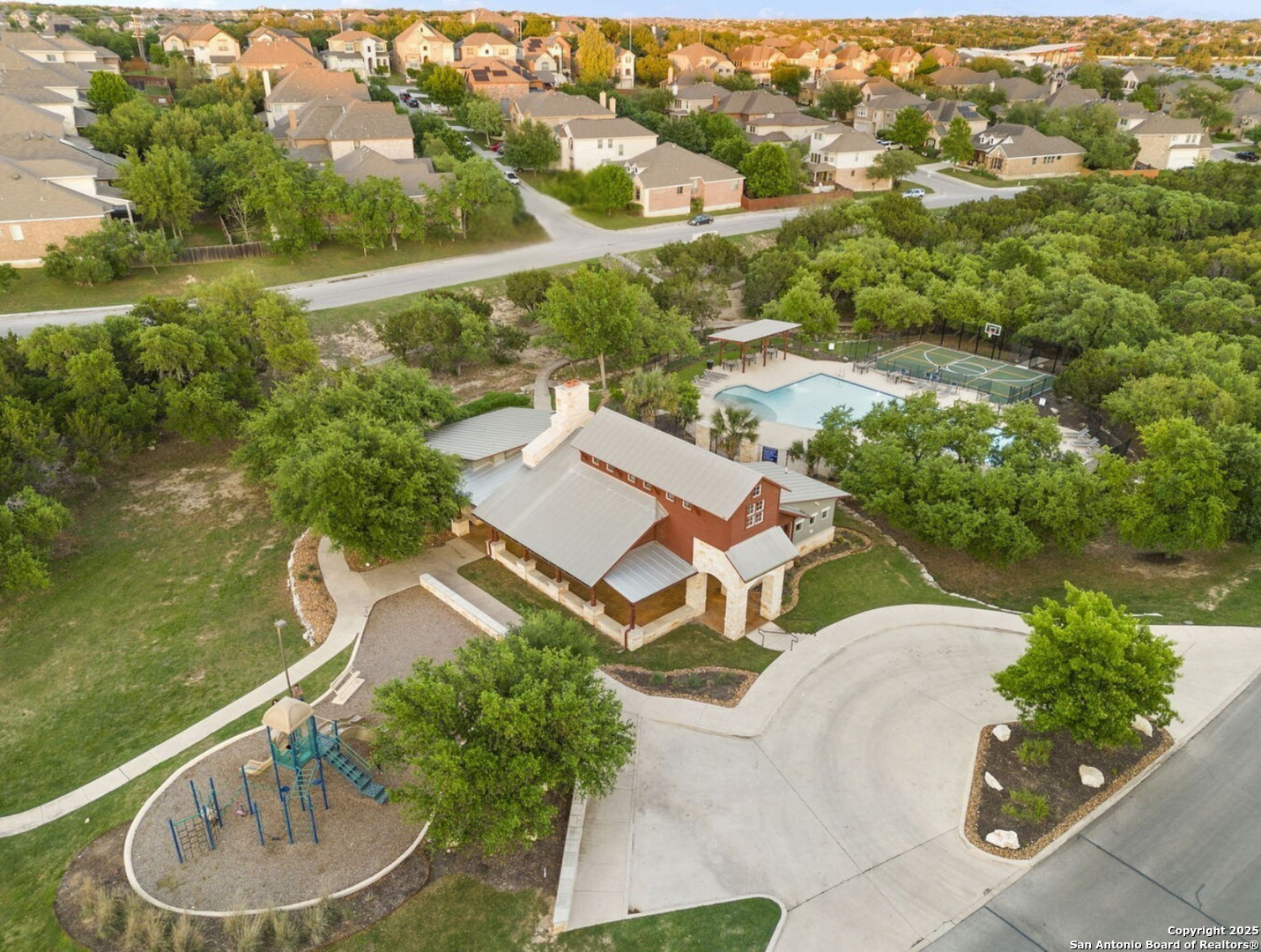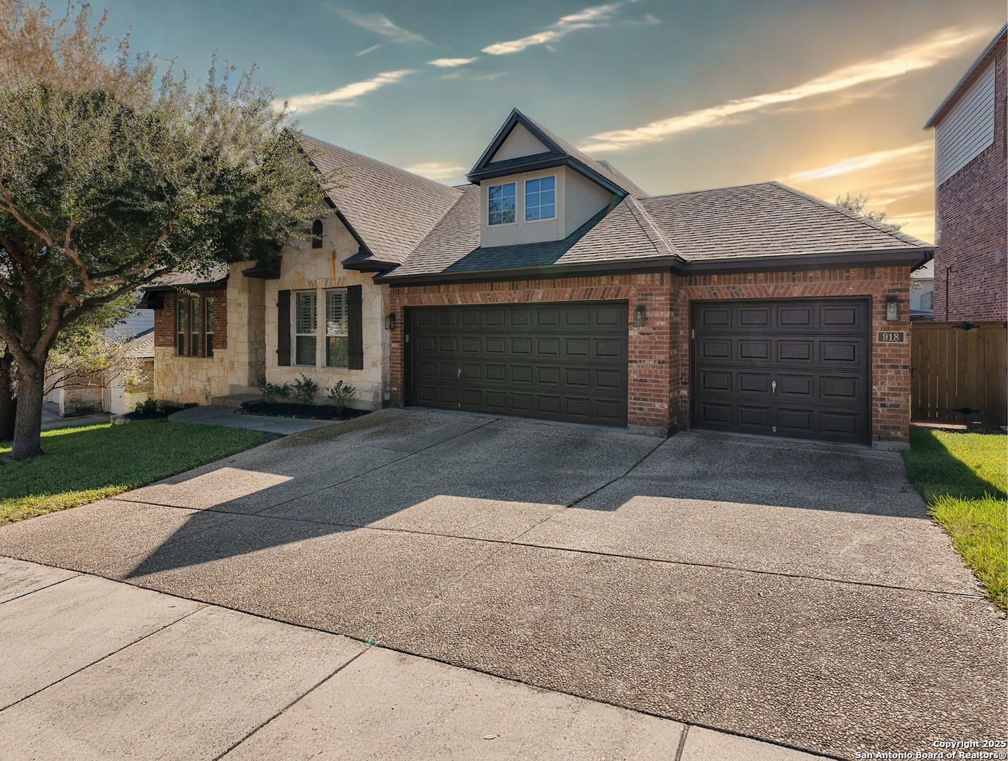 Welcome to this luxurious home by David Weekley in the highly desirable gated Terra Bella community of Stone Oak. 918 Olivia View offers functionality, space, and a scenic backyard with a Keith Zars Pool, seven-person hot tub, and a covered back patio porch with a gas line ready for outdoor grilling, to complete the perfect ambience. Recent upgrades include: New Roof Installed 2025 - New Fence Installed 2025 - Fresh Interior & Exterior Paint Including Exterior Trim 2025- New Flooring Installed 2024 - New Light Fixtures throughout. The chic & inviting floor plan is perfect for gatherings, entertaining, or cozy evenings against the stone-accented fireplace. Enjoy natural light, high ceilings, eight-foot doors throughout, extended kitchen cabinetry, and updated kitchen appliances. Favorite features in the home include the colossal primary bedroom w/oversized walk-in closet, the upstairs flex-game room with its own private full-bath, perfect for overnight guests and large gatherings, and an additional living room on the first floor to be used creatively as your needs demand. Other highlights include NO CITY TAX, a generously sized 3-car garage, water softener, reverse osmosis, sprinkler system, and window shades. Ideally located within walking distance to neighborhood amenities, HEB and top-rated NEISD schools, this home offers both luxury and convenience. Just minutes from restaurants, shopping, schools, and entertainment. The perfect home awaits in the heart of Stone Oak.