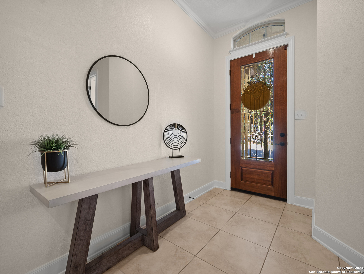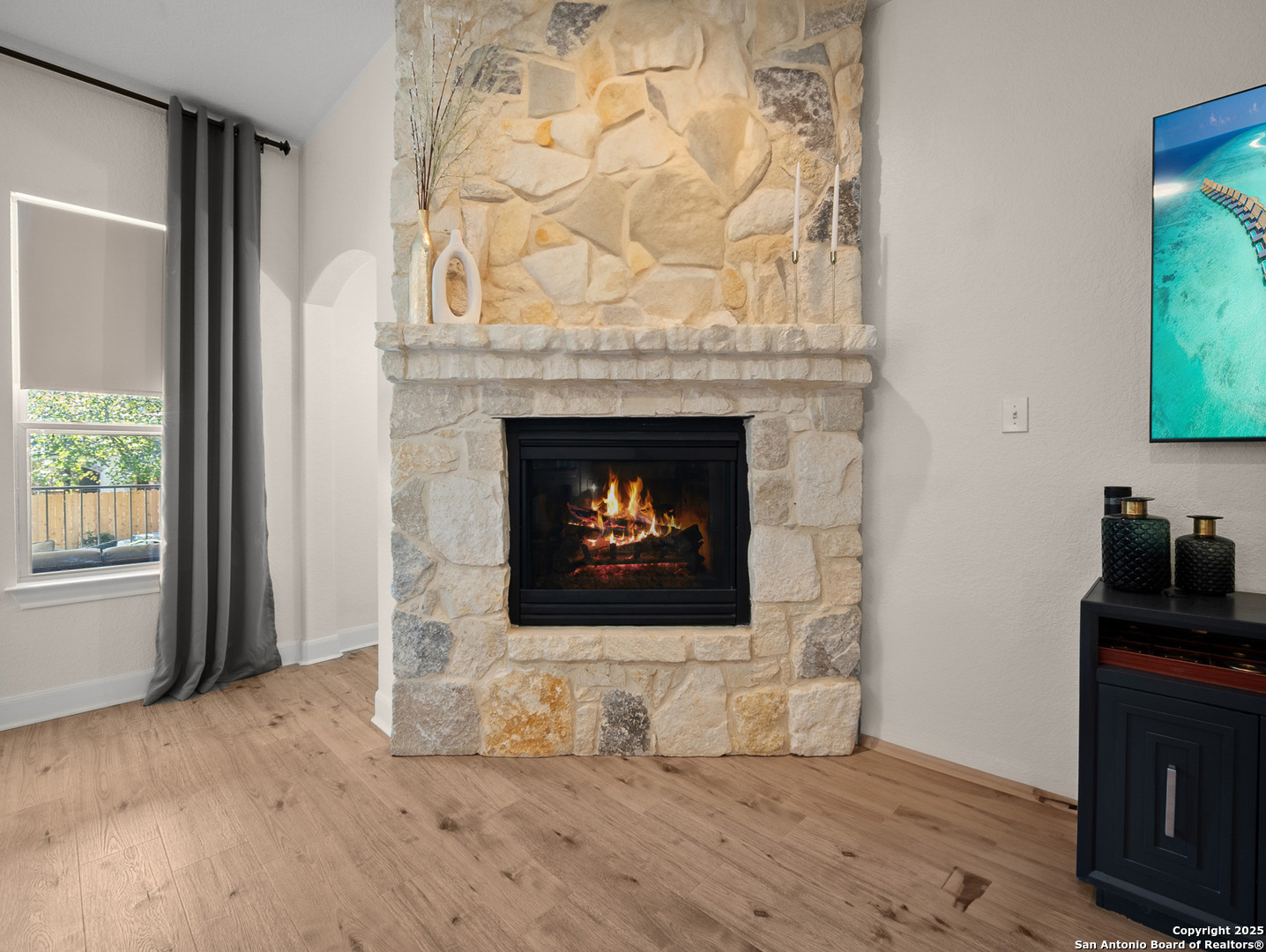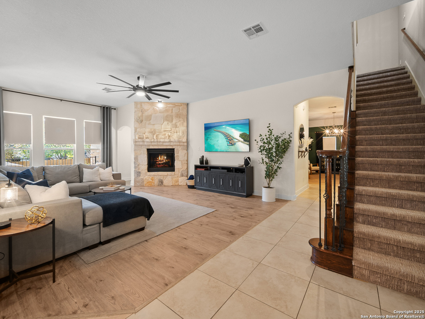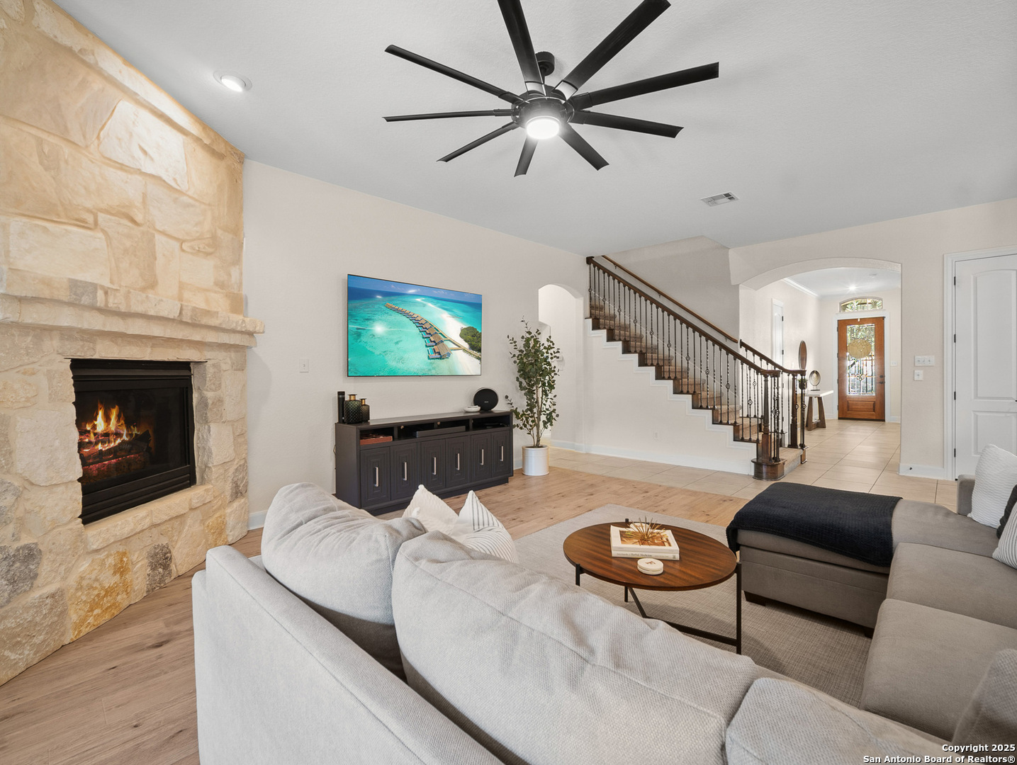 Welcome to this luxurious home by David Weekley in the highly desirable gated Terra Bella community of Stone Oak. 918 Olivia View offers functionality, space, and a scenic backyard with a Keith Zars Pool, seven-person hot tub, and a covered back patio porch with a gas line ready for outdoor grilling, to complete the perfect ambience. Recent upgrades include: New Roof Installed 2025 - New Fence Installed 2025 - Fresh Interior & Exterior Paint Including Exterior Trim 2025- New Flooring Installed 2024 - New Light Fixtures throughout. The chic & inviting floor plan is perfect for gatherings, entertaining, or cozy evenings against the stone-accented fireplace. Enjoy natural light, high ceilings, eight-foot doors throughout, extended kitchen cabinetry, and updated kitchen appliances. Favorite features in the home include the colossal primary bedroom w/oversized walk-in closet, the upstairs flex-game room with its own private full-bath, perfect for overnight guests and large gatherings, and an additional living room on the first floor to be used creatively as your needs demand. Other highlights include NO CITY TAX, a generously sized 3-car garage, water softener, reverse osmosis, sprinkler system, and window shades. Ideally located within walking distance to neighborhood amenities, HEB and top-rated NEISD schools, this home offers both luxury and convenience. Just minutes from restaurants, shopping, schools, and entertainment. The perfect home awaits in the heart of Stone Oak.