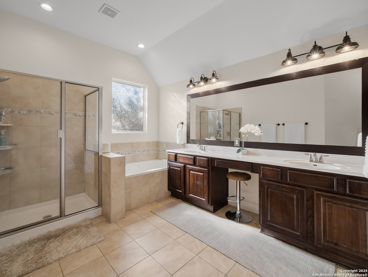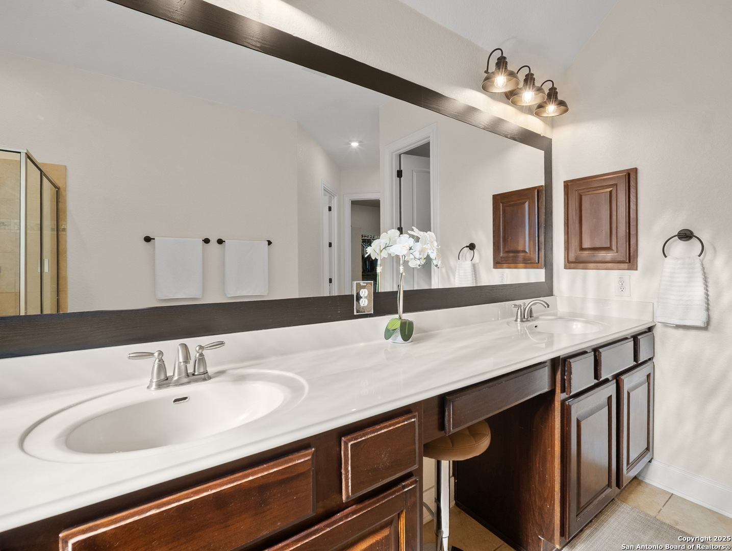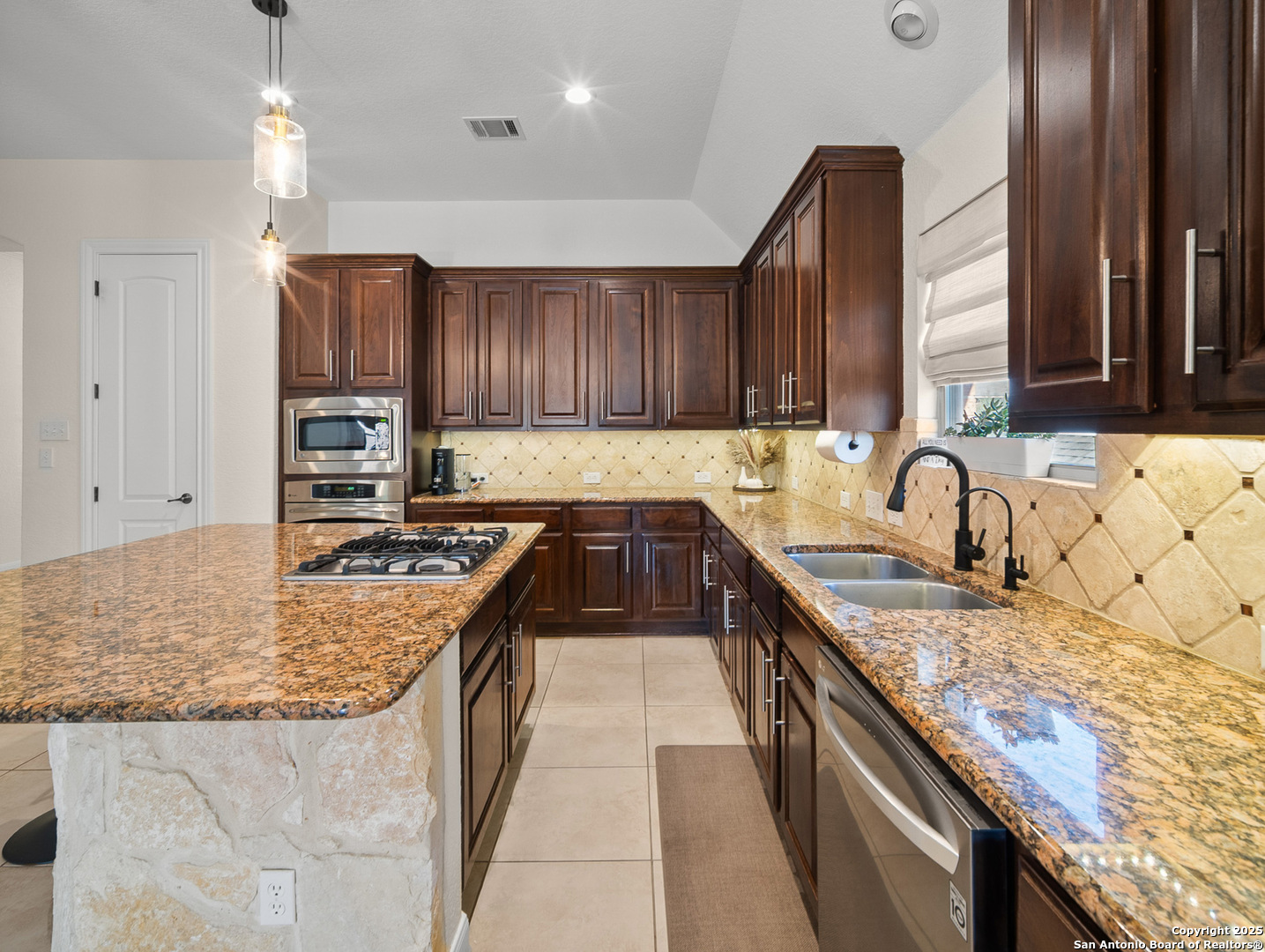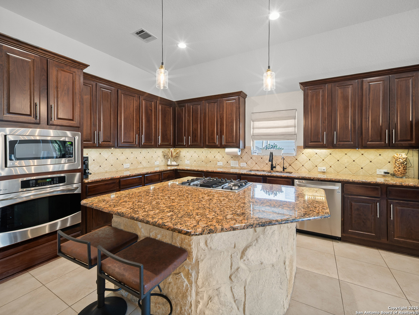 Welcome to this luxurious home by David Weekley in the highly desirable gated Terra Bella community of Stone Oak. 918 Olivia View offers functionality, space, and a scenic backyard with a Keith Zars Pool, seven-person hot tub, and a covered back patio porch with a gas line ready for outdoor grilling, to complete the perfect ambience. Recent upgrades include: New Roof Installed 2025 - New Fence Installed 2025 - Fresh Interior & Exterior Paint Including Exterior Trim 2025- New Flooring Installed 2024 - New Light Fixtures throughout. The chic & inviting floor plan is perfect for gatherings, entertaining, or cozy evenings against the stone-accented fireplace. Enjoy natural light, high ceilings, eight-foot doors throughout, extended kitchen cabinetry, and updated kitchen appliances. Favorite features in the home include the colossal primary bedroom w/oversized walk-in closet, the upstairs flex-game room with its own private full-bath, perfect for overnight guests and large gatherings, and an additional living room on the first floor to be used creatively as your needs demand. Other highlights include NO CITY TAX, a generously sized 3-car garage, water softener, reverse osmosis, sprinkler system, and window shades. Ideally located within walking distance to neighborhood amenities, HEB and top-rated NEISD schools, this home offers both luxury and convenience. Just minutes from restaurants, shopping, schools, and entertainment. The perfect home awaits in the heart of Stone Oak.