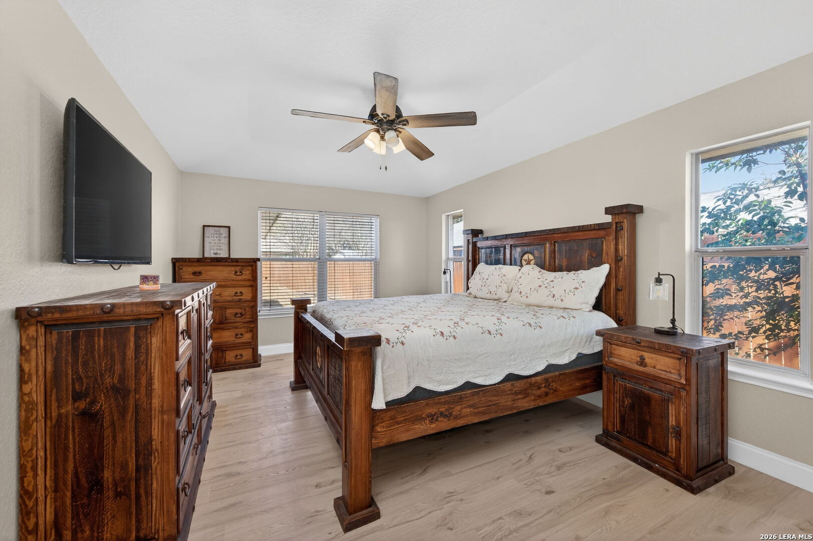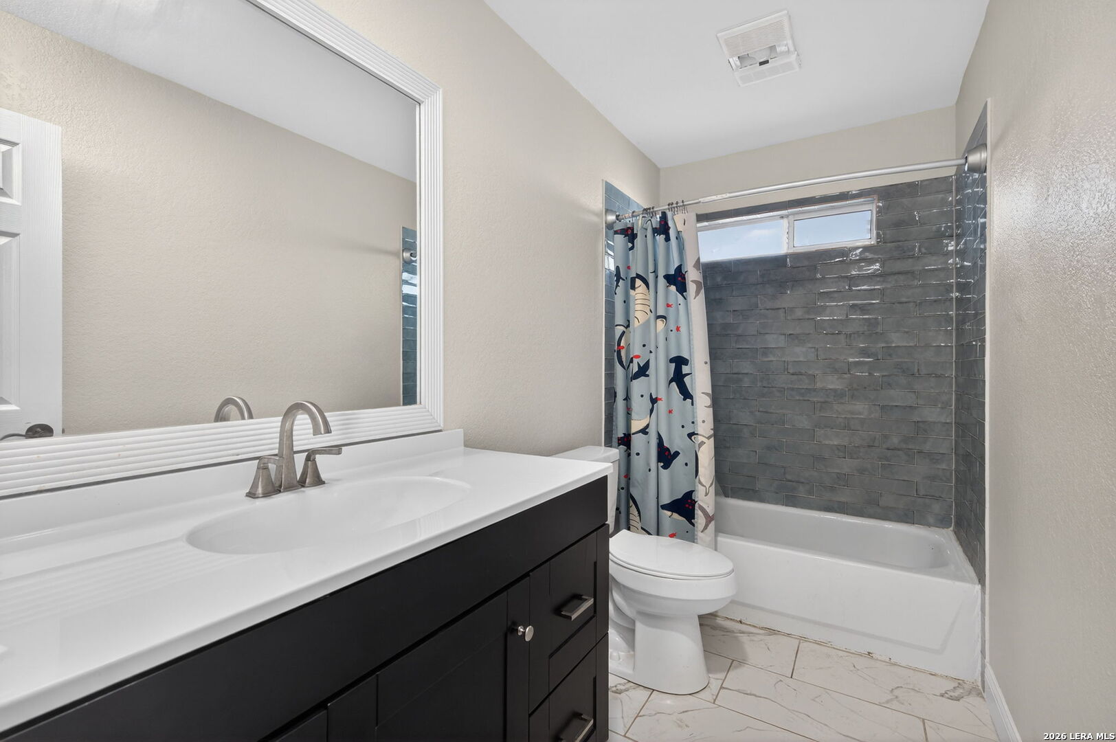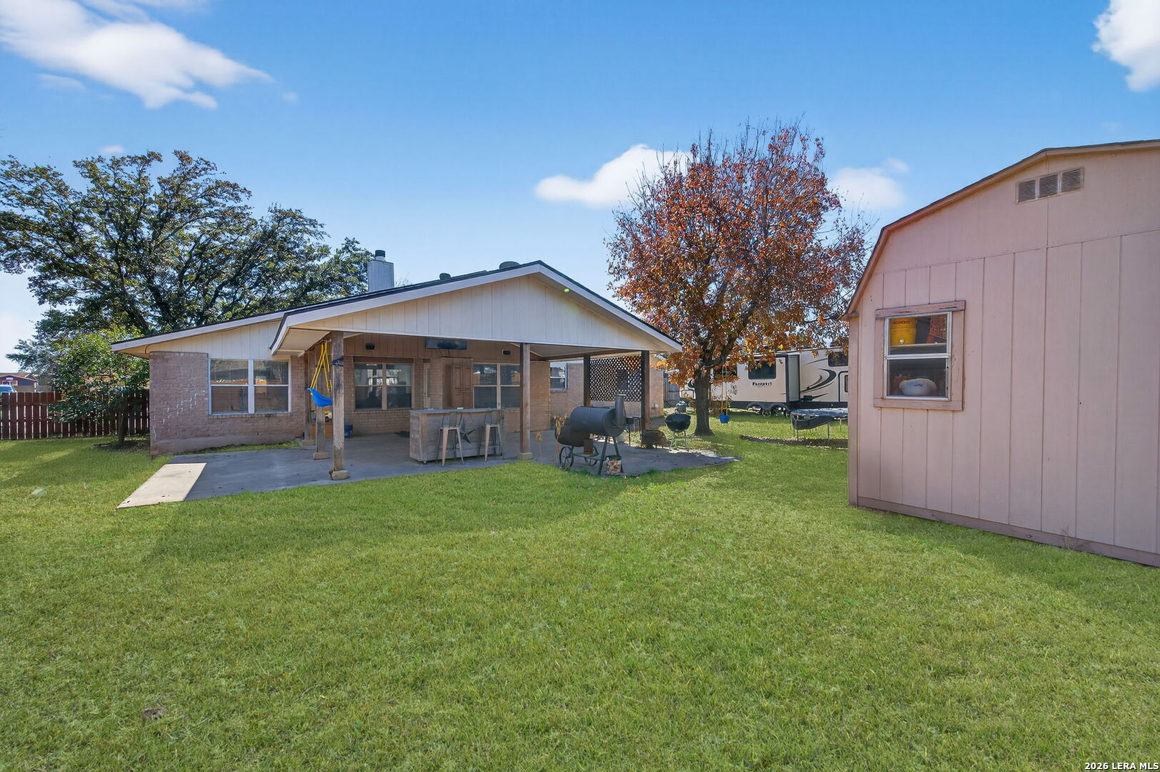 Beautifully Remodeled Corner-Lot Home with No HOA! This stunning home has been almost completely remodeled and is truly move-in ready. The home feels welcoming and open, with high ceilings enhancing the spacious living and dining areas. Recent upgrades include brand-new flooring throughout, recessed lighting, fresh interior paint, and a completely redesigned kitchen featuring custom modern yet charming cabinetry, all-new countertops, a farmhouse sink, and new stainless steel appliances. Additional improvements include a new tankless water heater and a fully renovated secondary bathroom-there are simply too many updates to list! Boasting outstanding curb appeal, this home is situated on a spacious corner lot just under a quarter acre in a quiet, three-street neighborhood with no through-traffic. The peaceful setting offers both privacy and convenience. The backyard is an entertainer's dream, featuring a large 24x24 covered patio-perfect for outdoor grilling, relaxing, or hosting gatherings-along with ample space for children or pets to run and play. A multi-shelf outdoor shed provides secure storage for tools, equipment, or recreational gear. Conveniently located just minutes from Randolph Air Force Base, The Forum Shopping Center, and easy access to I-10 and I-35. With NO HOA, this property also presents excellent investment potential, including short-term rental opportunities. Add a jacuzzi and outdoor TV to the expansive patio, and this home is sure to attract guests. Priced affordably for today's market, this home offers incredible value, versatility, and the opportunity to make it your own. Don't miss this exceptional find!