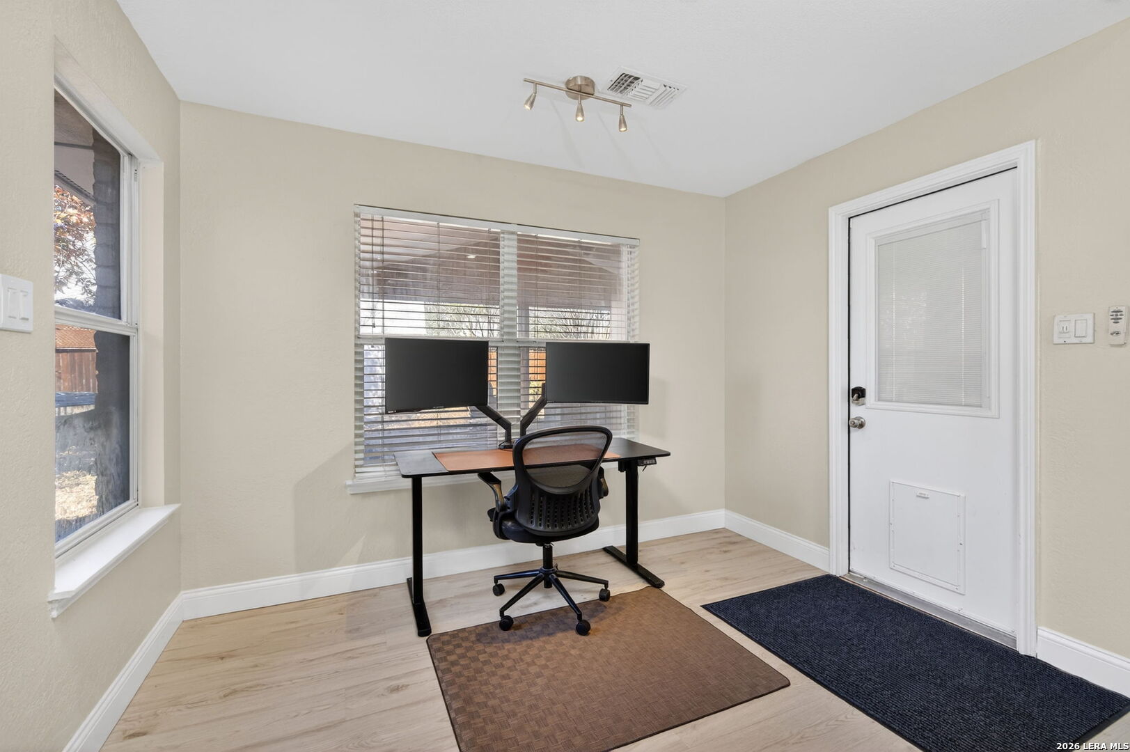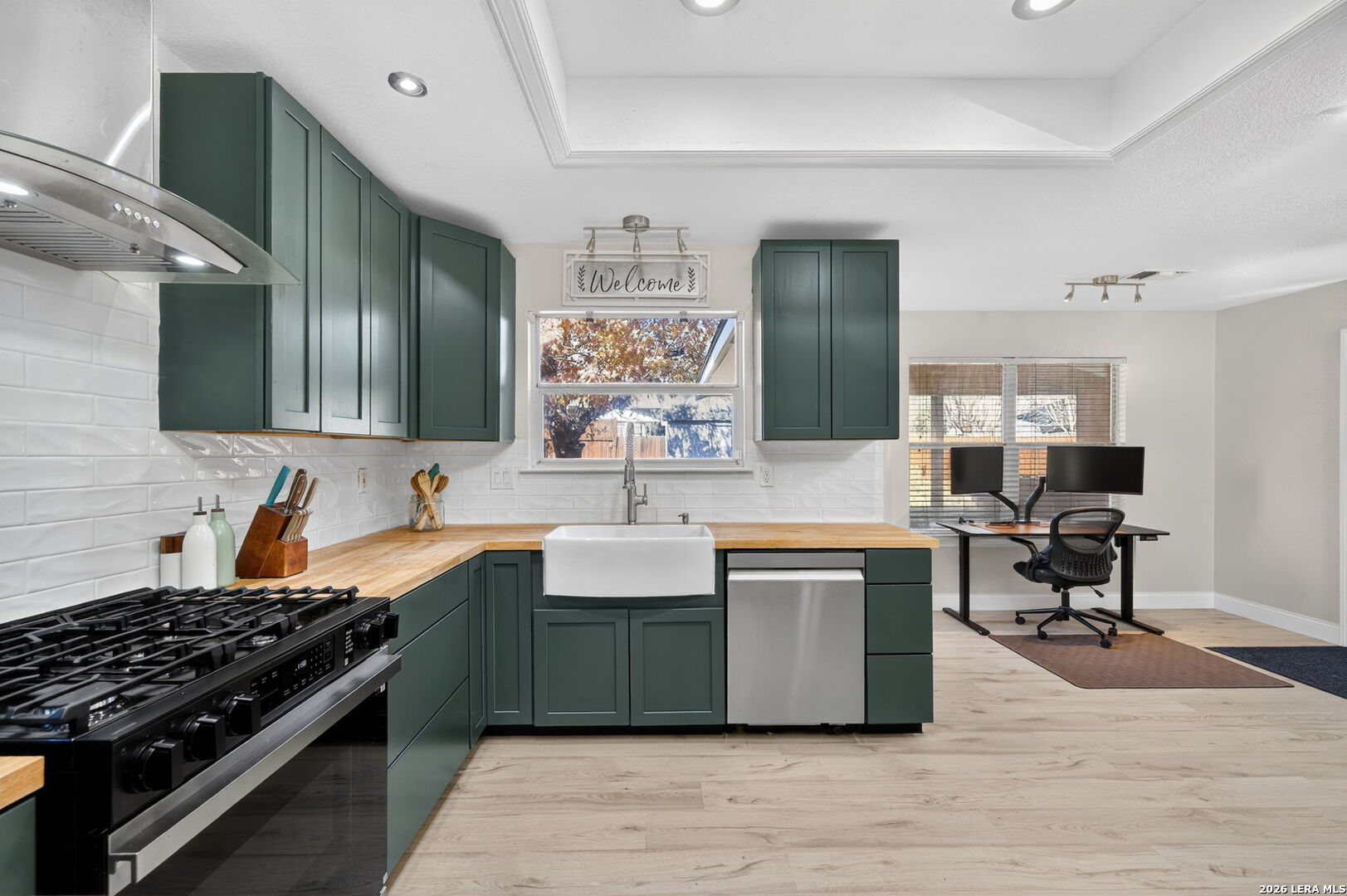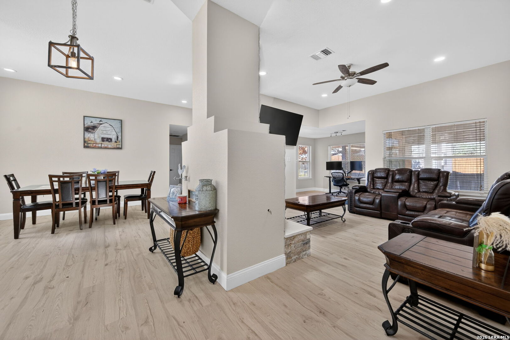 Beautifully Remodeled Corner-Lot Home with No HOA! This stunning home has been almost completely remodeled and is truly move-in ready. The home feels welcoming and open, with high ceilings enhancing the spacious living and dining areas. Recent upgrades include brand-new flooring throughout, recessed lighting, fresh interior paint, and a completely redesigned kitchen featuring custom modern yet charming cabinetry, all-new countertops, a farmhouse sink, and new stainless steel appliances. Additional improvements include a new tankless water heater and a fully renovated secondary bathroom-there are simply too many updates to list! Boasting outstanding curb appeal, this home is situated on a spacious corner lot just under a quarter acre in a quiet, three-street neighborhood with no through-traffic. The peaceful setting offers both privacy and convenience. The backyard is an entertainer's dream, featuring a large 24x24 covered patio-perfect for outdoor grilling, relaxing, or hosting gatherings-along with ample space for children or pets to run and play. A multi-shelf outdoor shed provides secure storage for tools, equipment, or recreational gear. Conveniently located just minutes from Randolph Air Force Base, The Forum Shopping Center, and easy access to I-10 and I-35. With NO HOA, this property also presents excellent investment potential, including short-term rental opportunities. Add a jacuzzi and outdoor TV to the expansive patio, and this home is sure to attract guests. Priced affordably for today's market, this home offers incredible value, versatility, and the opportunity to make it your own. Don't miss this exceptional find!