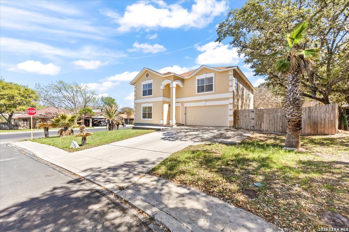 Welcome home to this nearly 3,000-square-foot, two-story home on an oversized corner lot of more than 1/3 of an acre in the well-established Gilbeau Oaks subdivision. This 3 bedroom, 2.5 bath home has two spacious downstairs living areas, a theater room, an executive office, and a large primary suite - offering plenty of space for both everyday living and entertaining. All bedrooms located upstairs for privacy and separation, including the generously sized primary suite. The extended backyard is perfect for hosting BBQ's, parties, or simply relaxing. Two insulated sheds with electricity provide endless possibilities, whether you need a workshop, climate-controlled storage, or a private retreat. As one of the largest homes in the subdivision, this move-in-ready property is packed with opportunity. Conveniently located just minutes from Loop 1604, UTSA, premier shopping and dining, and within walking distance to community amenities including a pool, tennis court, basketball court, and playground. Come see this home today!