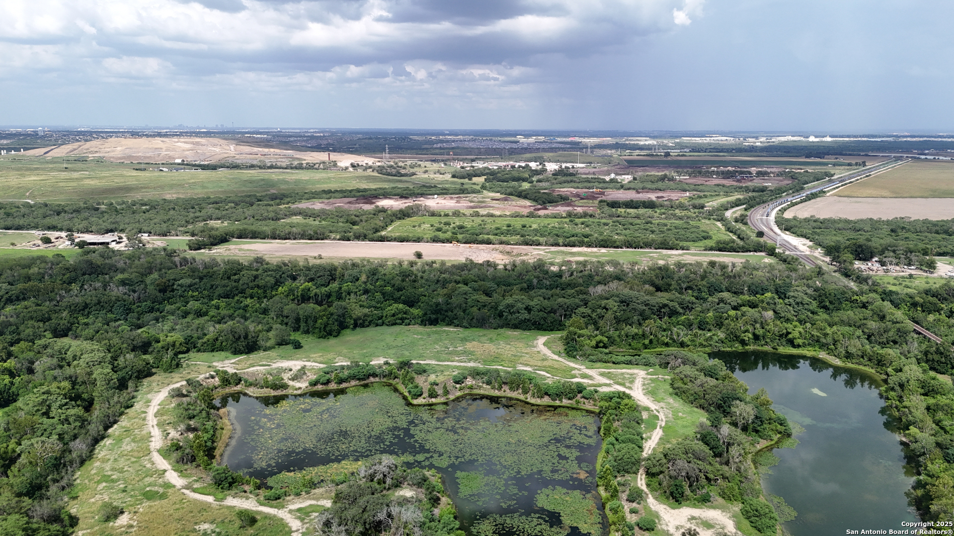 75 Acres lying just outside of San Antonio City limits and ETJ boundaries, within Bexar County. Less than 2 miles from the Union Pacific Rail Yard, less than 3/4 of a mile from Loop 1604. Endless potential uses, with access from Nelson Road. Acreage has Medina River frontage on the southern access point from Nelson Road, and borders Lackland AFB Medina Annex to the North, comprised of three adjoining tracts that total 75 acres, taxed as two separate APN's. Borders the Union Pacific Rail Line on it's Southern Border. Level Topography, heavily wooded, portions of the tract lie within the 100 year flood plain. Property is traversed by pipeline, water, Overhead Electrical, and telecom easements.