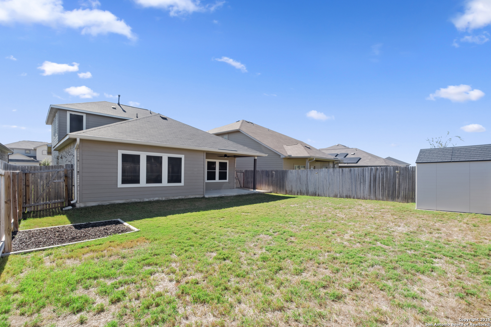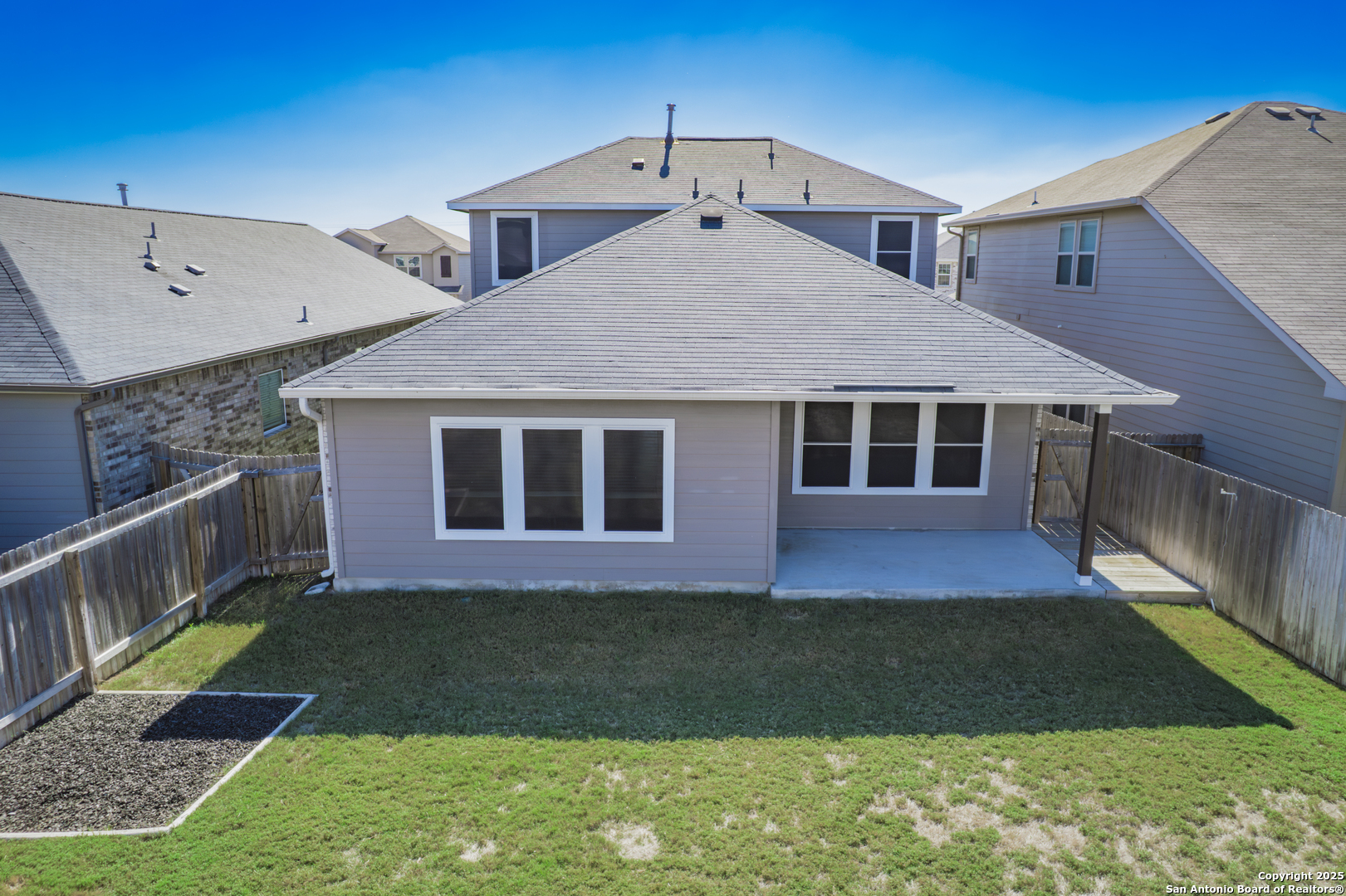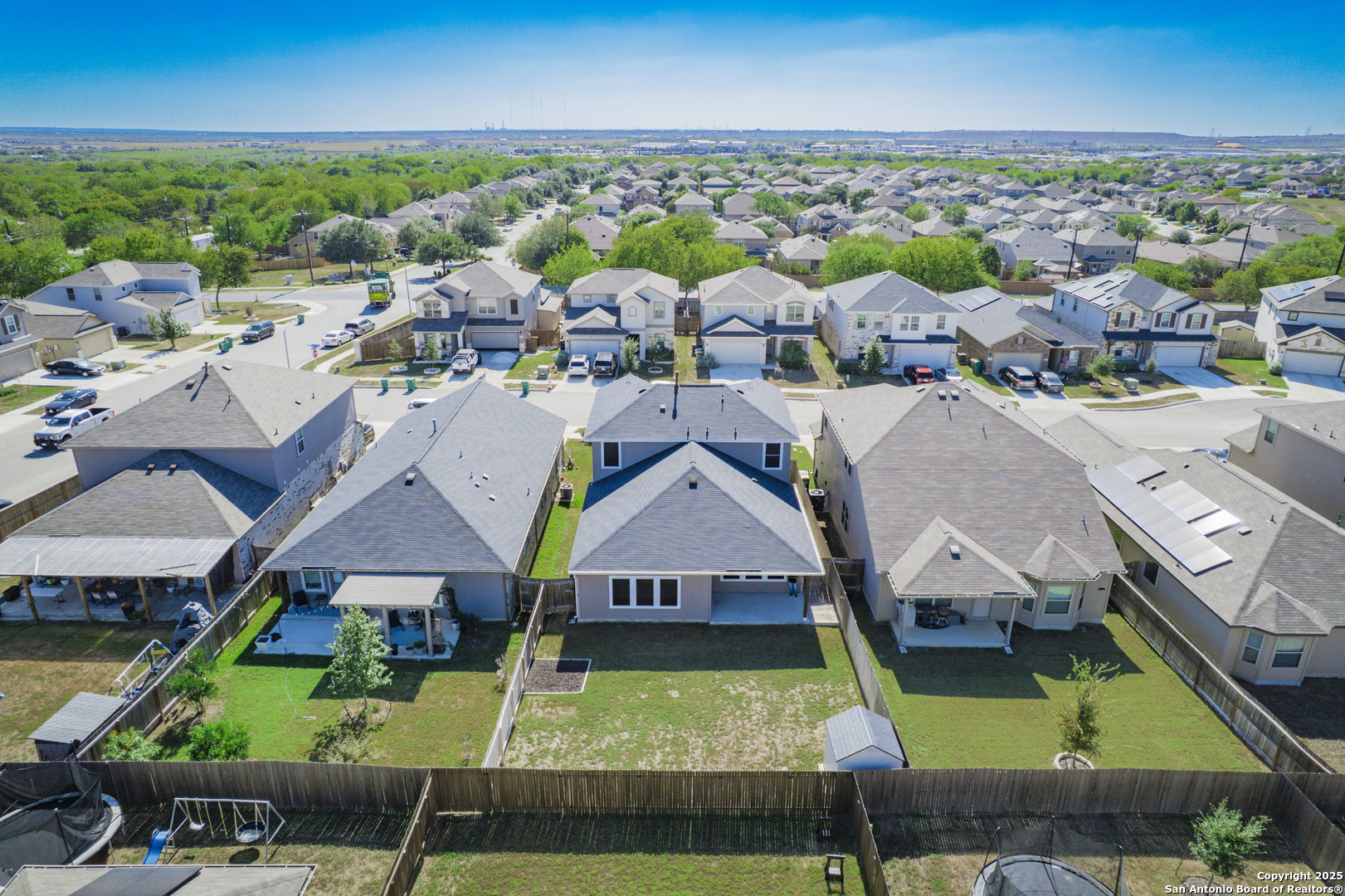 Welcome to 9219 Cook Creek, a beautiful home desirable Notting Hill neighborhood that offers comfort, style, and convenience-just minutes from Randolph AFB, Fort Sam Houston Joint Base, local shopping, dining, and major highways. Featuring 4 bedrooms plus an office, 2.5 baths, and a versatile loft space ideal for a media room or second living area, this home is designed for both functionality and relaxation. The primary suite and office are conveniently located downstairs, with a luxurious bath that includes dual vanities, a separate garden tub and shower, and a spacious walk-in closet. The open-concept layout seamlessly connects the living, dining, and gourmet kitchen areas, complete with granite countertops, stainless steel appliances, gas cooking, a walk-in pantry, and an island breakfast bar. Perfect for entertaining, the inviting living room opens to a covered patio overlooking the large fenced yard-ideal for gatherings or your furry friends. Upstairs, you'll find three additional bedrooms, a full bath, and a generous loft area. Neighborhood amenities include a pool, park, and playground for residents to enjoy. Our Resident Benefit Package ($30/month) offers convenient services to help you stay on top of your home and financial needs such as air filter delivery, credit reporting, fraud alerts and more!
