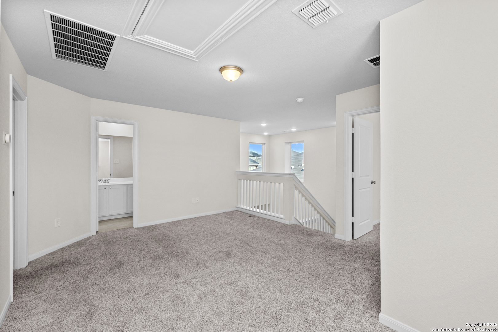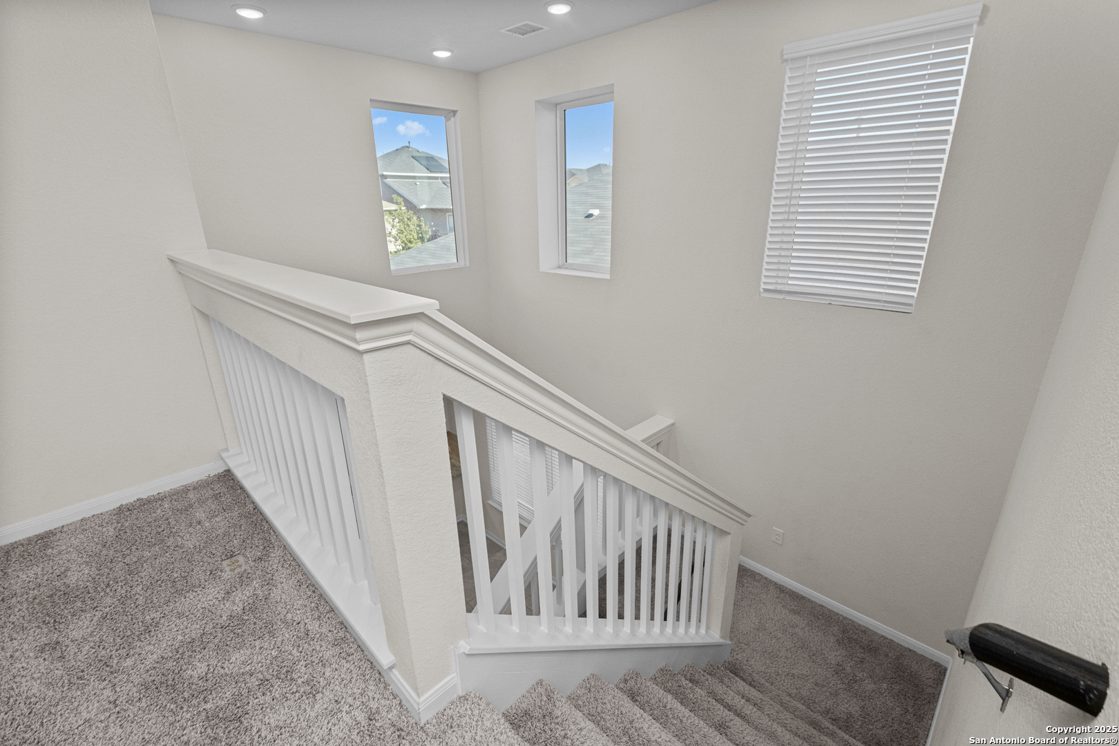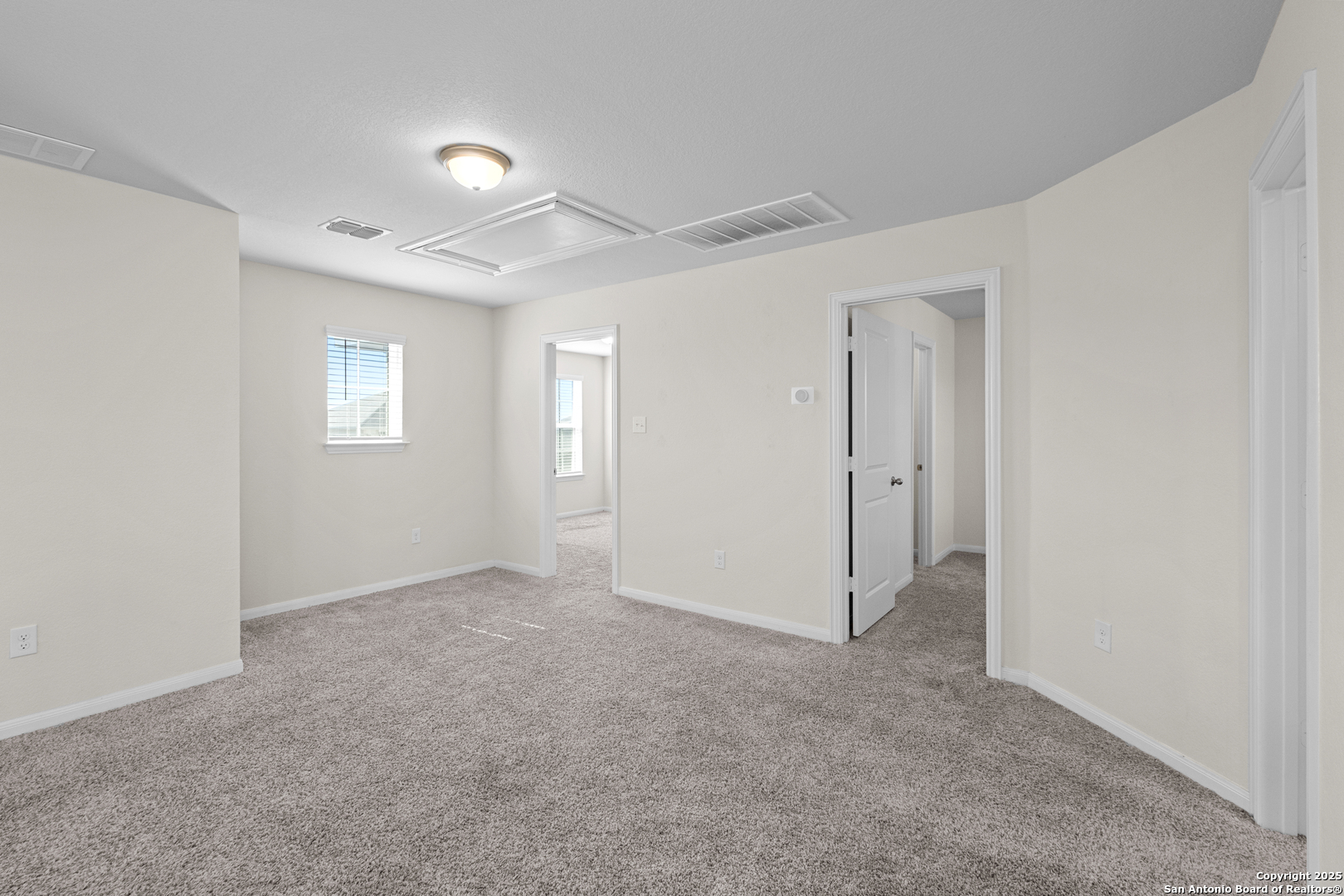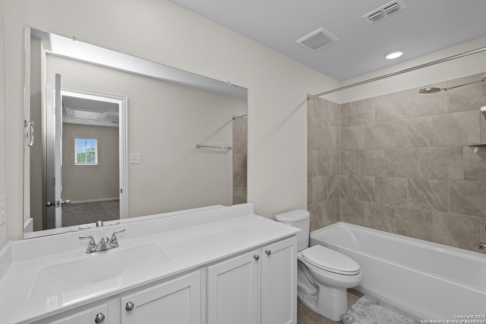 Welcome to 9219 Cook Creek, a beautiful home desirable Notting Hill neighborhood that offers comfort, style, and convenience-just minutes from Randolph AFB, Fort Sam Houston Joint Base, local shopping, dining, and major highways. Featuring 4 bedrooms plus an office, 2.5 baths, and a versatile loft space ideal for a media room or second living area, this home is designed for both functionality and relaxation. The primary suite and office are conveniently located downstairs, with a luxurious bath that includes dual vanities, a separate garden tub and shower, and a spacious walk-in closet. The open-concept layout seamlessly connects the living, dining, and gourmet kitchen areas, complete with granite countertops, stainless steel appliances, gas cooking, a walk-in pantry, and an island breakfast bar. Perfect for entertaining, the inviting living room opens to a covered patio overlooking the large fenced yard-ideal for gatherings or your furry friends. Upstairs, you'll find three additional bedrooms, a full bath, and a generous loft area. Neighborhood amenities include a pool, park, and playground for residents to enjoy. Our Resident Benefit Package ($30/month) offers convenient services to help you stay on top of your home and financial needs such as air filter delivery, credit reporting, fraud alerts and more!