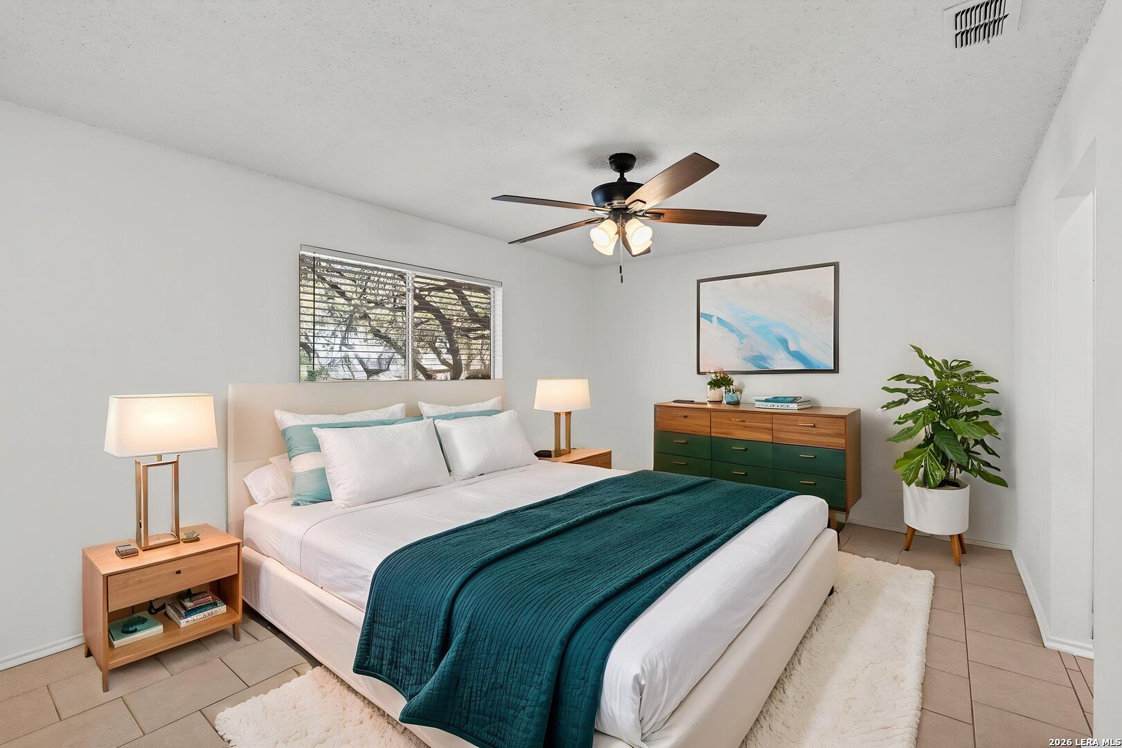 A beautifully updated 3-bedroom, 2-bath one story home that is truly move-in ready! Step inside to soaring ceilings in the spacious living room, highlighted by a grand fireplace, new laminate flooring and new ceiling fan (March 2026). Fresh interior paint, including trim and doors, gives the home a crisp, modern feel. New blinds and updated lighting throughout also enhance this home (3/26). The kitchen shines with freshly painted cabinets, new hardware and countertops, a new dishwasher (3/26) and modern lighting. The primary bathroom cabinets have been painted and the faucets, lighting and mirror have all been replaced as well (3/26). The guest bathroom lighting and mirror has also been updated. All tile floors have been professionally cleaned too. Outside, enjoy a large backyard with mature trees-perfect for relaxing or entertaining. Located in a neighborhood filled with amenities including a pool, tennis courts, clubhouse, and jogging trails, this home offers comfort, convenience, and community all in one!