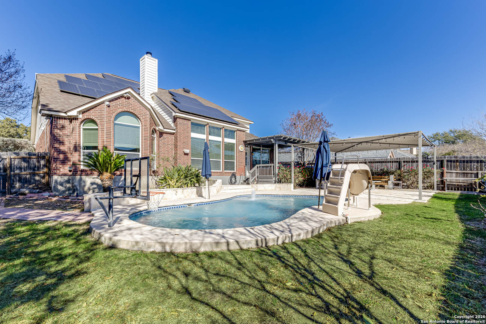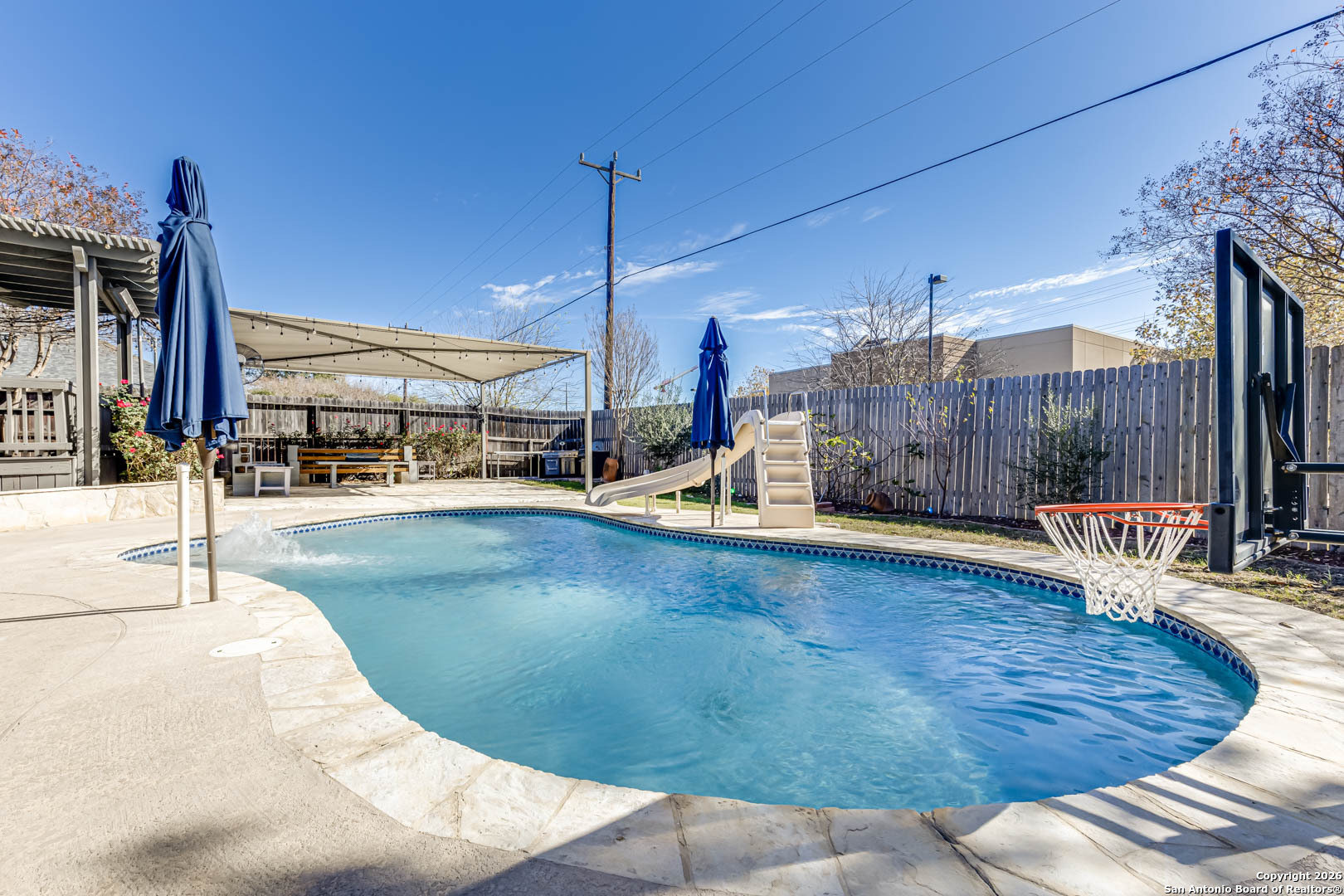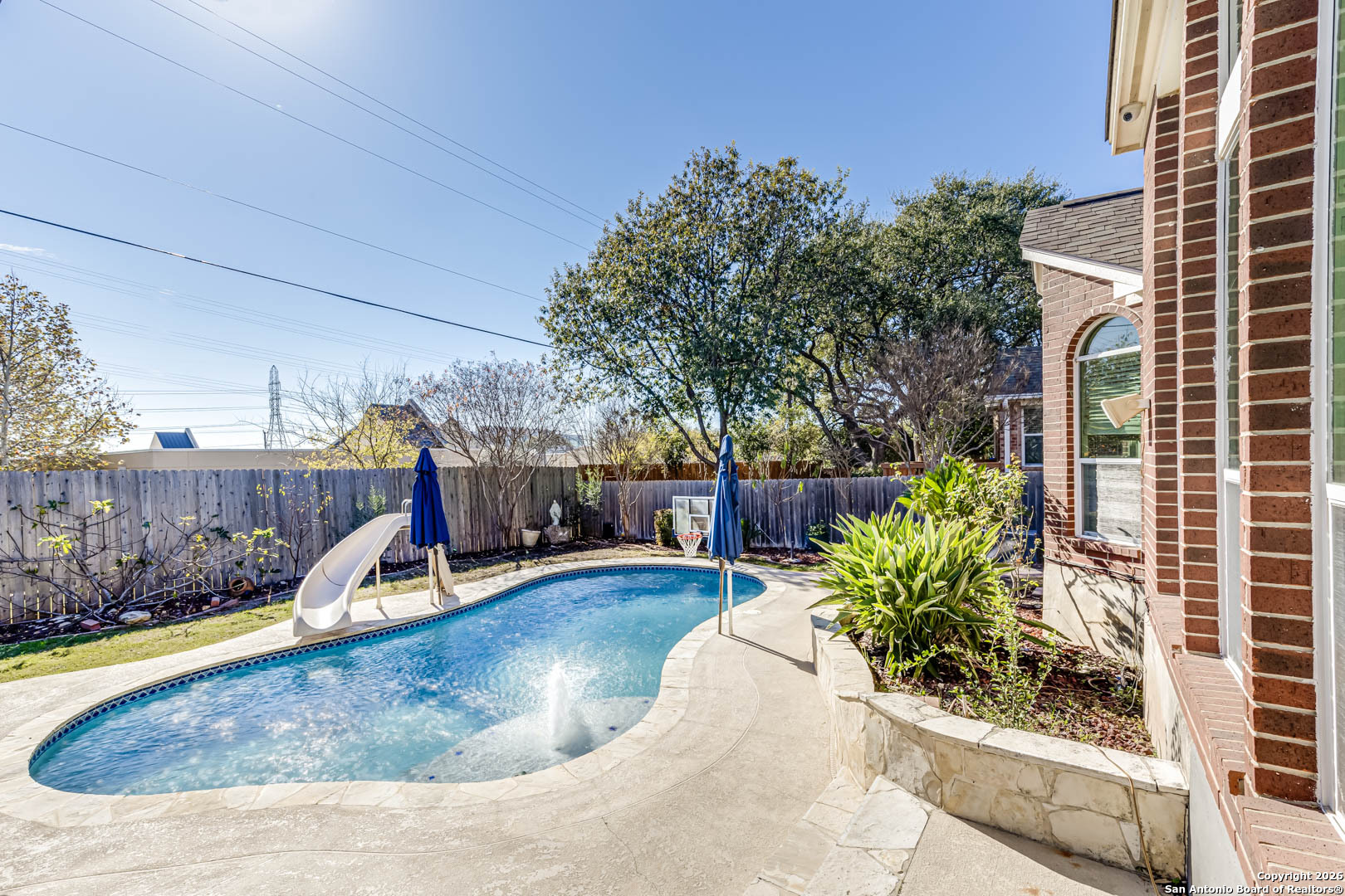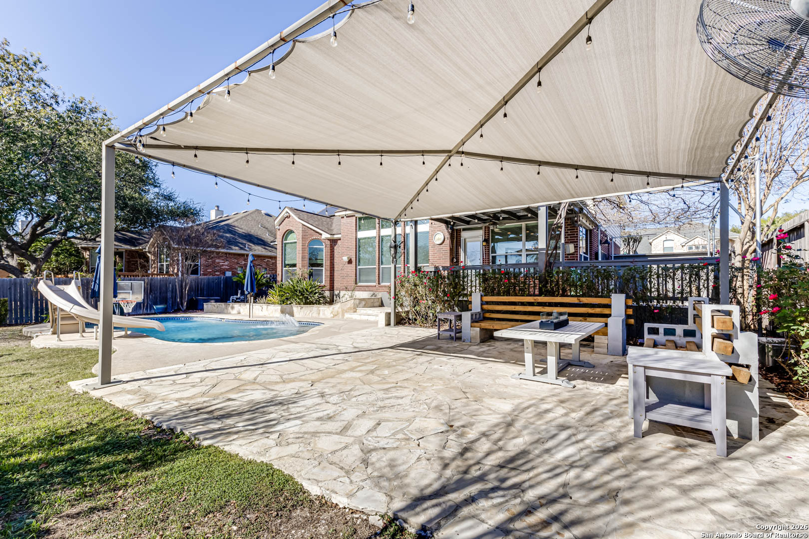 Stunning Stone Oak home features an open floor plan, a living room with 18' ceiling and a cozy fireplace. The kitchen has upgraded cabinets, and a new induction cooktop. The primary suite has a soaring ceiling, bay window, a luxury bath and custom closet. The backyard oasis has a sparkling pool, a covered patio, and mature fruit bearing trees. Home has solar panels, 6 yr old roof, and no carpet. All this minutes to schools, dining, parks, and hospitals. Schedule your Tour today!