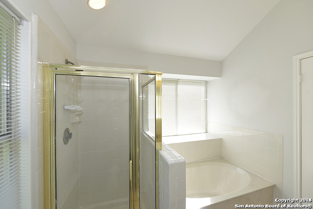 Lovely single story house with slightly vaulted ceiling, fireplace, NO carpet. Sunny breakfast nook in kitchen, plus dining area in living room. Surprising amount of back yard. Master has walk in closet, separate shower, garden tub. Quiet neighborhood , close to med center, USAA, shopping.