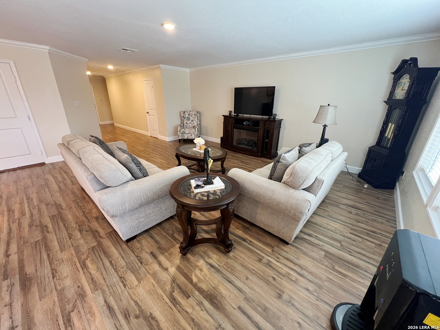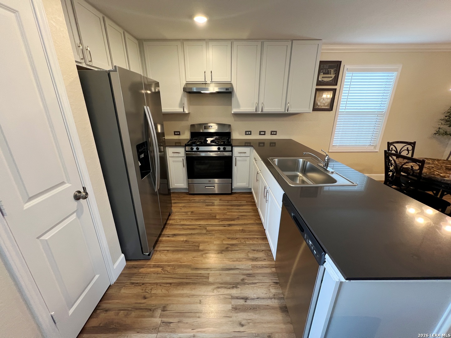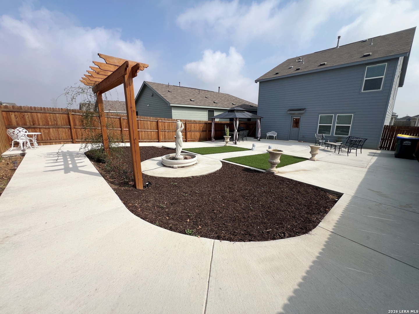 Upgraded 4 Bed 2.5 Bath 1950 sq ft Home in Navarro Ranch. No Carpets! All Laminate and Tile floors throughout. Fresh Paint and Crown Molding. Large Living Room opens to the Dining Room and Kitchen. Quartz counters, Fridge, Gas Stove, Dishwasher, Farmhouse sink. Washer and Dryer included! Large Game Room and 4 Bedrooms up. Primary Bedroom w/ Walk-in Closet. Primary Bath w/Shower/Tub combo. Large Low Maintenance Fenced Yard with Gazebo. Two Car Garage w/Opener, Tankless Gas Water heater. Community Pool, Playground, Clubhouse. Close to Hwy 46, IH-35.