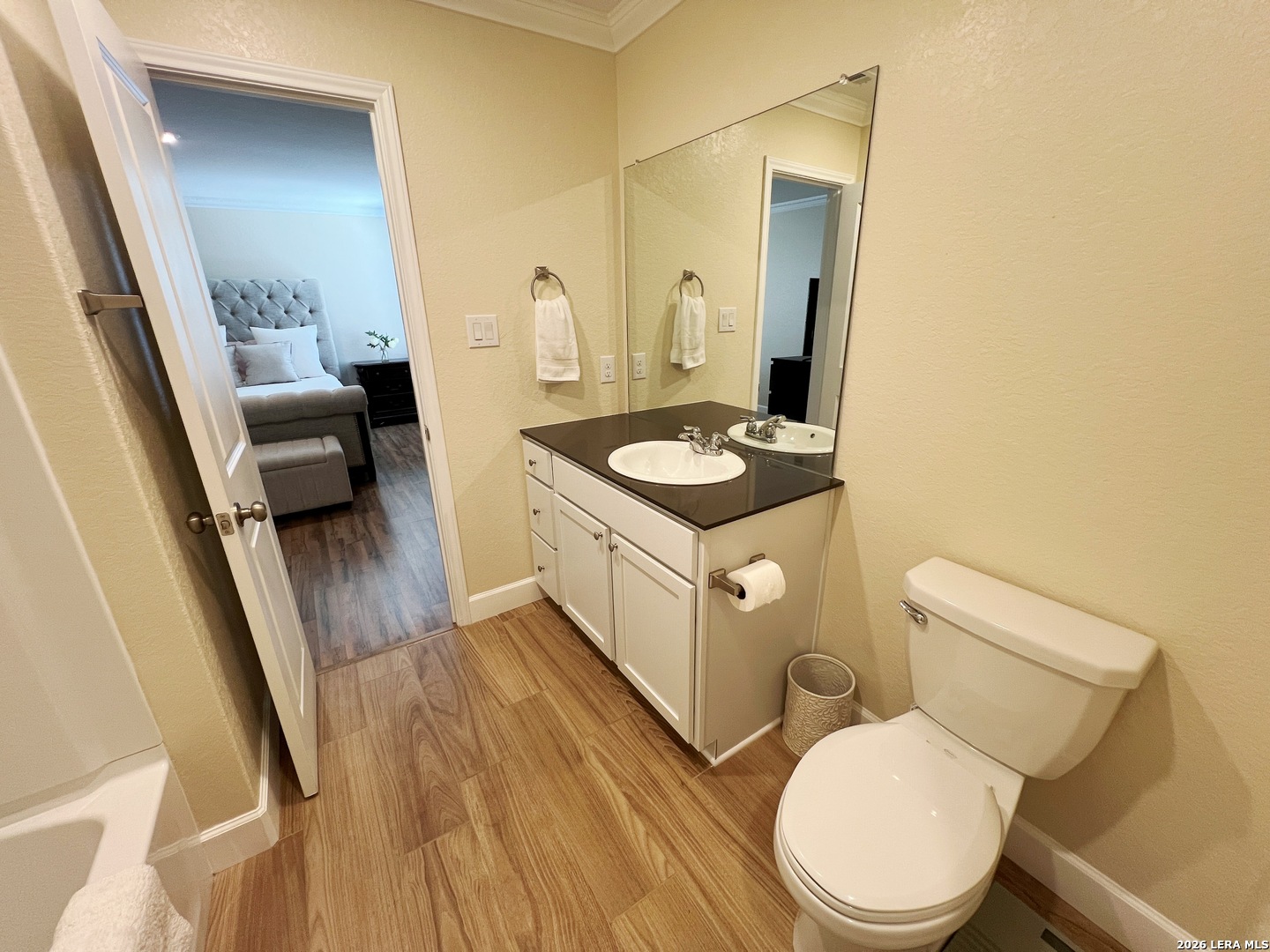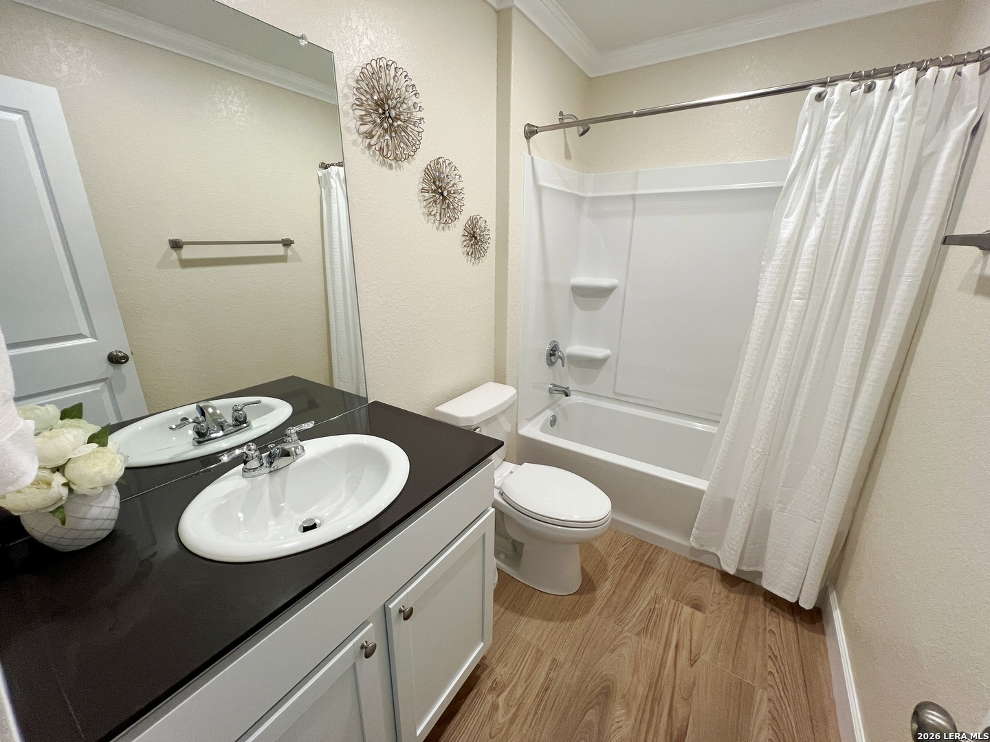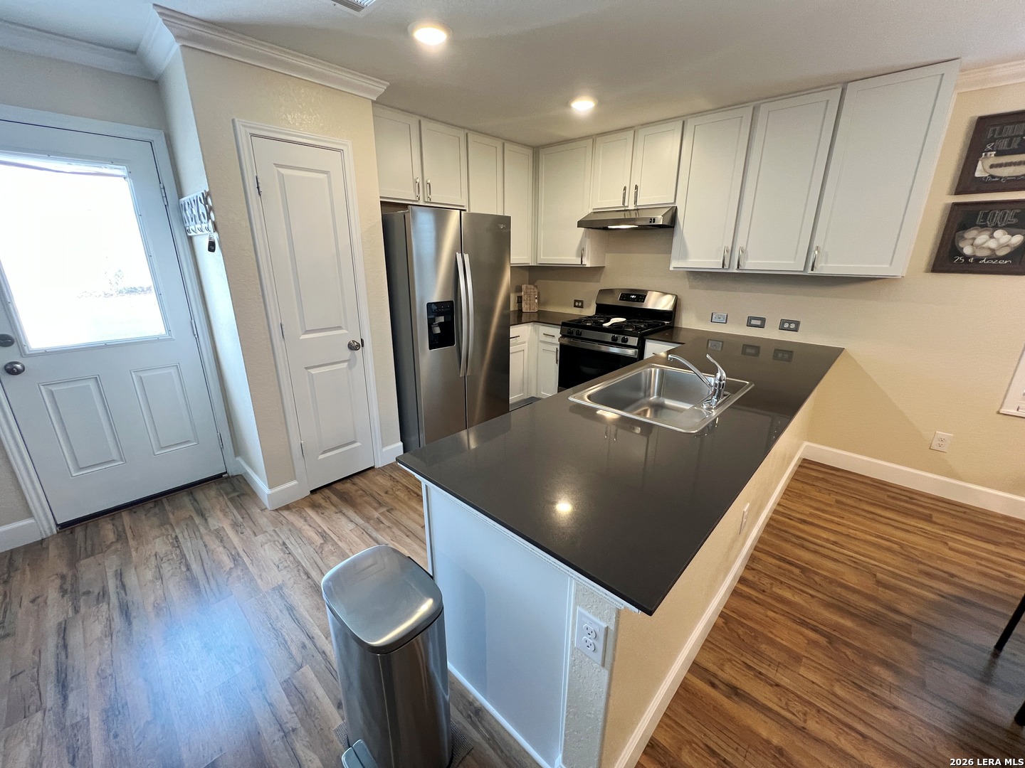 Upgraded 4 Bed 2.5 Bath 1950 sq ft Home in Navarro Ranch. No Carpets! All Laminate and Tile floors throughout. Fresh Paint and Crown Molding. Large Living Room opens to the Dining Room and Kitchen. Quartz counters, Fridge, Gas Stove, Dishwasher, Farmhouse sink. Washer and Dryer included! Large Game Room and 4 Bedrooms up. Primary Bedroom w/ Walk-in Closet. Primary Bath w/Shower/Tub combo. Large Low Maintenance Fenced Yard with Gazebo. Two Car Garage w/Opener, Tankless Gas Water heater. Community Pool, Playground, Clubhouse. Close to Hwy 46, IH-35.