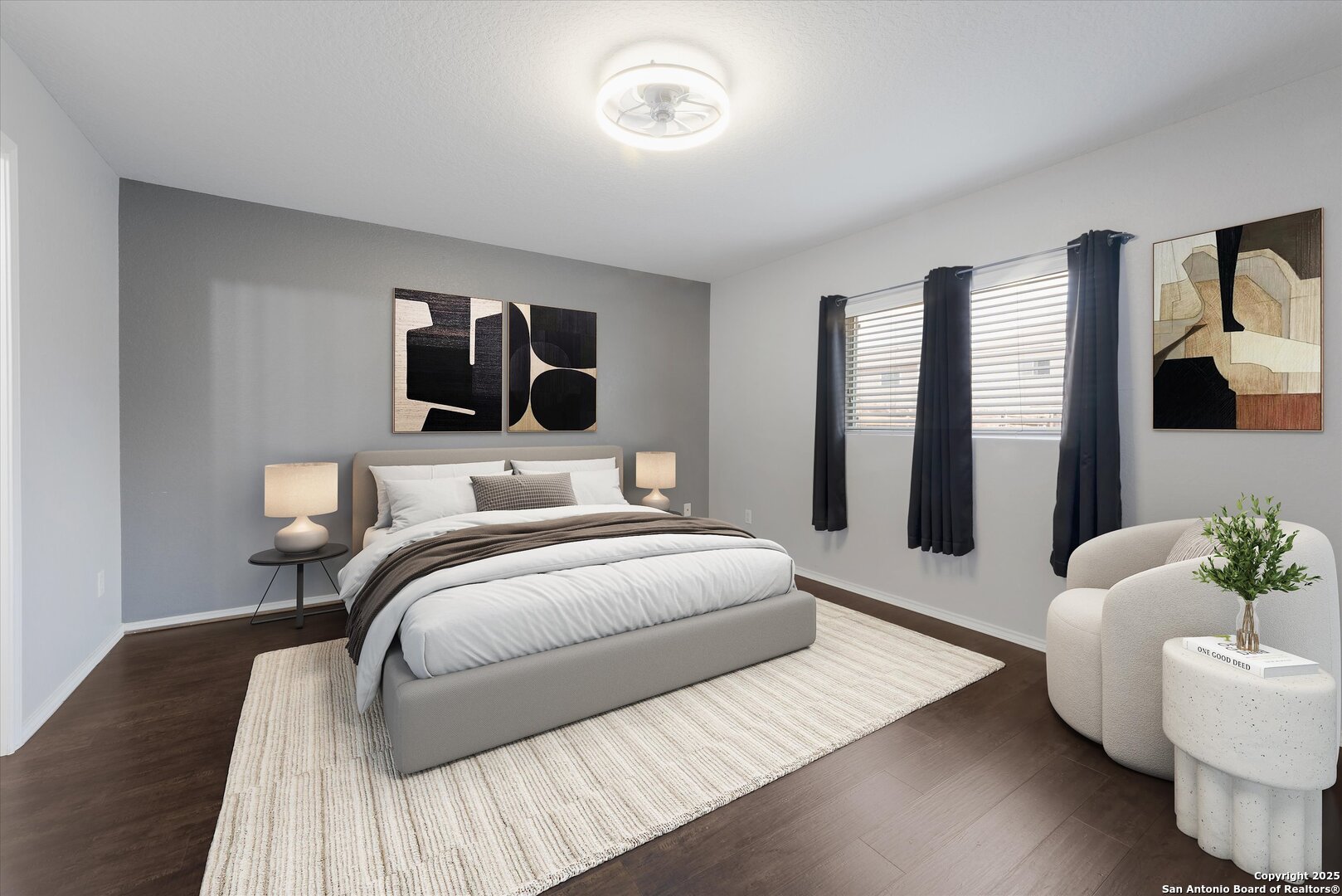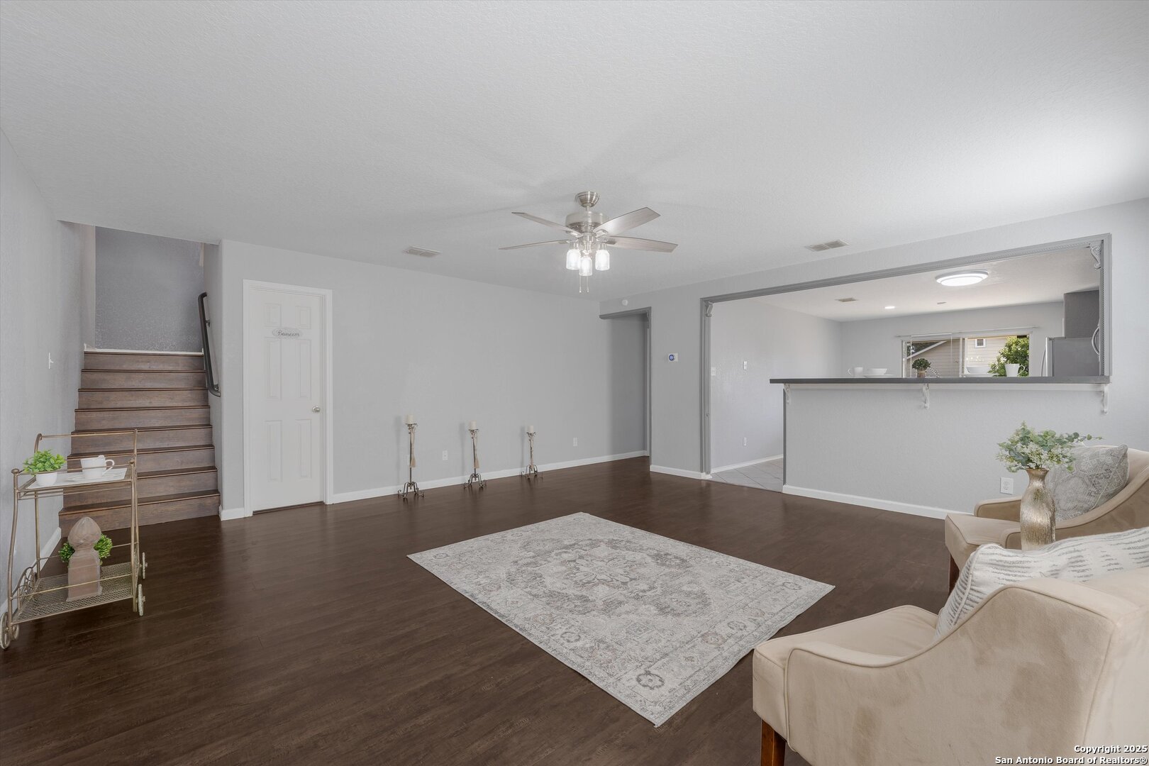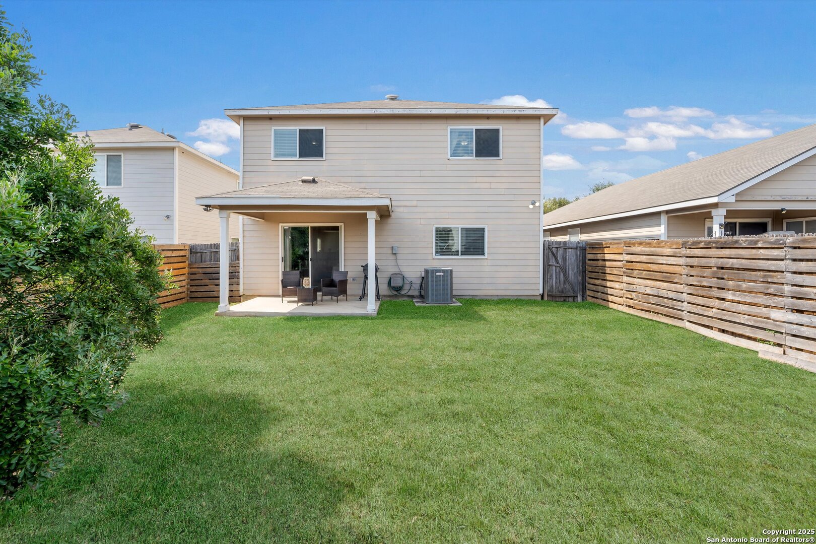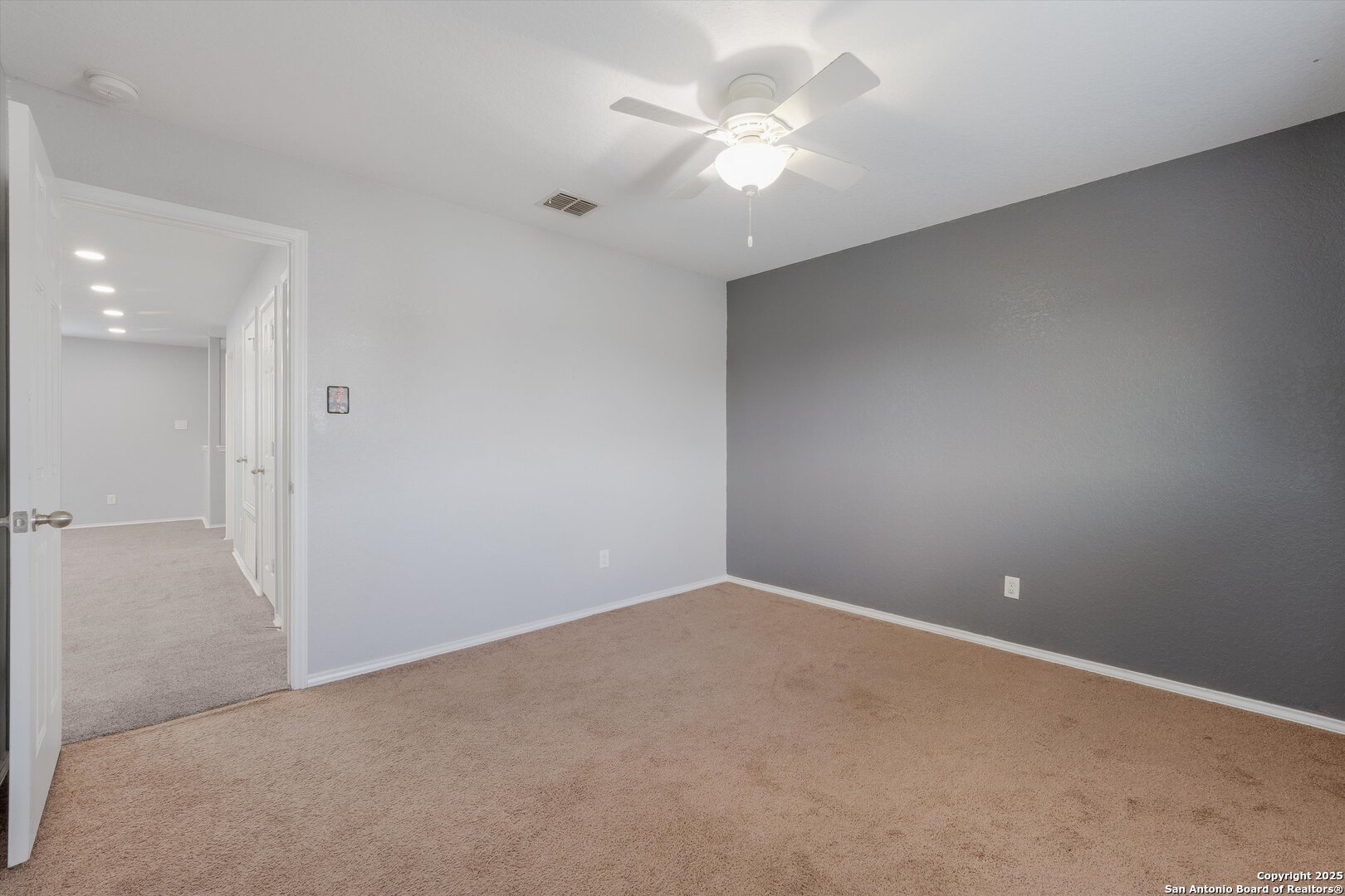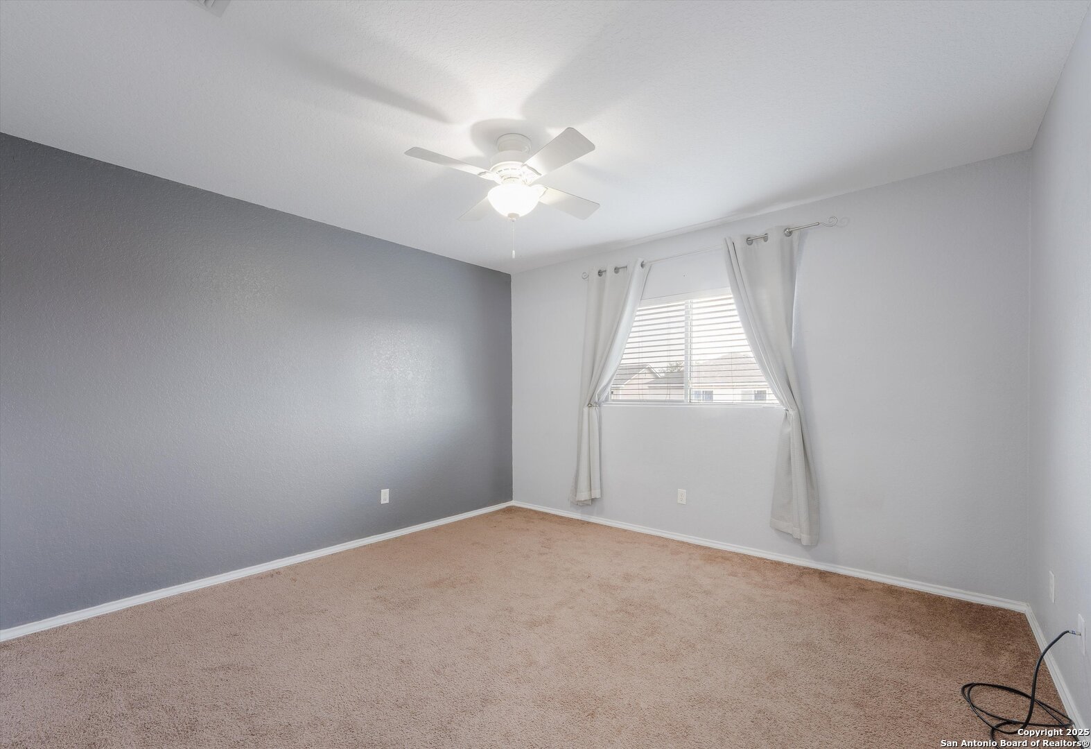 This move-in ready two-story home offers 3 bedrooms and 2.5 baths with the primary suite conveniently located on the main level. The open kitchen features abundant cabinet and countertop space along with a long breakfast bar, perfect for casual dining and entertaining. The main level has no carpet for easy care, while upstairs includes spacious secondary bedrooms and a large family room for added living space. Outside, the backyard provides a covered patio ideal for relaxing or hosting gatherings. This home combines comfort, functionality, and style in every detail.