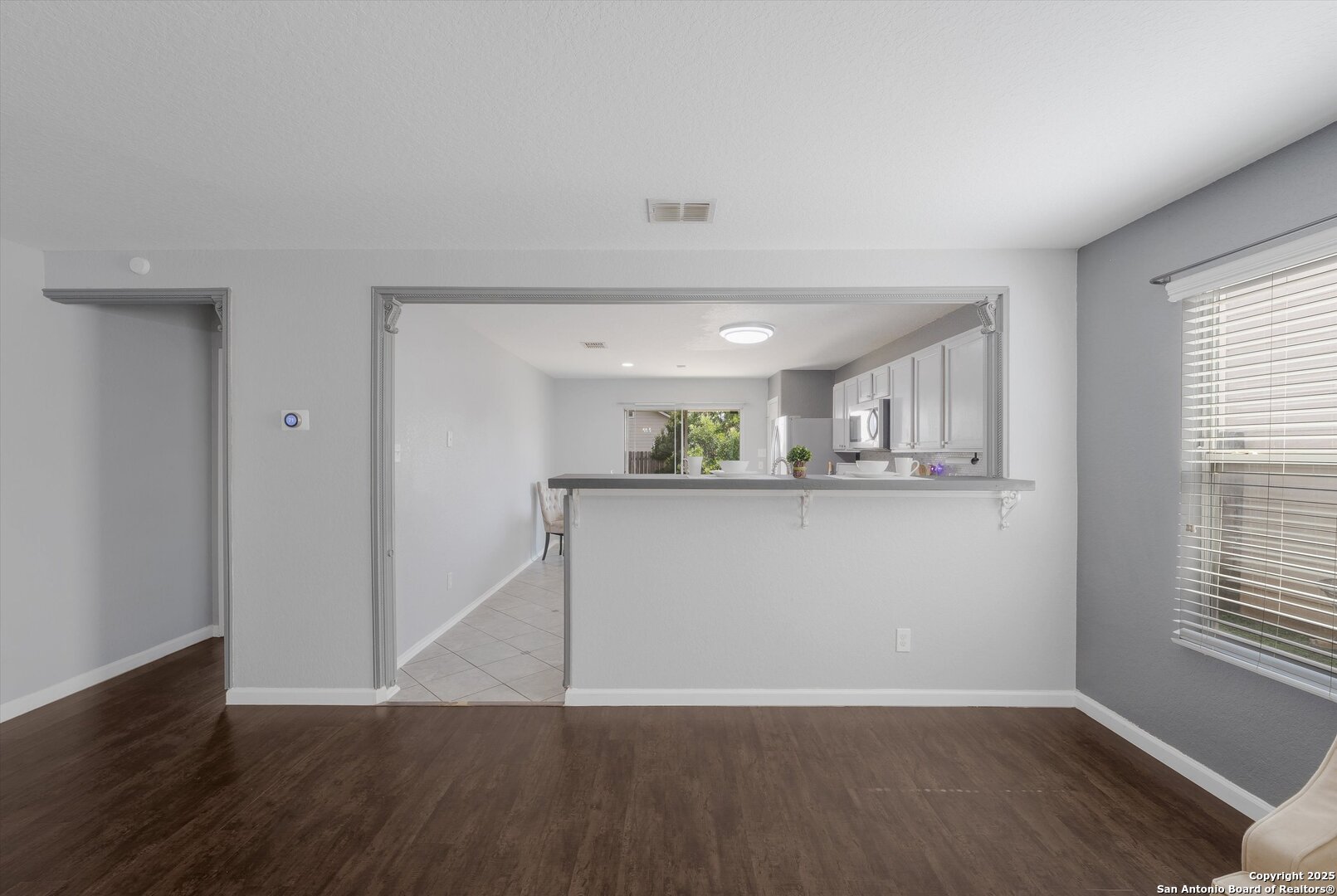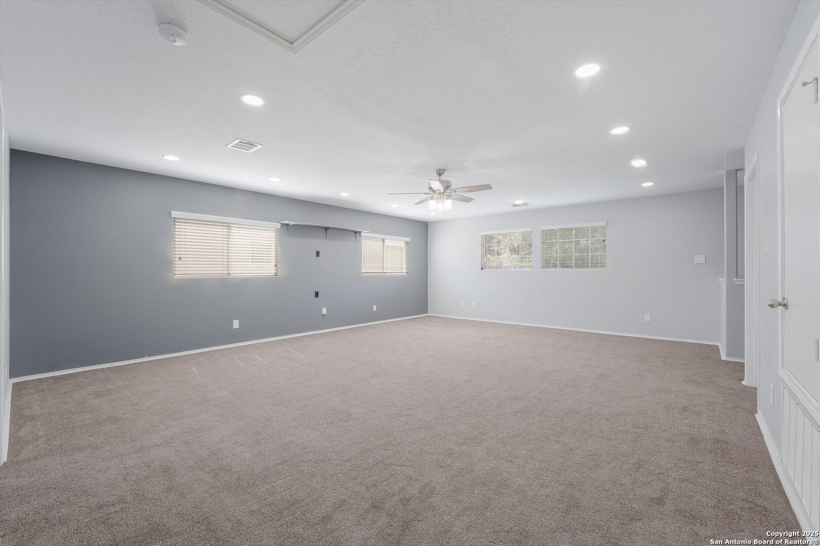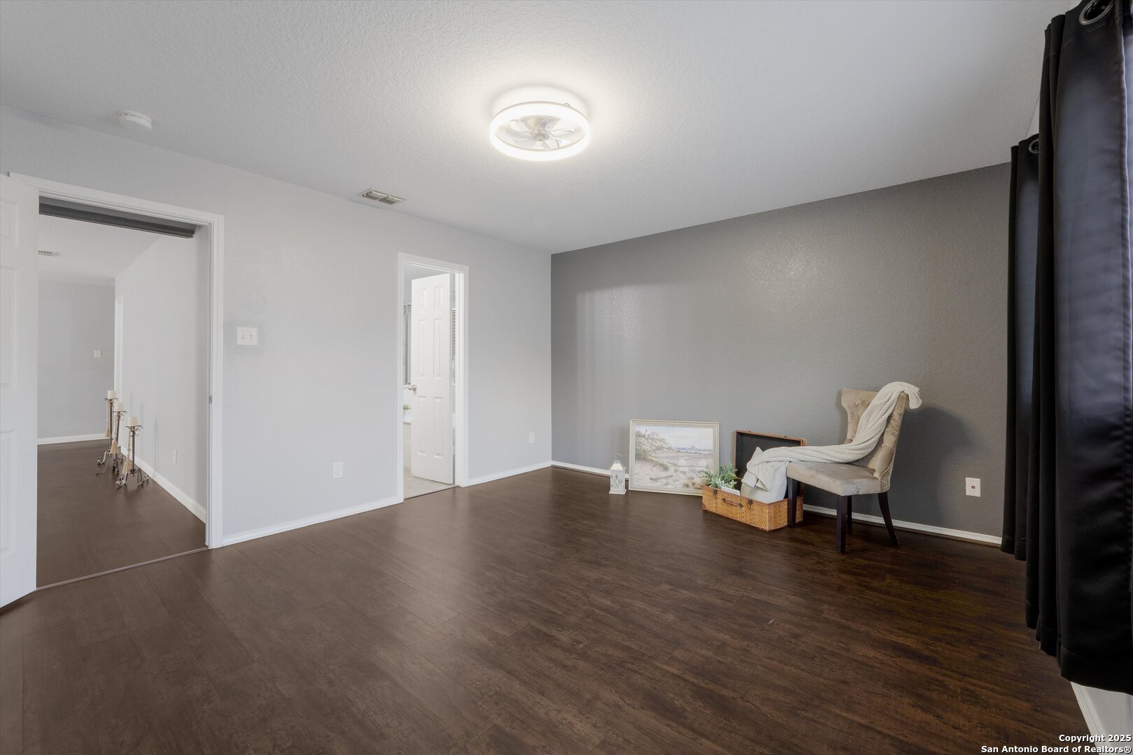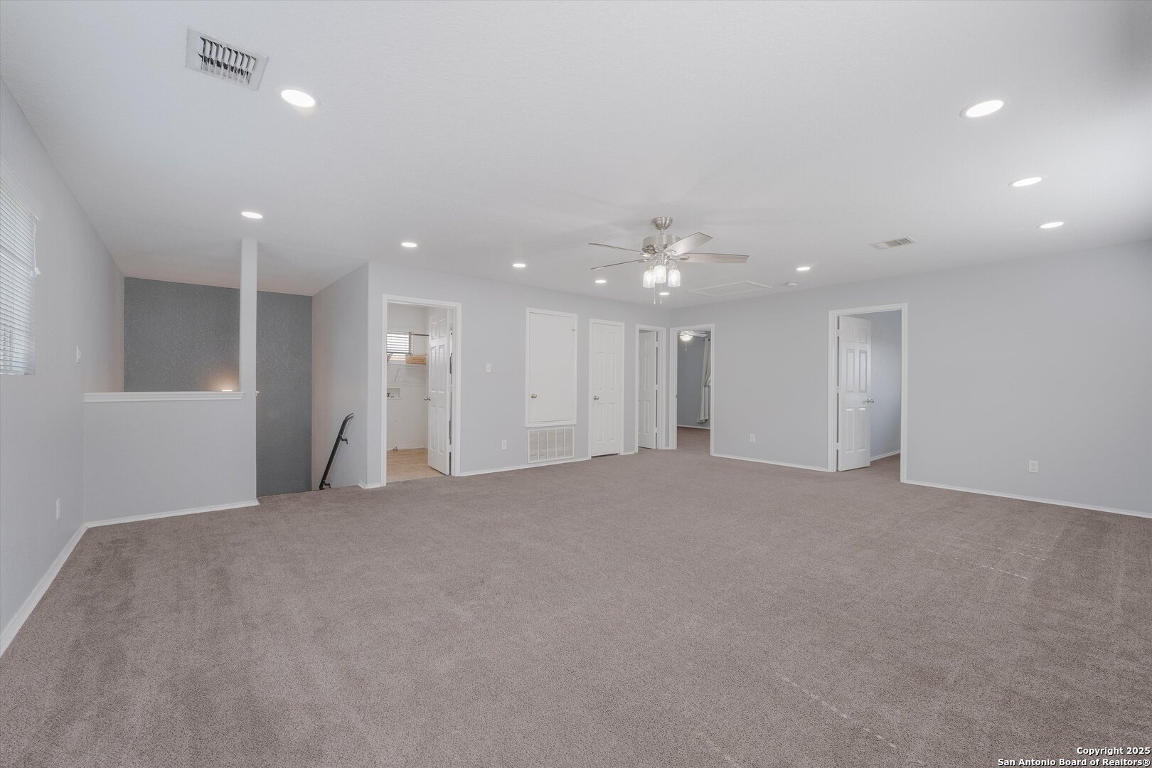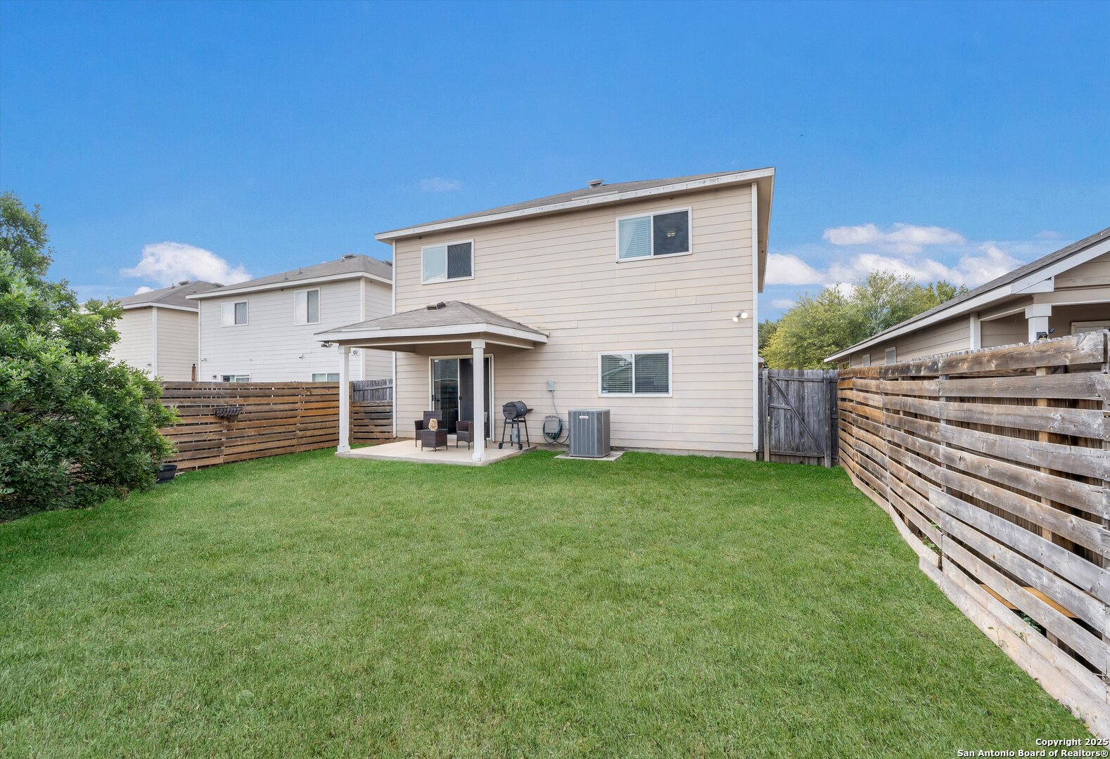 This move-in ready two-story home offers 3 bedrooms and 2.5 baths with the primary suite conveniently located on the main level. The open kitchen features abundant cabinet and countertop space along with a long breakfast bar, perfect for casual dining and entertaining. The main level has no carpet for easy care, while upstairs includes spacious secondary bedrooms and a large family room for added living space. Outside, the backyard provides a covered patio ideal for relaxing or hosting gatherings. This home combines comfort, functionality, and style in every detail.