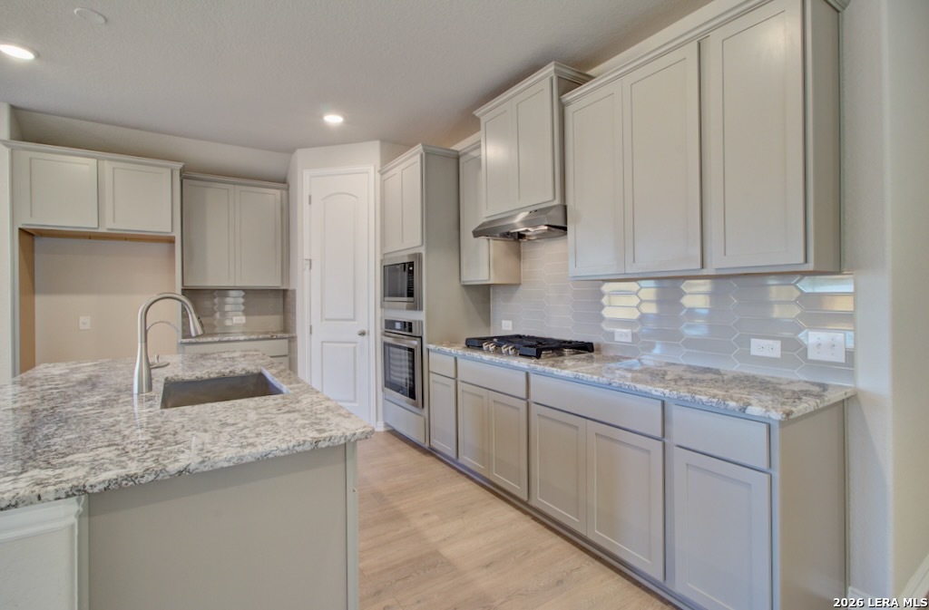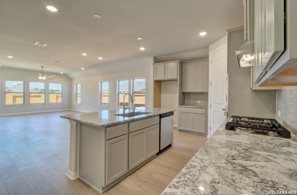 This home displays lovely curb appeal as a single story home consisting of three sided brick, stone on front elevation, and wood shutters on the exterior. Other exterior qualities include the 2 car garage, 1 coach light near the garage, an extended covered patio, and a privacy fence with one gate. The Kitchen opens to Great Room and features a center island with stainless steel undermount sink, 42" Hazelnut countertops, Omegastone countertops, mercury mosaic tile backsplash, and additional buffet/cabinets for additional storage and counterspace. Owner's suite features an enlarged closet, dual vanity, ceramic tile surround shower in the shade Creek Gray arranged in a straight lay rectangular pattern. The nearby Lake Dunlap is a peaceful retreat for fishing and other water activities. Nature enthusiasts will appreciate the proximity to Canyon Lake, where scenic views and outdoor adventures await. Downtown New Braunfels boasts exciting entertainment, boutique shopping, local dining, and events. The Gruene Historic District is a hub for live music, events, and the famous Gruene Hall. Come experience the beauty and convenience of Clear Creek in New Braunfels.