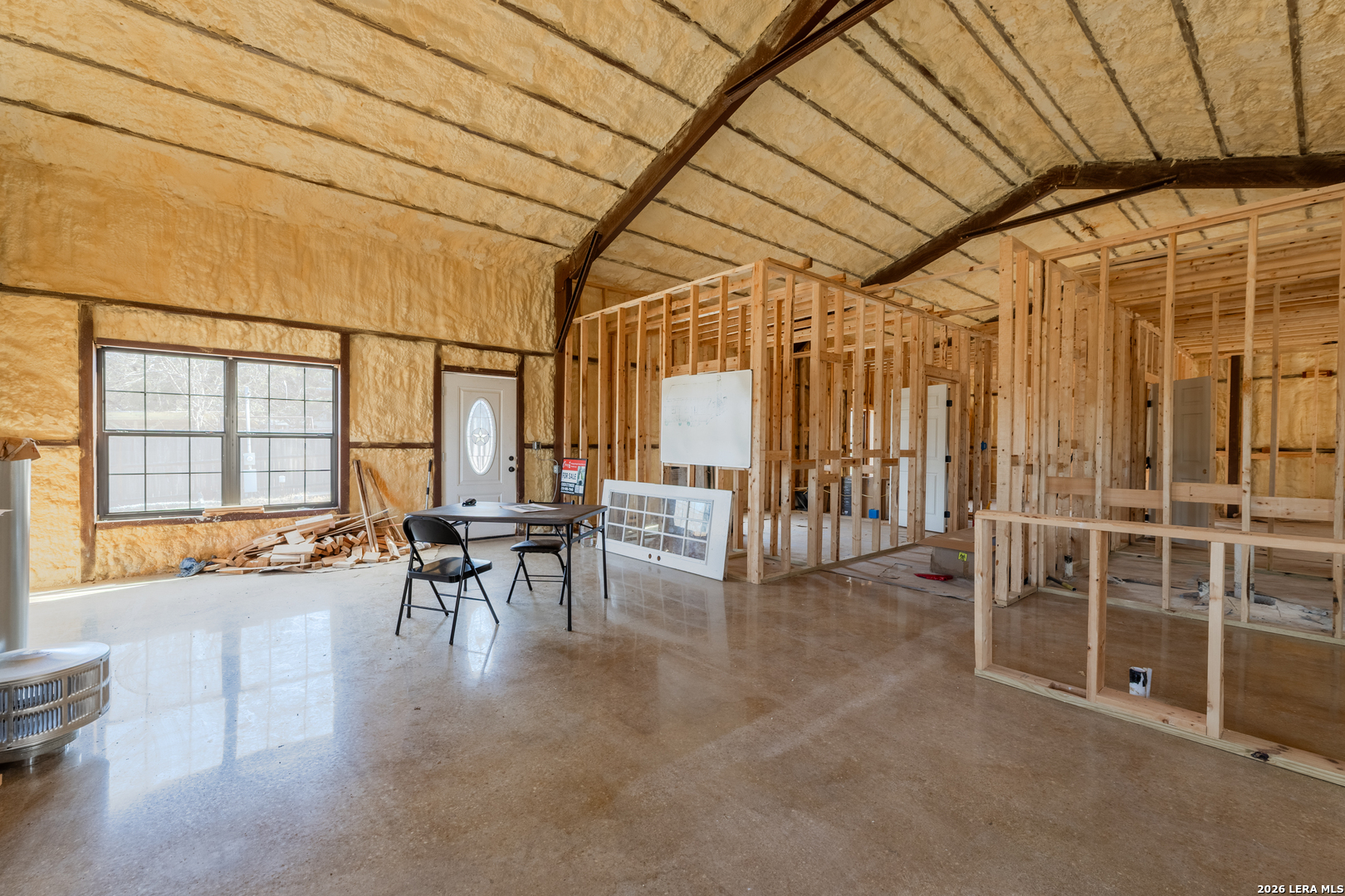 Rare opportunity to complete your own Hill Country barndominium in the highly desirable Rebecca Creek area! Situated on paved Rebecca Creek Road and backing to the golf course, this 1,500 sq ft shell is approximately 60-65% complete and ready for your custom finish-out. The property already features stained concrete floors, installed septic system, water and utilities in place, and an RV hookup. A large poured concrete slab ready for carport. Interior framing, mechanicals, drywall, and final finishes remain-making this the perfect opportunity for an investor, second-home buyer, or someone wanting to design their own Hill Country retreat from the inside out. Located just minutes from the Guadalupe River and approximately 20 minutes to Canyon Lake boat ramps, this growing area offers both tranquility and recreation. Ideal for a full-time residence, vacation getaway, or income-producing investment. Bring your vision and make it yours.
