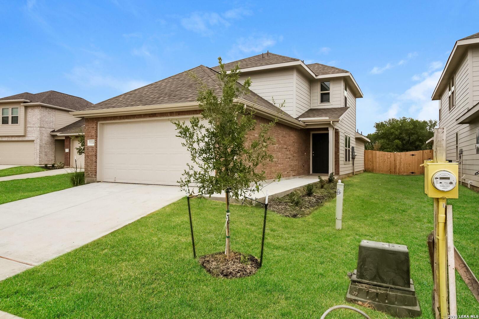 The Solis Plan is a charming two-story home featuring 3 bedrooms and 2.5 bathrooms. Designed with an open-concept layout, the first floor offers a spacious living and dining area that seamlessly flows into the kitchen, perfect for both relaxing and entertaining. The downstairs primary suite provides a peaceful retreat with a private bathroom and walk-in closet. Upstairs, you'll find two additional bedrooms, a full bathroom, and a cozy loft ideal for an office or reading nook. Features include wood-grain vinyl plank flooring, a two-car garage, fenced backyard, and a sprinkler system. All homes are SimplyMaintained for a $100 monthly fee that includes front and back yard lawn care and exterior pest control. Somerset Trails is a vibrant neighborhood in South San Antonio with easy access to I-35 and Loop 410, making commuting across the city simple. The community is part of South San Antonio ISD, providing access to local schools and a supportive educational environment. Residents enjoy nearby grocery stores, healthcare, and retail options along Somerset Road and Pearsall Parkway. On-site amenities include walking trails and green spaces that encourage an active, outdoor lifestyle. For weekend fun, Pearsall Park-one of the city's largest parks with hiking trails, splash pads, and sports facilities-is just minutes away.