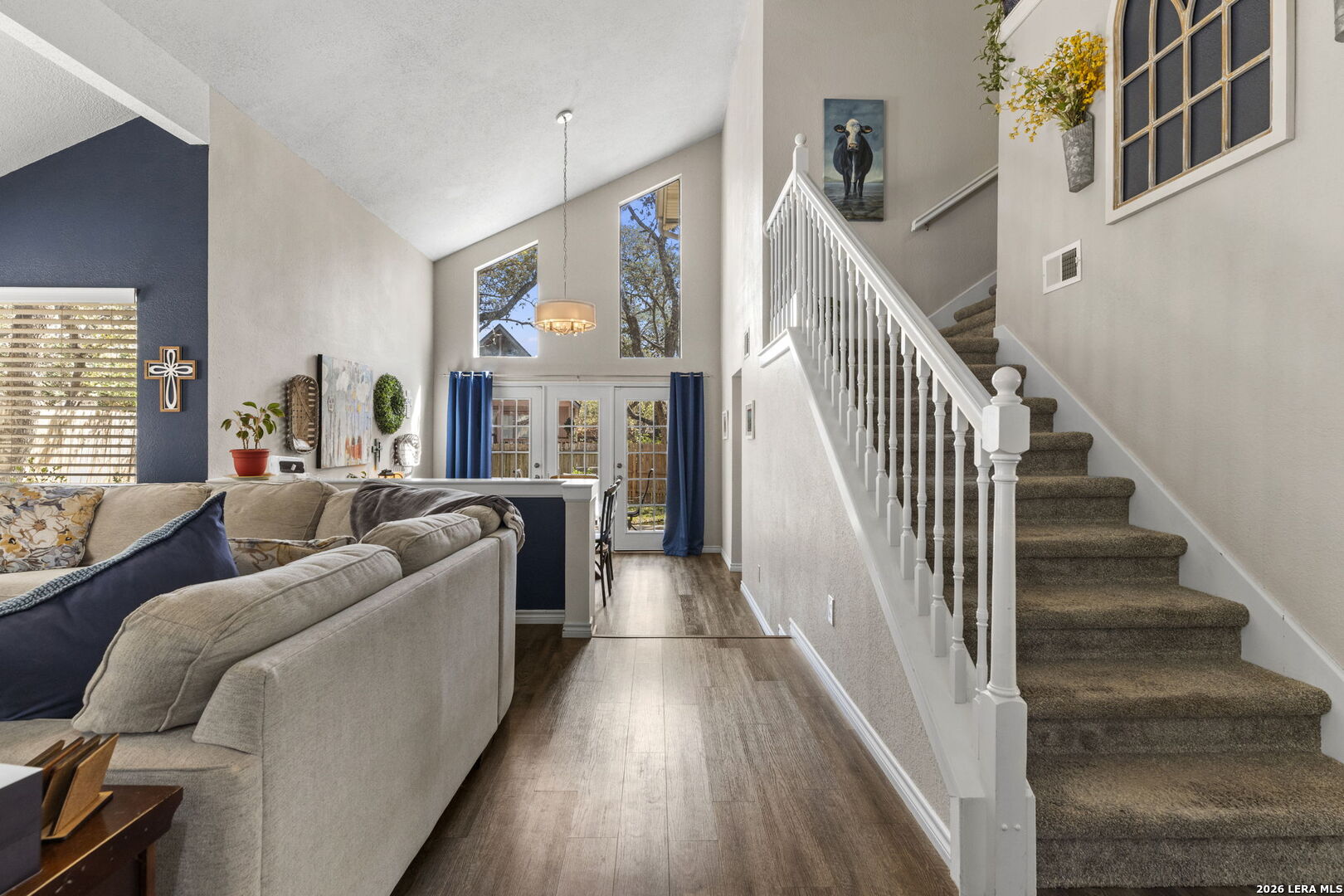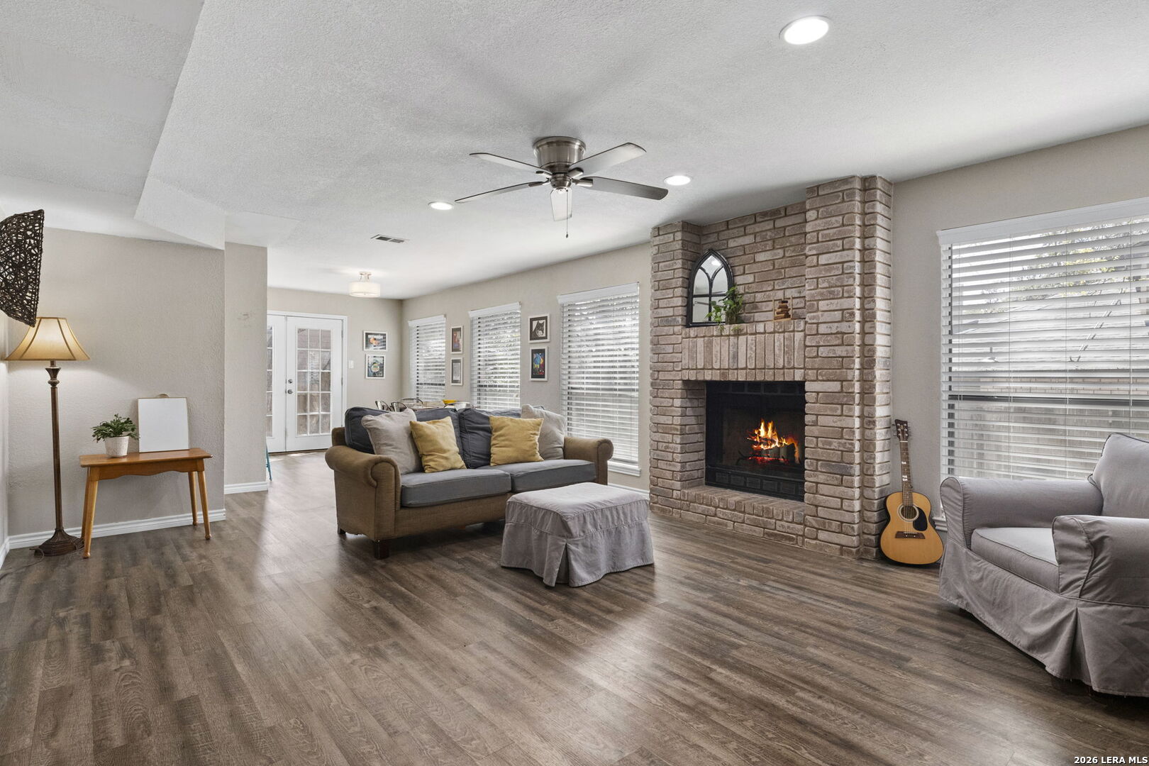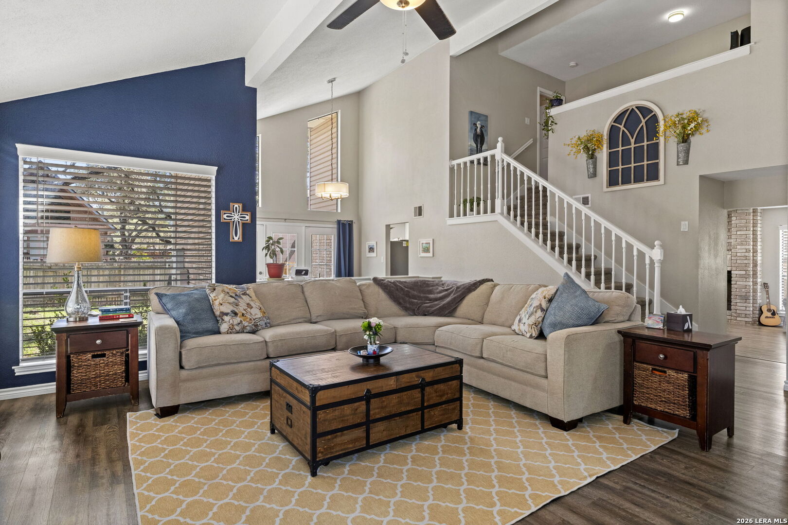 The architectural design of this beautiful property is timeless and a must see. If you are searching for a home close to the Medical Center, UTSA and the conveniences of shopping come see this delightful property located in the quiet neighborhood of Northwest Crossing. Easy to navigate to all you need with quick access to 1604 and I-10. This property has 4 bedrooms all upstairs, 2-1/2 baths and 2 car garage. A large home with 2460 square feet and room for the entire family. Updates include accent walls throughout, two living areas with each one having its own fireplace, open kitchen with a bar, granite countertops, LVP flooring and updated bathrooms. Beautiful windows throughout bringing natural light, soaring vaulted ceilings, double entry doors and more. Space to entertain throughout the home and space to enjoy privacy. Back patio and a large yard filled with mature trees. See updates/features list for a complete list.